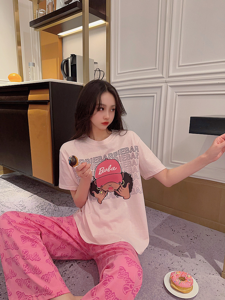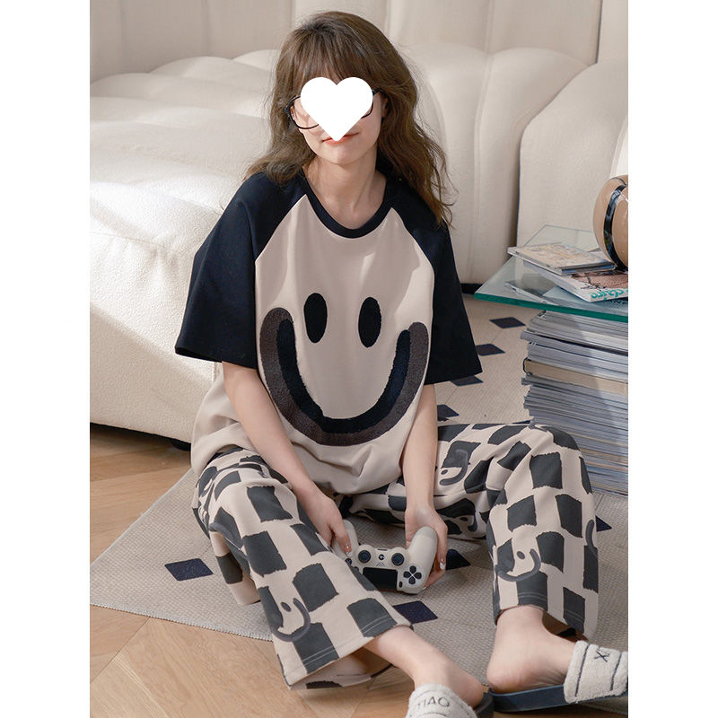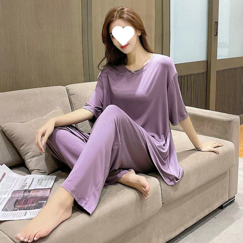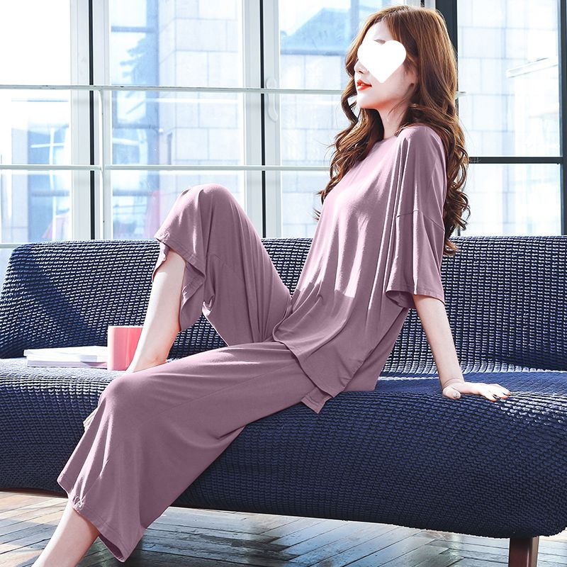 2025 새로운 모달 파자마 여성의 봄과 여름면 짧은 소매 바지는 플러스 사이즈 가을 가정 의류 세트 밖에서 입을 수 있습니다.스토어 가기