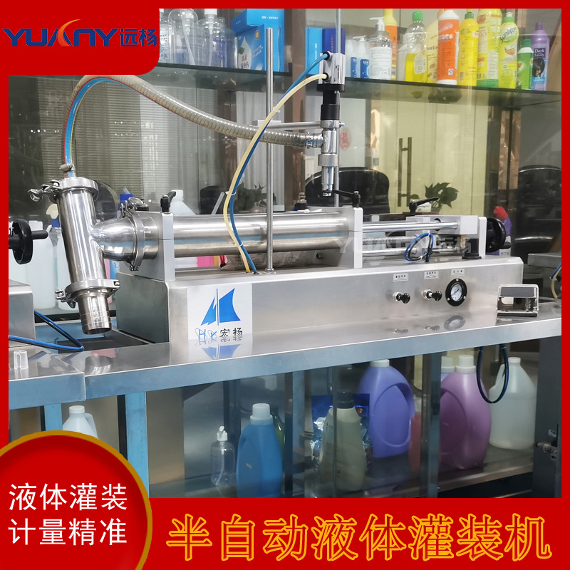 远杨机械单头半自动气动液体洗面奶精华液灌装机防滴漏灌装头设计