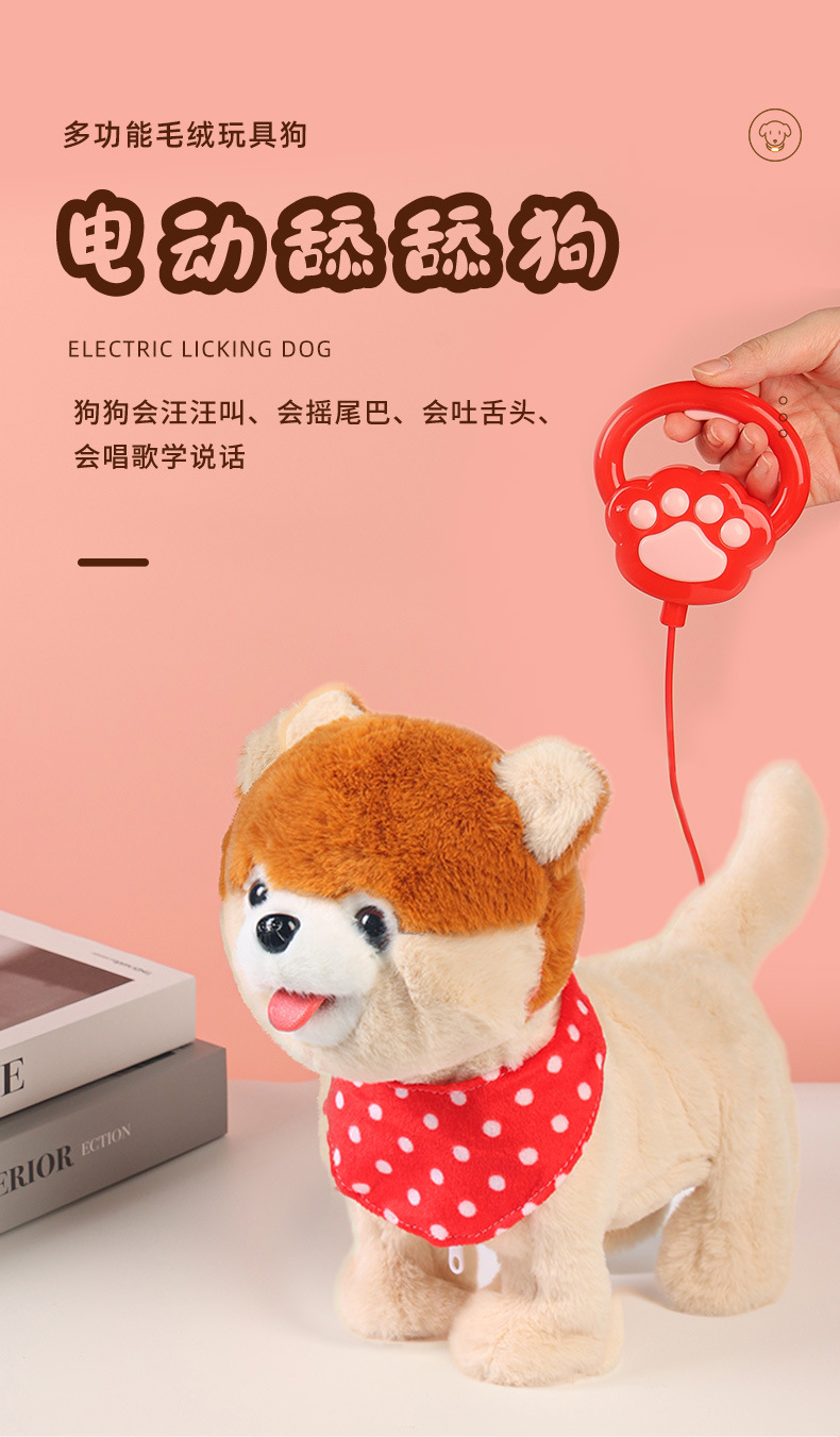 공장 도매 견인 밧줄 핥는 개 혀 전기 장난감 개 걷는 봉제 전기 개를 노래하는 혀 핥기스토어 가기