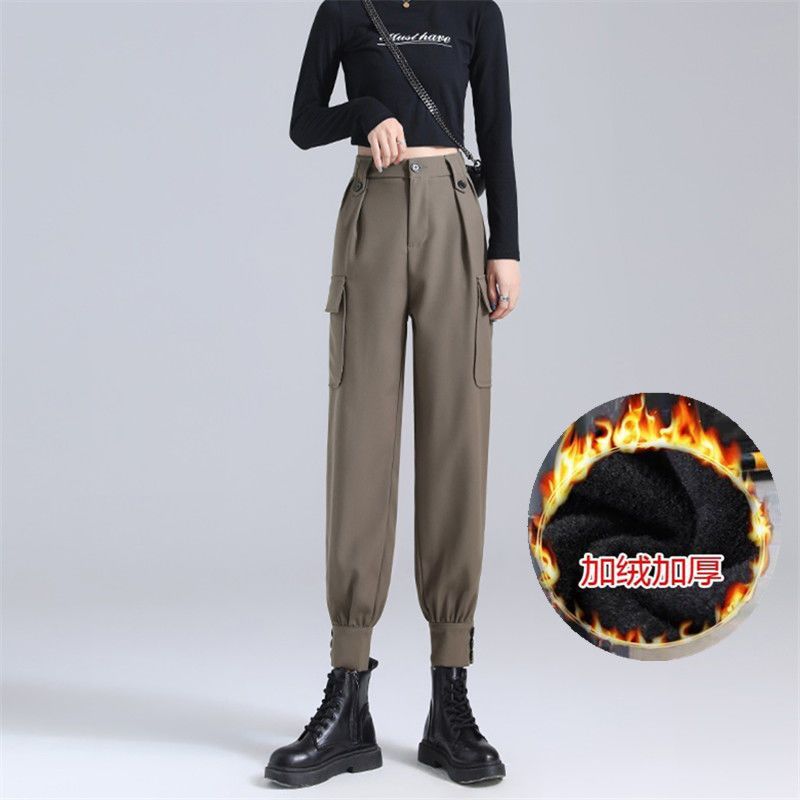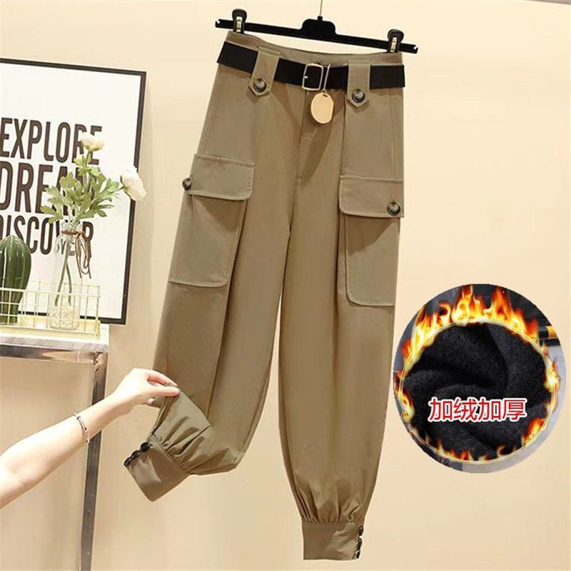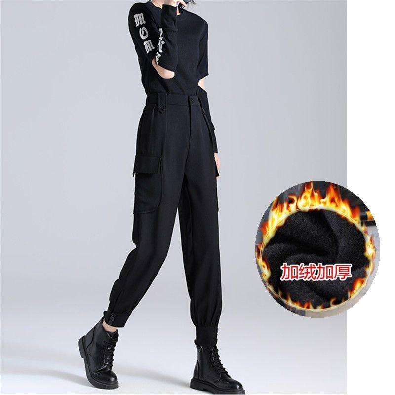 얇고 기모 플러스 사이즈 여성 의류 가을과 겨울 통통녀 mm 높은 허리 캐주얼 느슨한 올매치 여성 바지스토어 가기