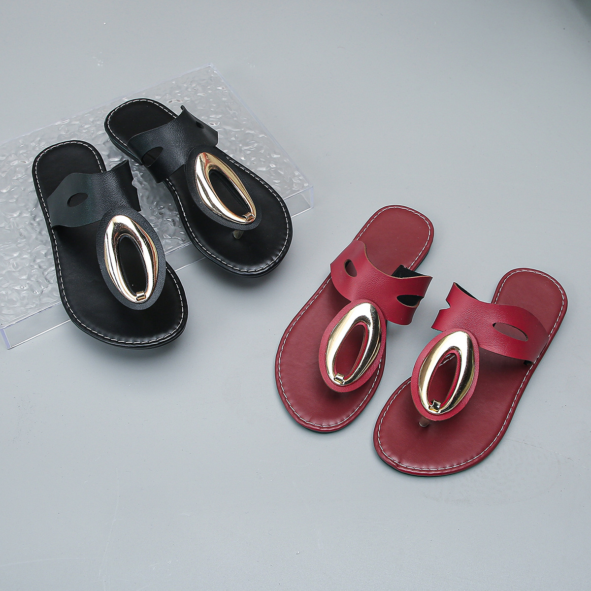 국경 간 대외 무역 대형 2025 여름 새로운 패션 캐주얼 금속 버클 유럽과 미국 스타일의 플립 플롭 여성용스토어 가기