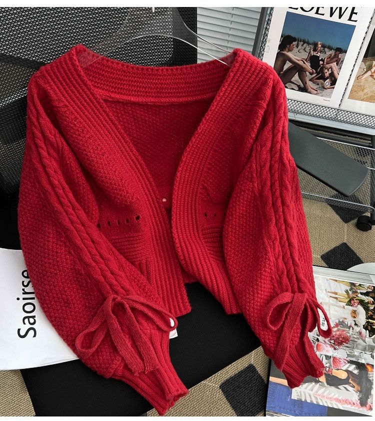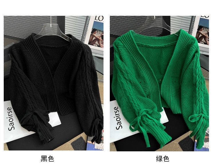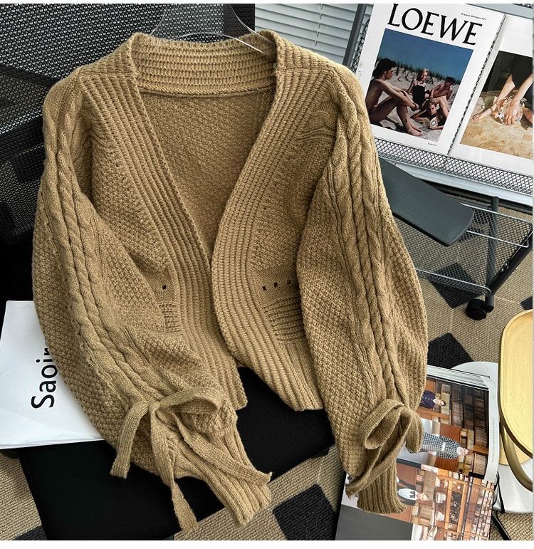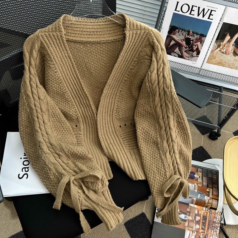 부드러운 스타일 스웨터 코트 여성의 봄과 가을 새로운 도착 웨스턴 스타일 외부 니트 카디건 느슨한 짧은 긴 소매 탑스토어 가기