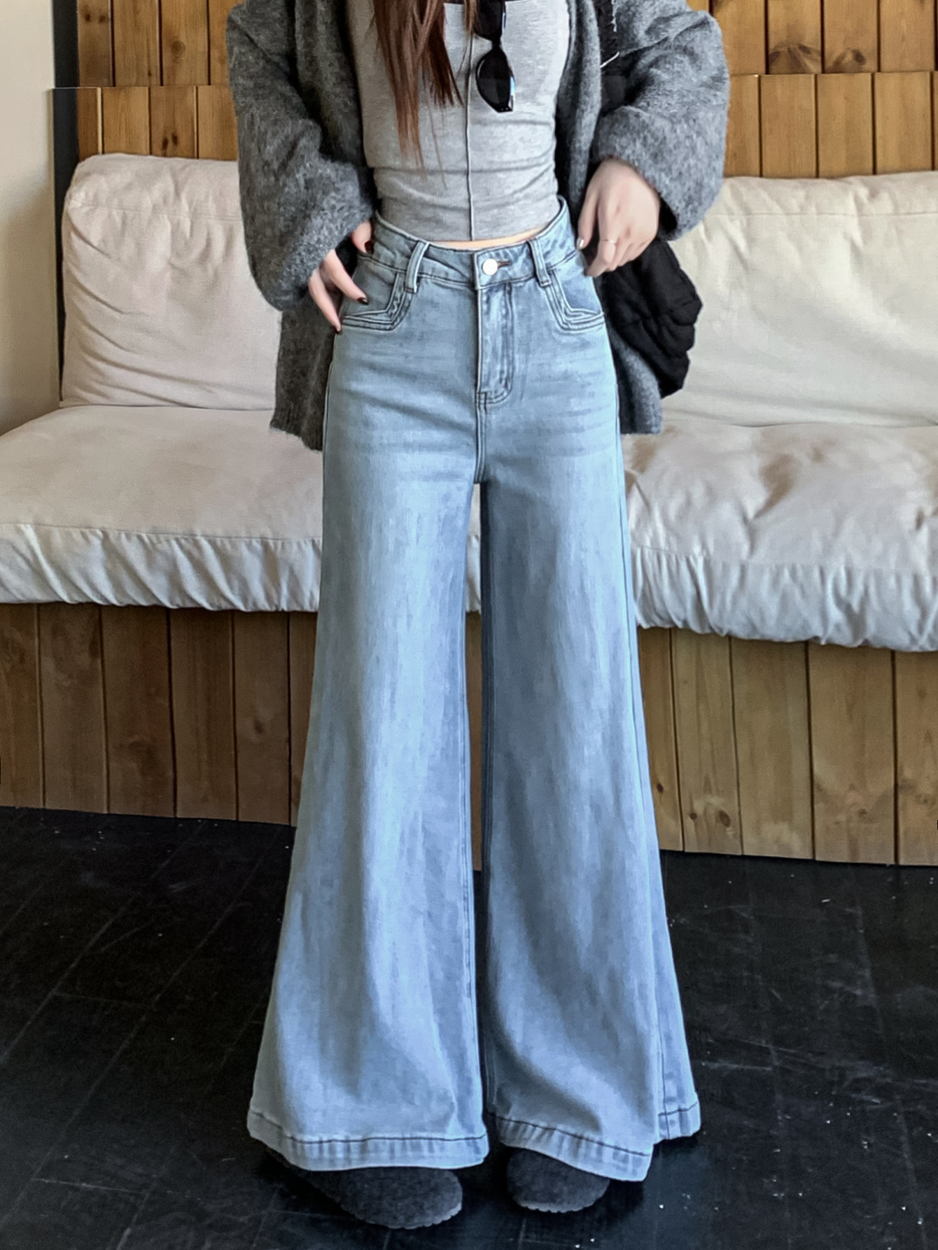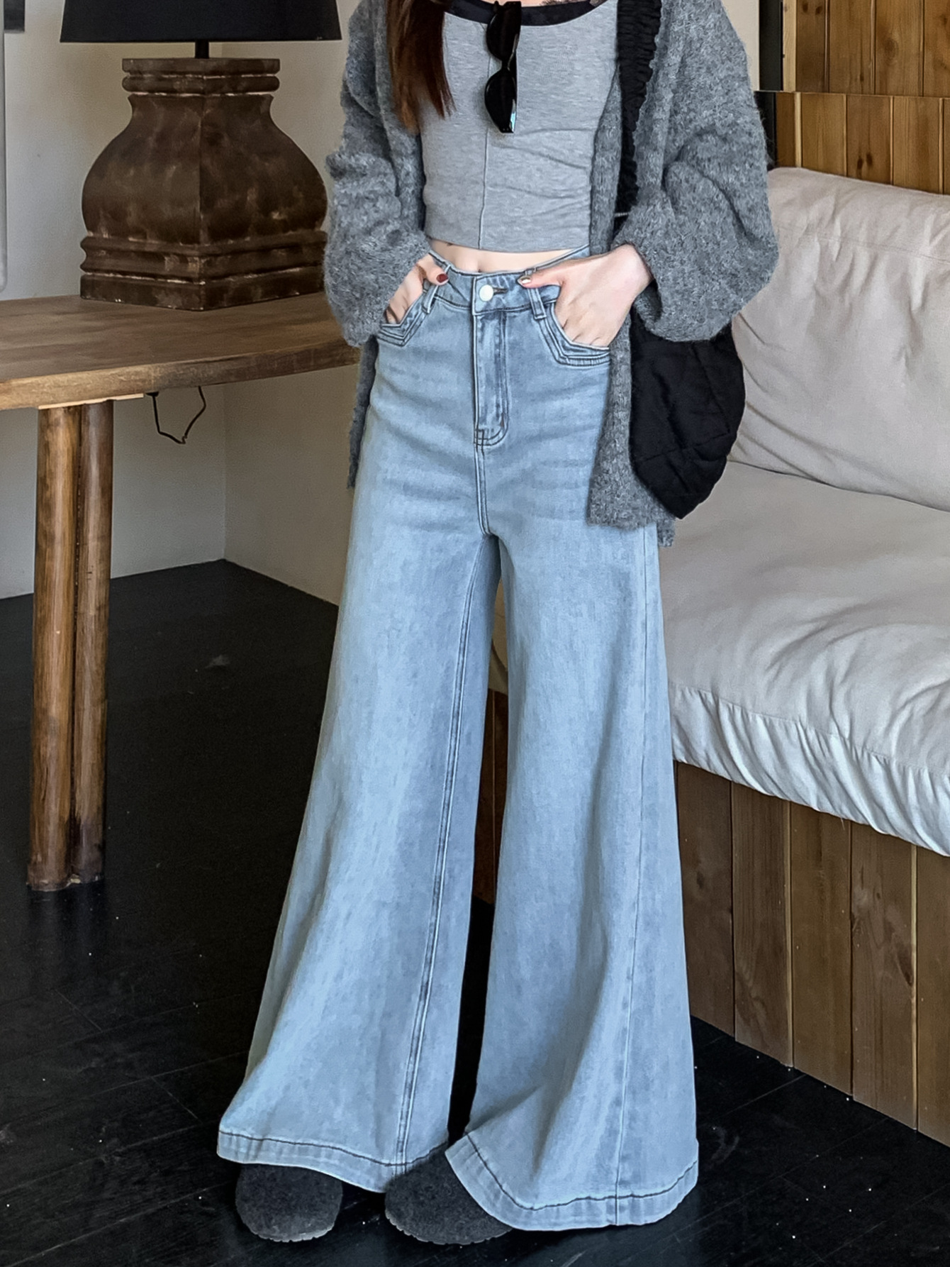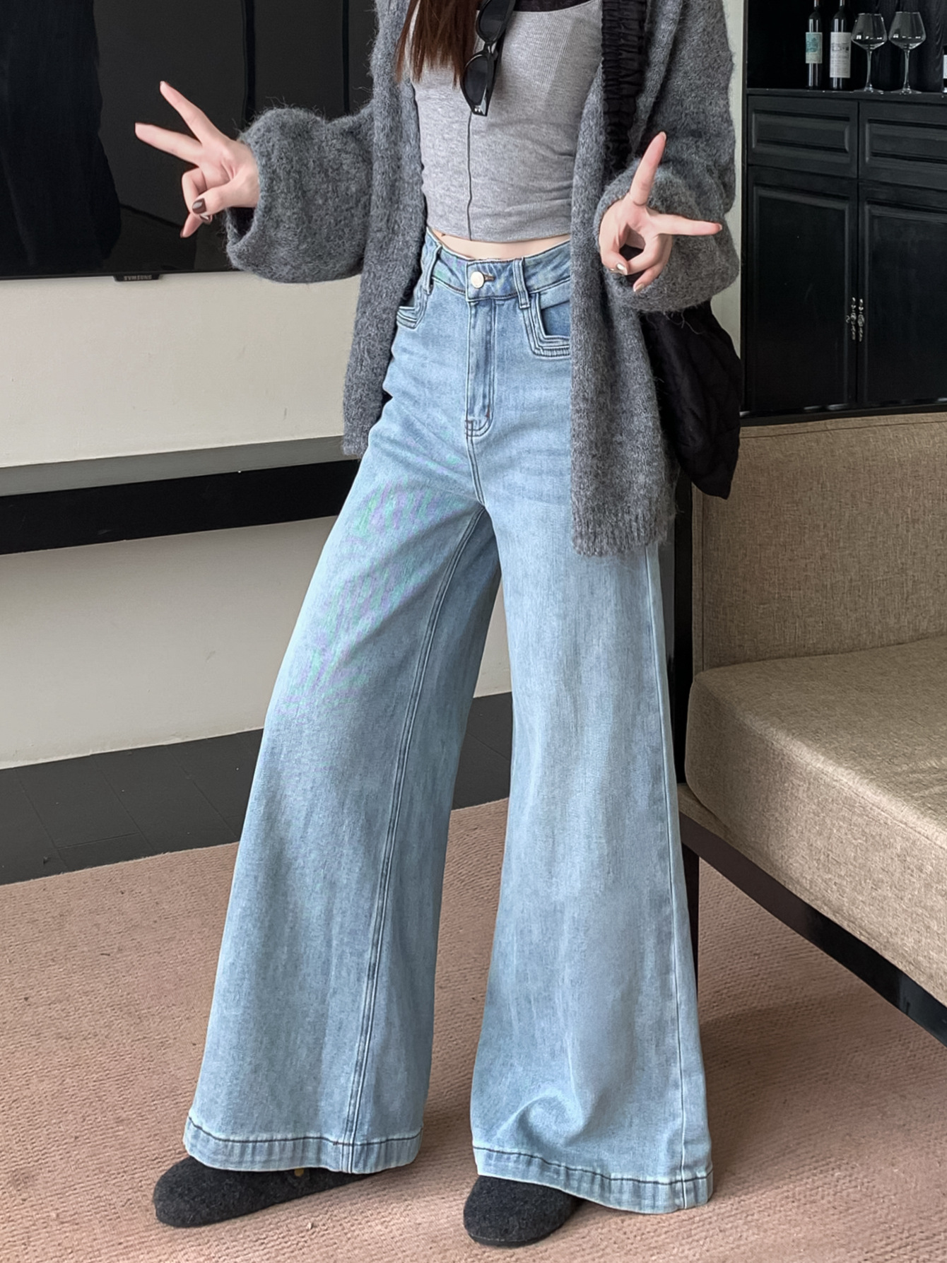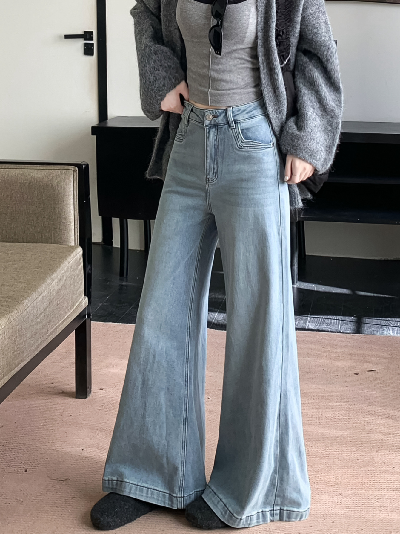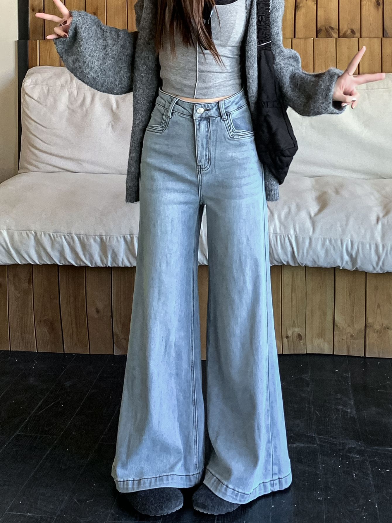 새로운 도착 느슨한 스트레이트 데님 바지 여성 큰 바지 넓은 다리 트럼펫 바지스토어 가기