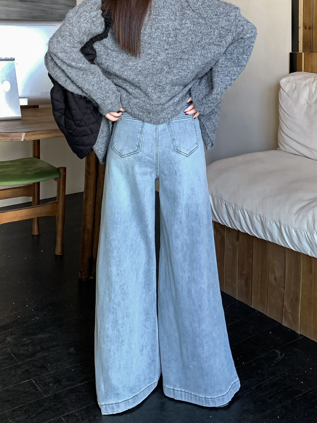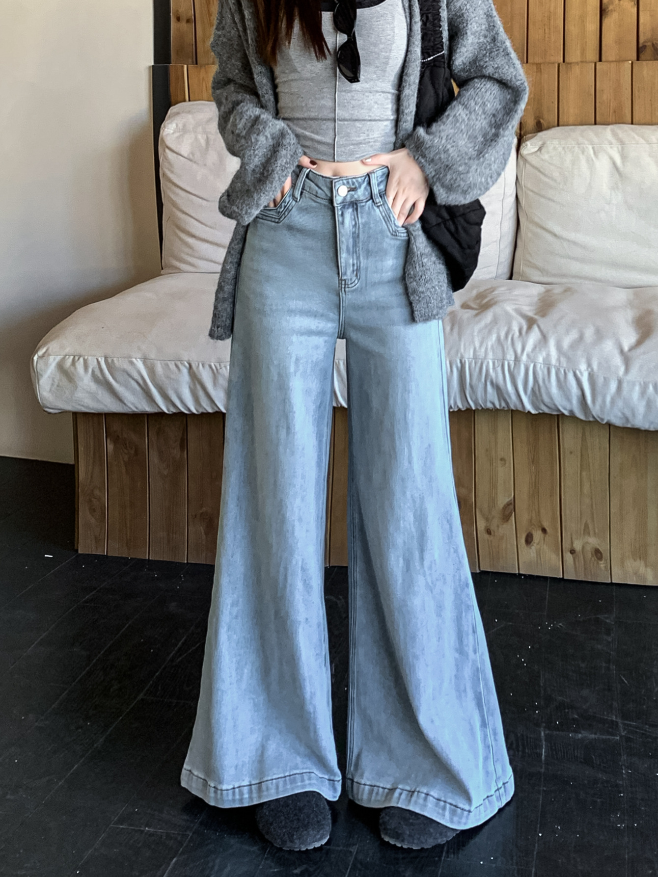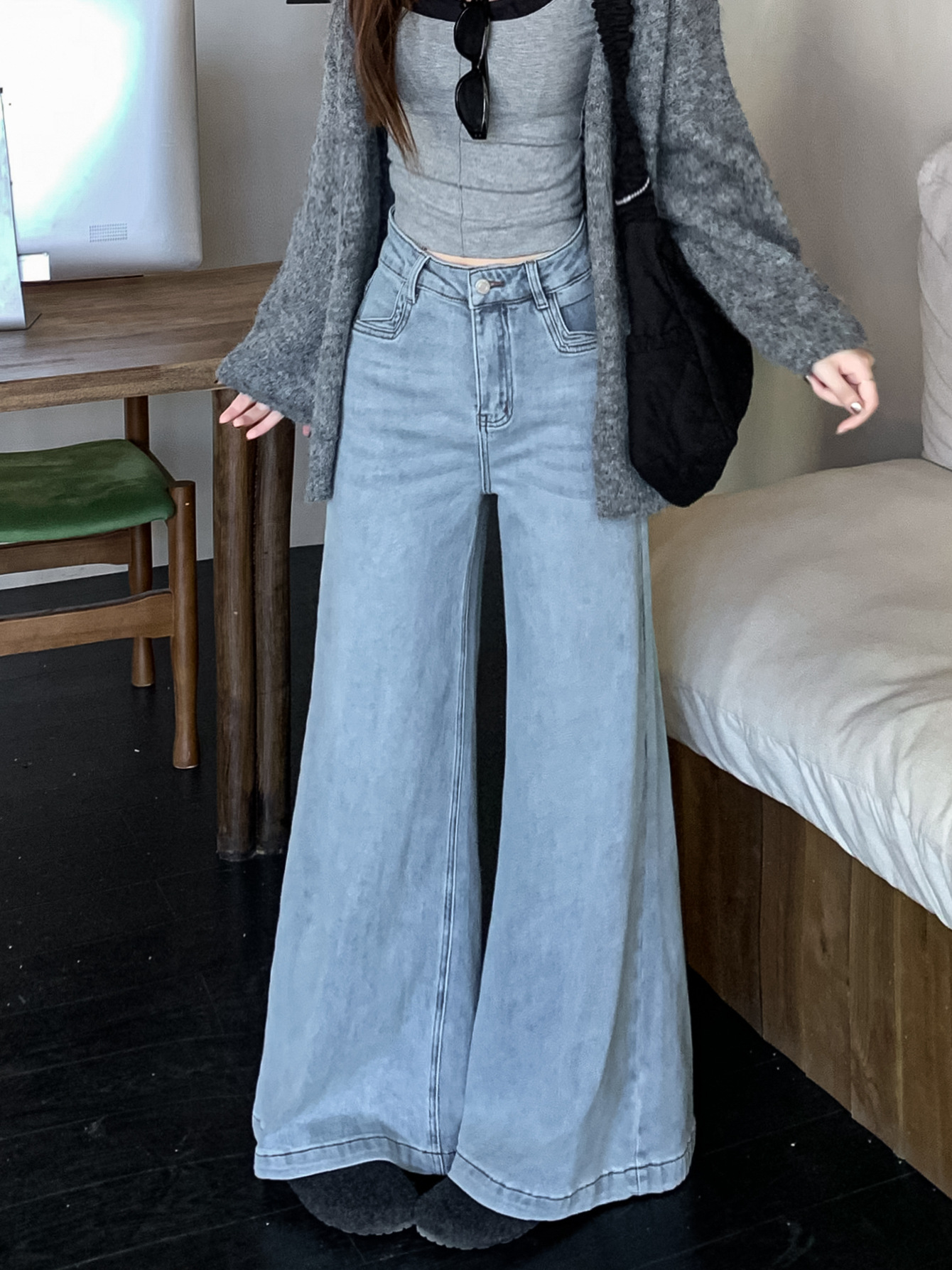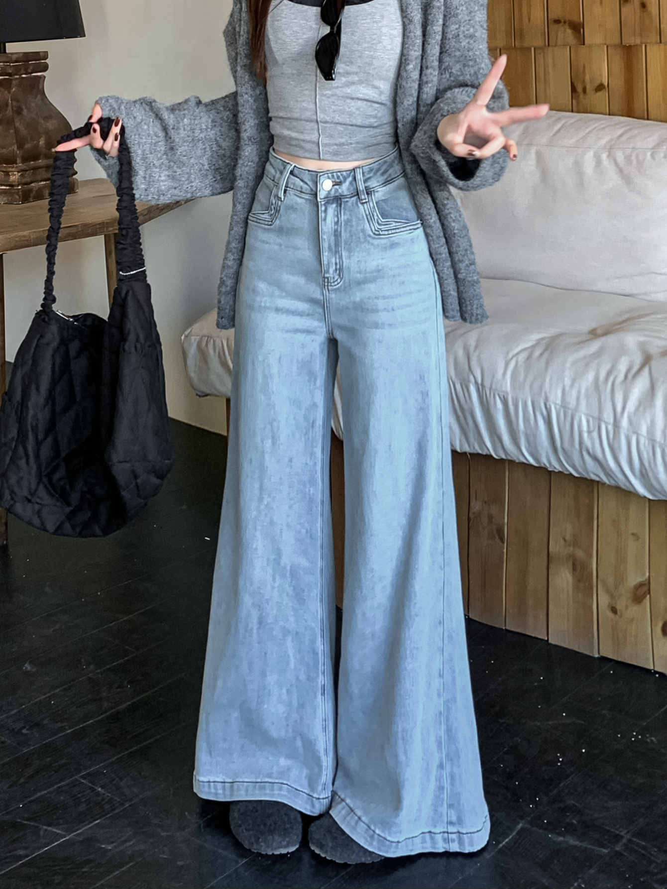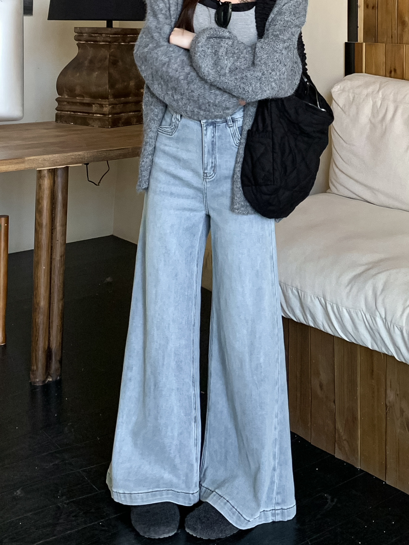 새로운 도착 느슨한 스트레이트 데님 바지 여성 큰 바지 넓은 다리 트럼펫 바지스토어 가기
