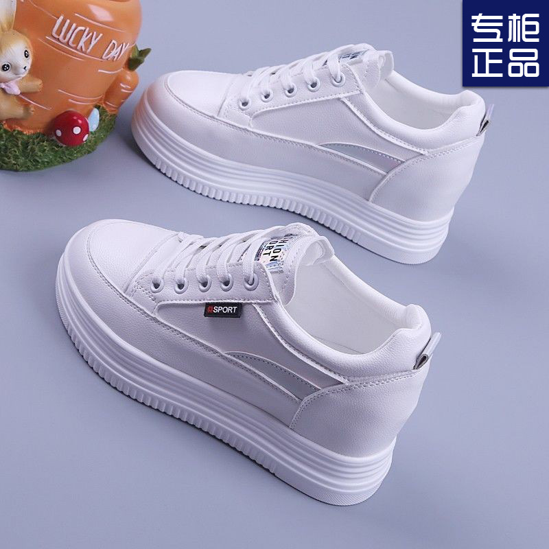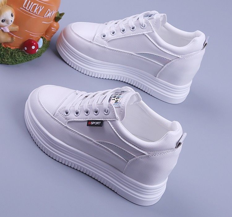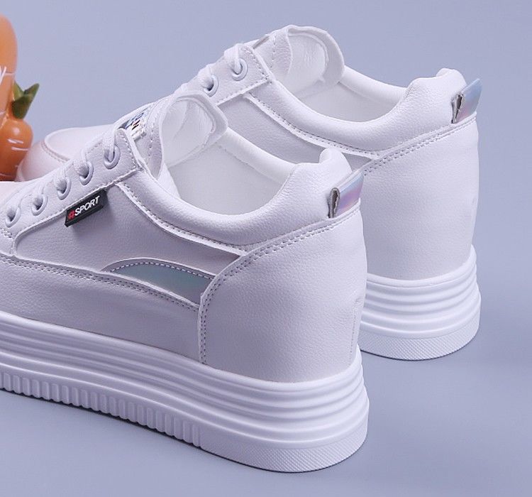 2025 봄 여름 신상 여성용 두꺼운 밑창 플랫폼 슈즈, 속이 빈 통기성 여성용 메쉬 슈즈, 슬림하고 패셔너블한 여성용 키높이 화이트 슈즈스토어 가기