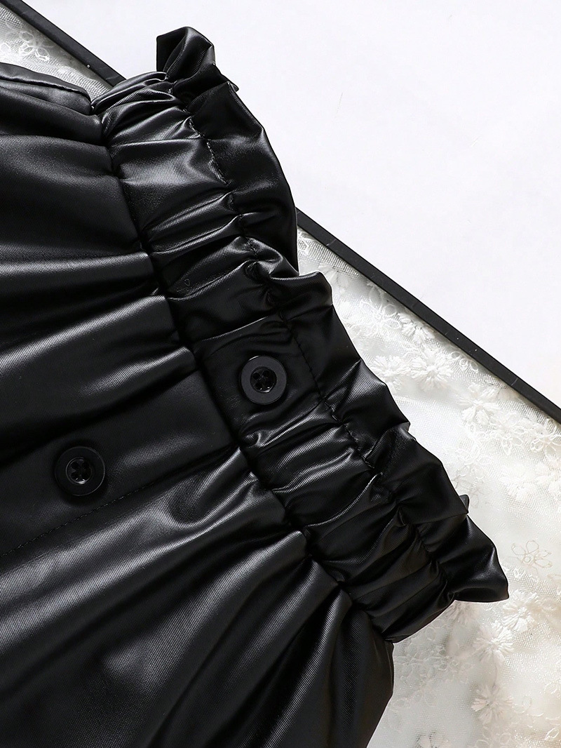 25 새로운 소녀 아기 소녀 스커트 부드러운 가죽 탄성 트렌디 시원한 봄과 가을 가죽 스커트 아기의 대외 무역 아동복 국경 가을