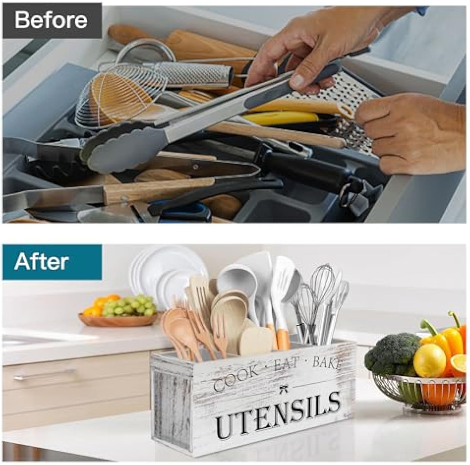 국경 간 주방 식기 보관 상자 조리대 나이프와 포크 보관 상자 주방 카운터 나무 요리 도구 분류 브래킷스토어 가기