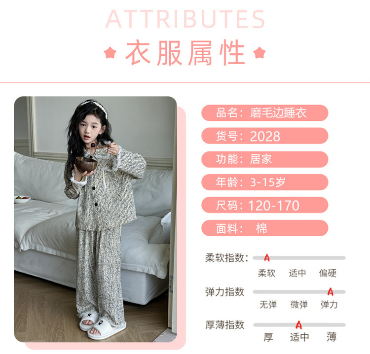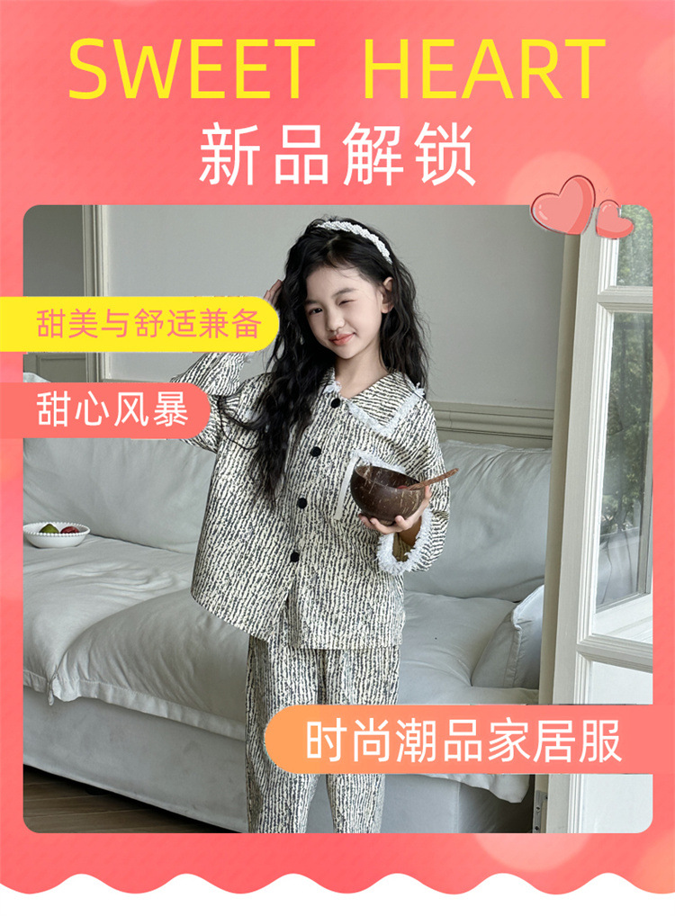 소녀 잠옷 봄과 가을 새로운 어린이 카디건 모피 가장자리 서양식 캐주얼 걸스 홈 옷 세트 후 저우 질리스토어 가기