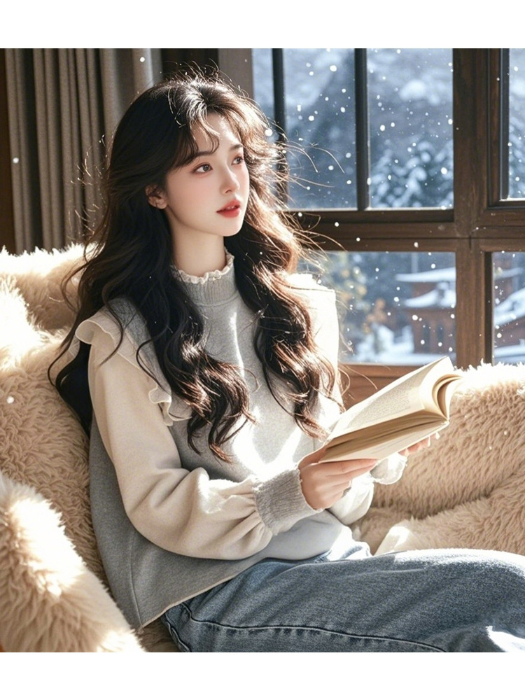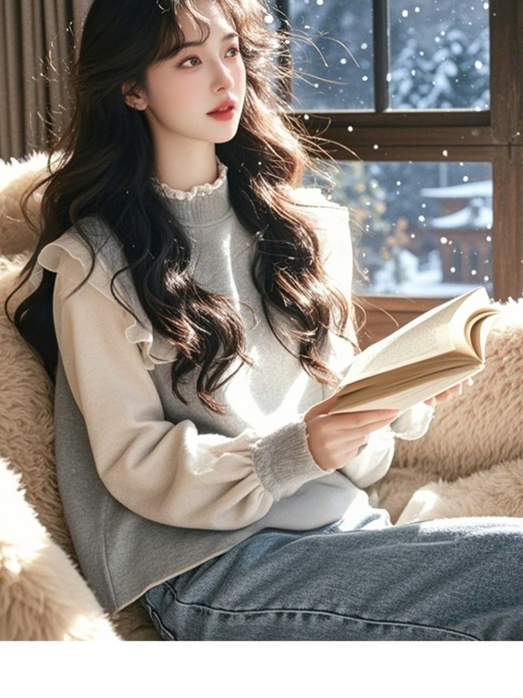 【매장 인기상품】올해 유행하는 핫템, 독특하고 아름다운 그레이 배색 스플라이싱 풀오버 스웨트셔츠, 다용도
