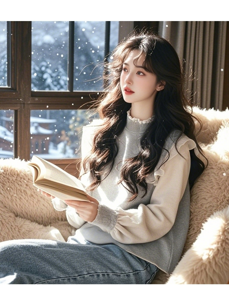 【매장 인기상품】올해 유행하는 핫템, 독특하고 아름다운 그레이 배색 스플라이싱 풀오버 스웨트셔츠, 다용도스토어 가기