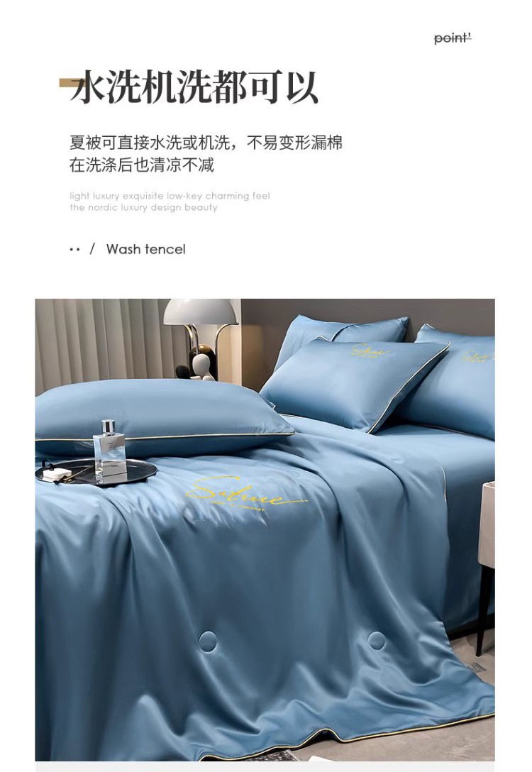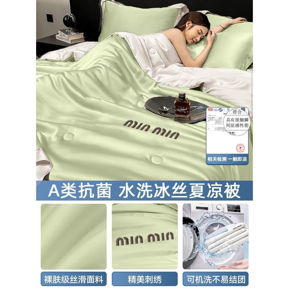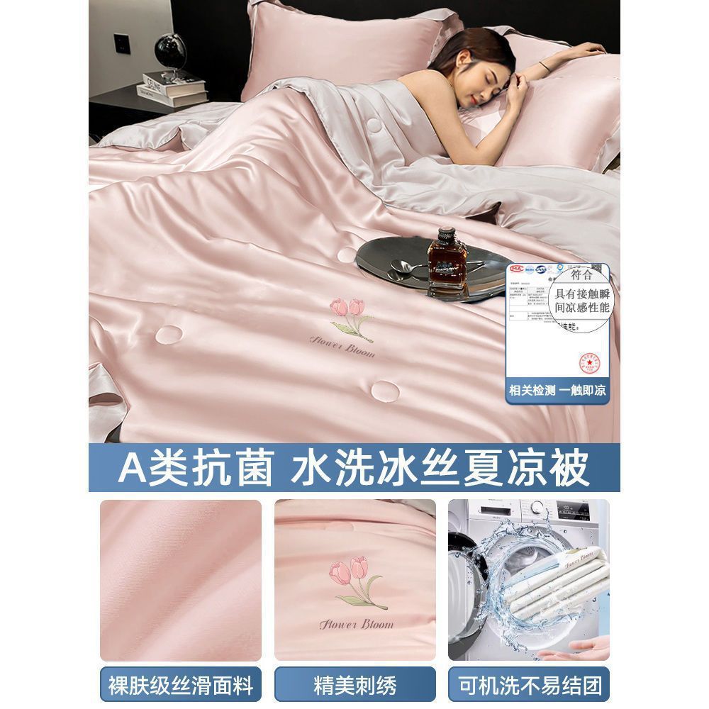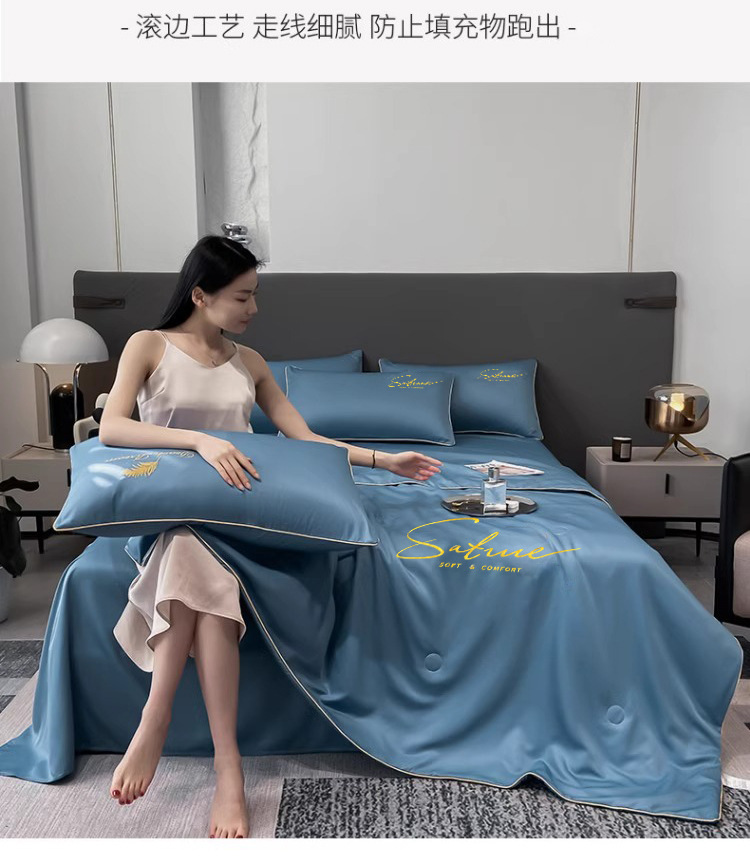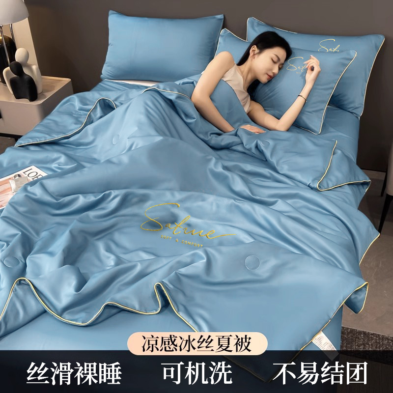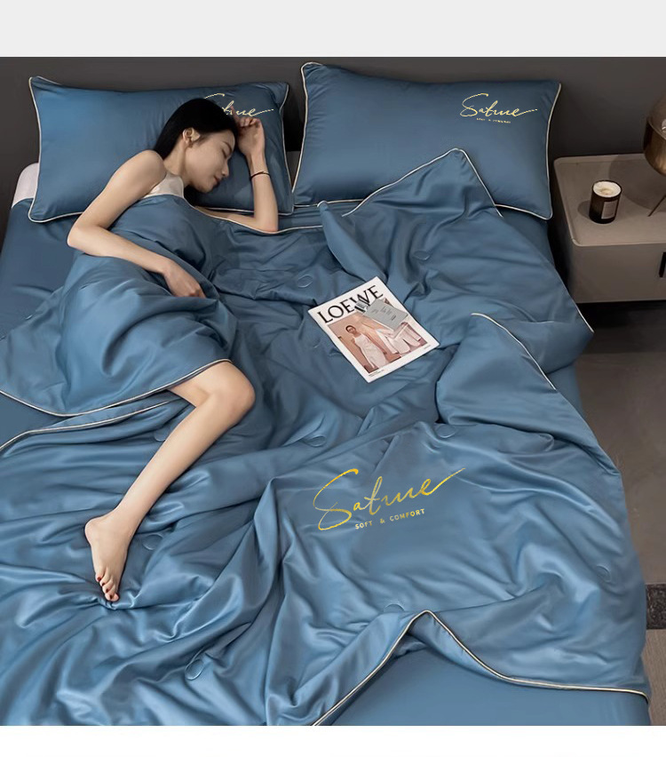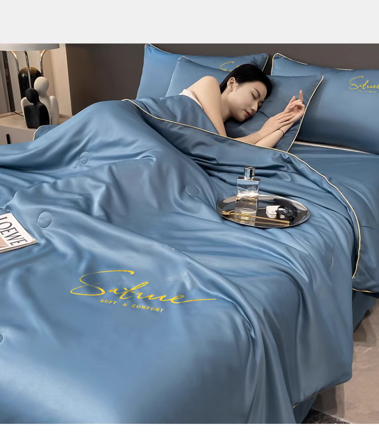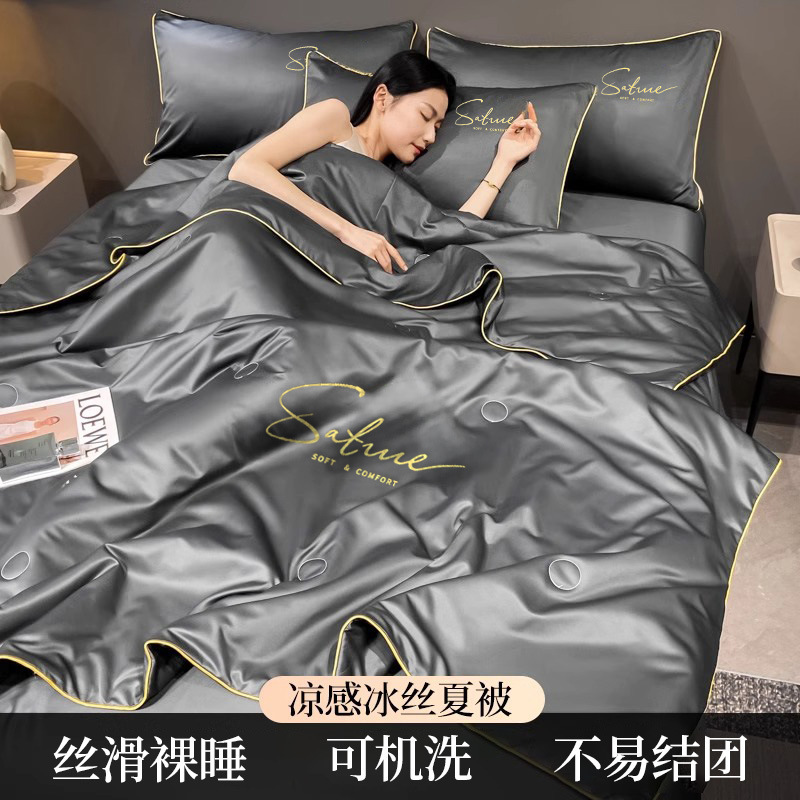 여름 신작 이불, 아이스 실크 여름 이불, 에어컨 이불, 더블 4종 세트, 시원한 실크 여름 이불, 세탁기로 세탁 가능한 얇은 스타일