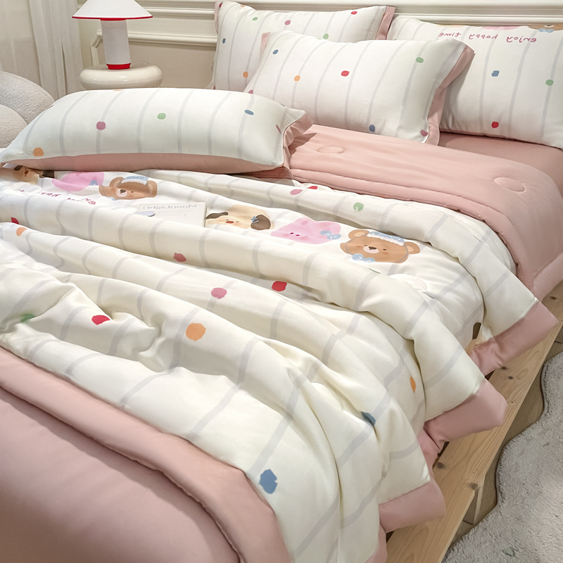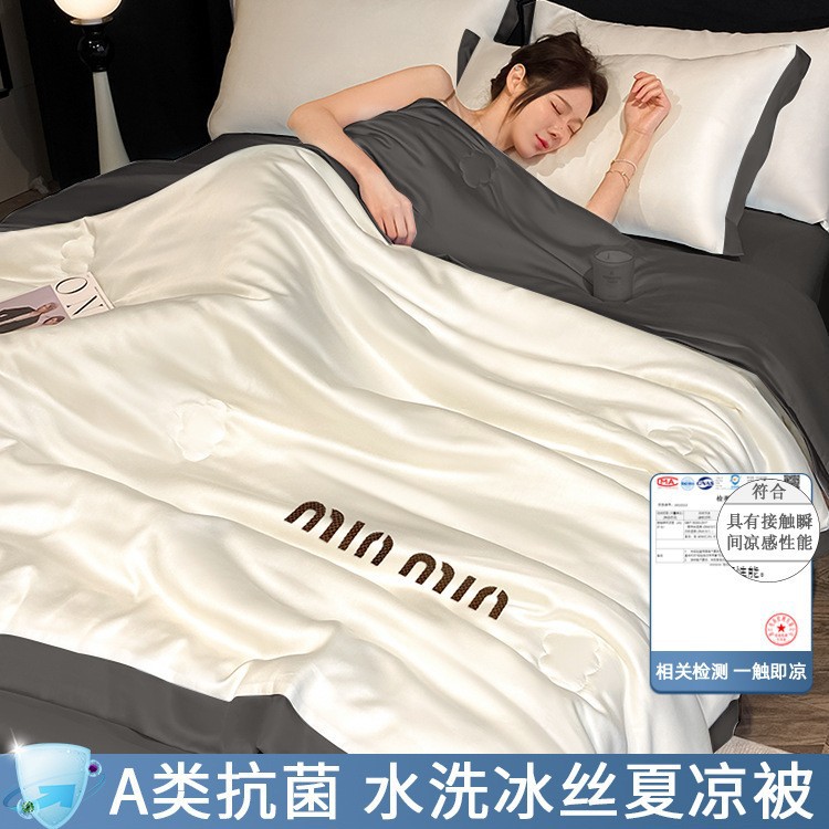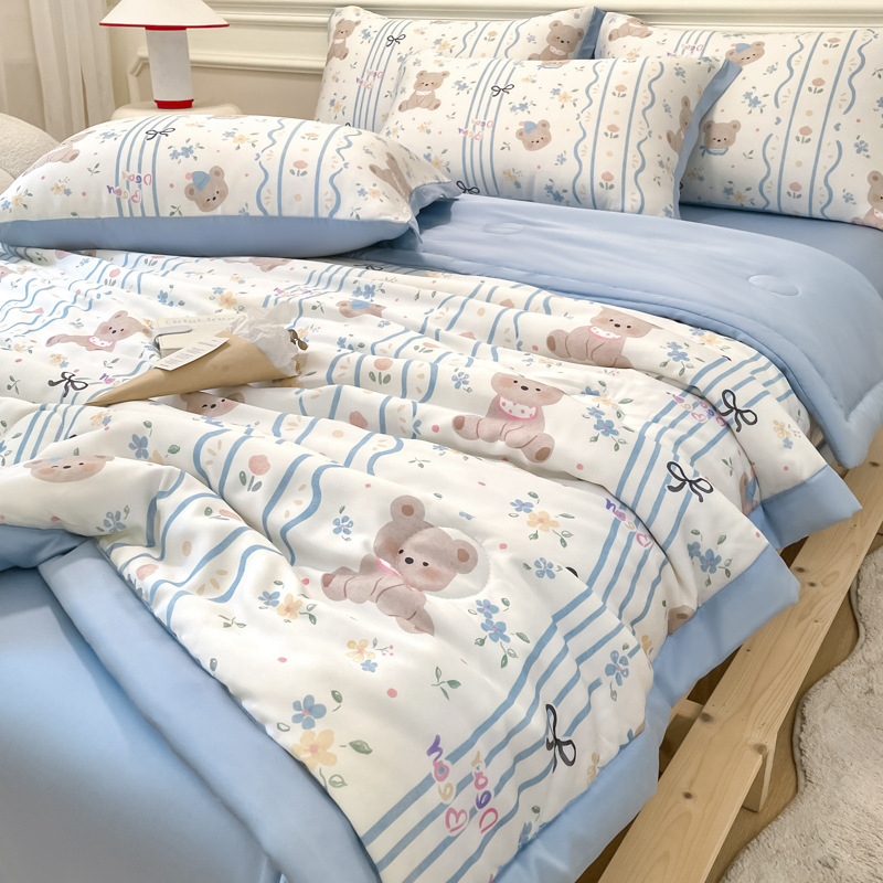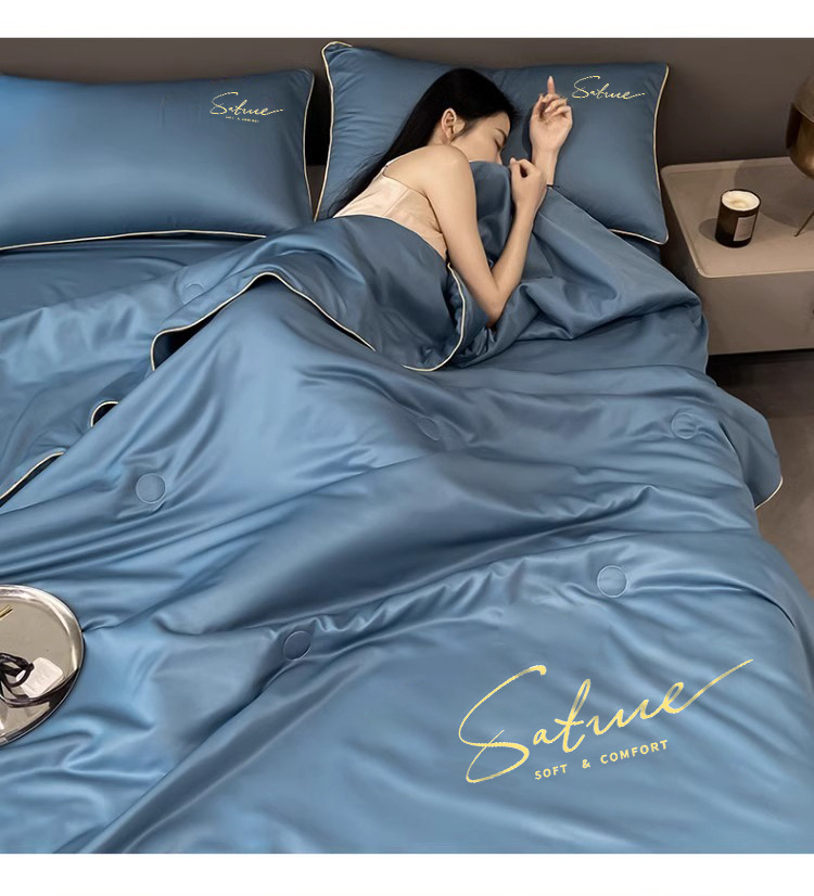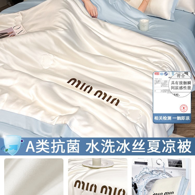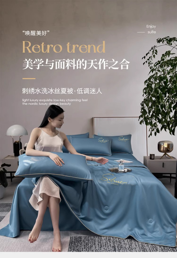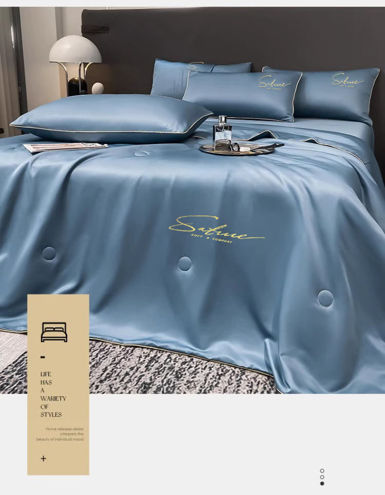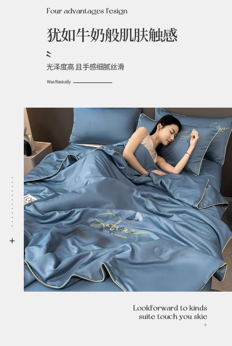 여름 신작 이불, 아이스 실크 여름 이불, 에어컨 이불, 더블 4종 세트, 시원한 실크 여름 이불, 세탁기로 세탁 가능한 얇은 스타일