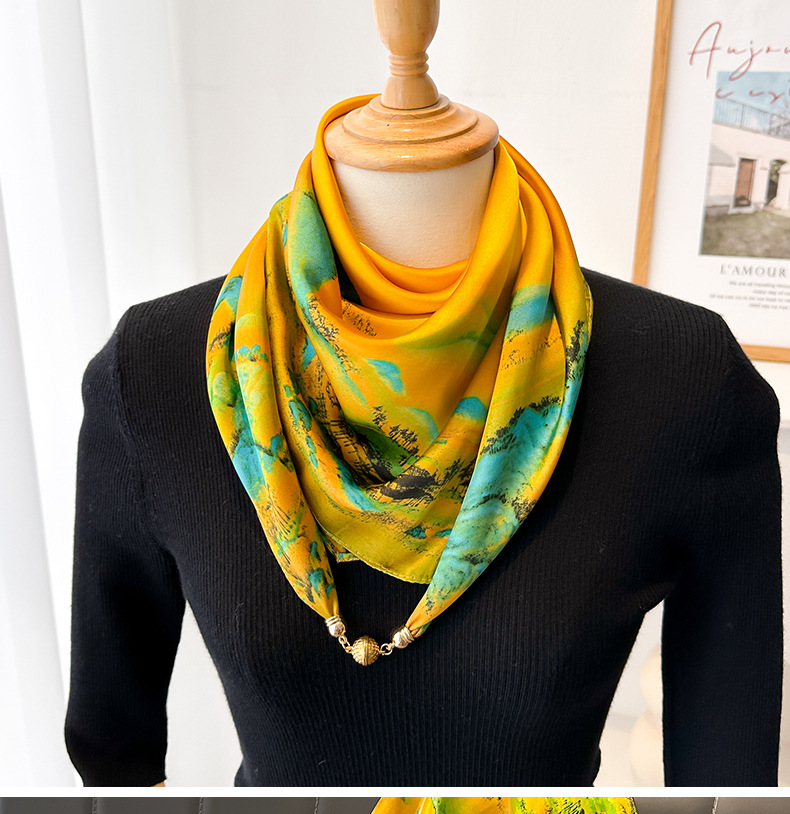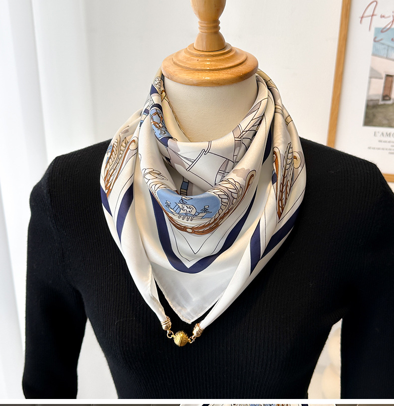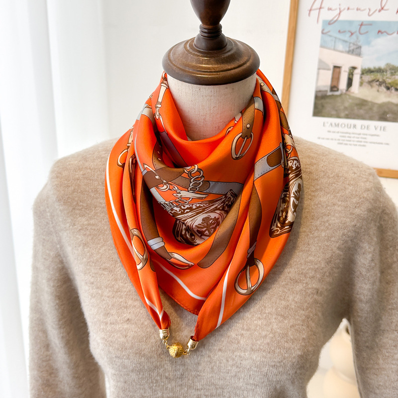 마그네틱 버클 삼각형 작은 광장 스카프 여성의 봄과 가을 전문 셔츠 코트 목 보호 장식 스카프 얇은 스카프 70스토어 가기