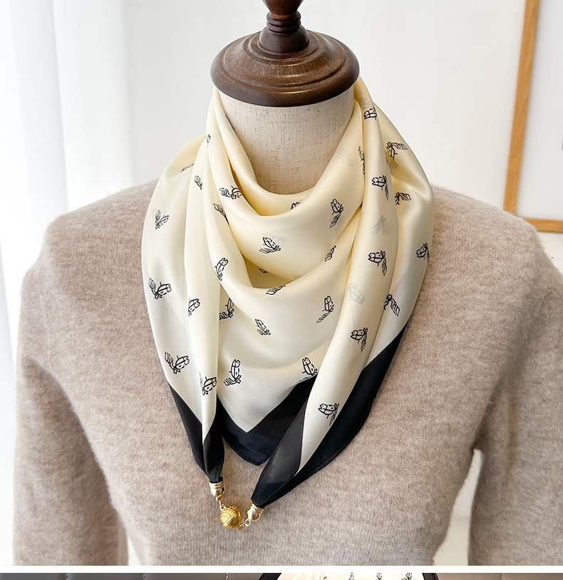 마그네틱 버클 삼각형 작은 광장 스카프 여성의 봄과 가을 전문 셔츠 코트 목 보호 장식 스카프 얇은 스카프 70