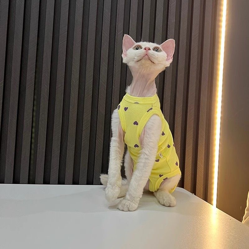 여름 높은 탄성 편안한 배꼽 보호 차가운 에어컨 네 다리 옷 조끼 머리없는 고양이 옷 스핑크스 고양이 데본스토어 가기