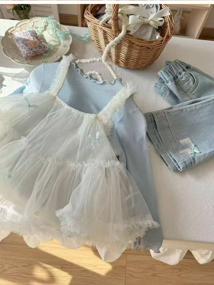 아동 패션 서스펜더 거즈 스커트 바닥 셔츠 청바지 한국 아동복 여아 정장 2025 가을 새로운 스타일