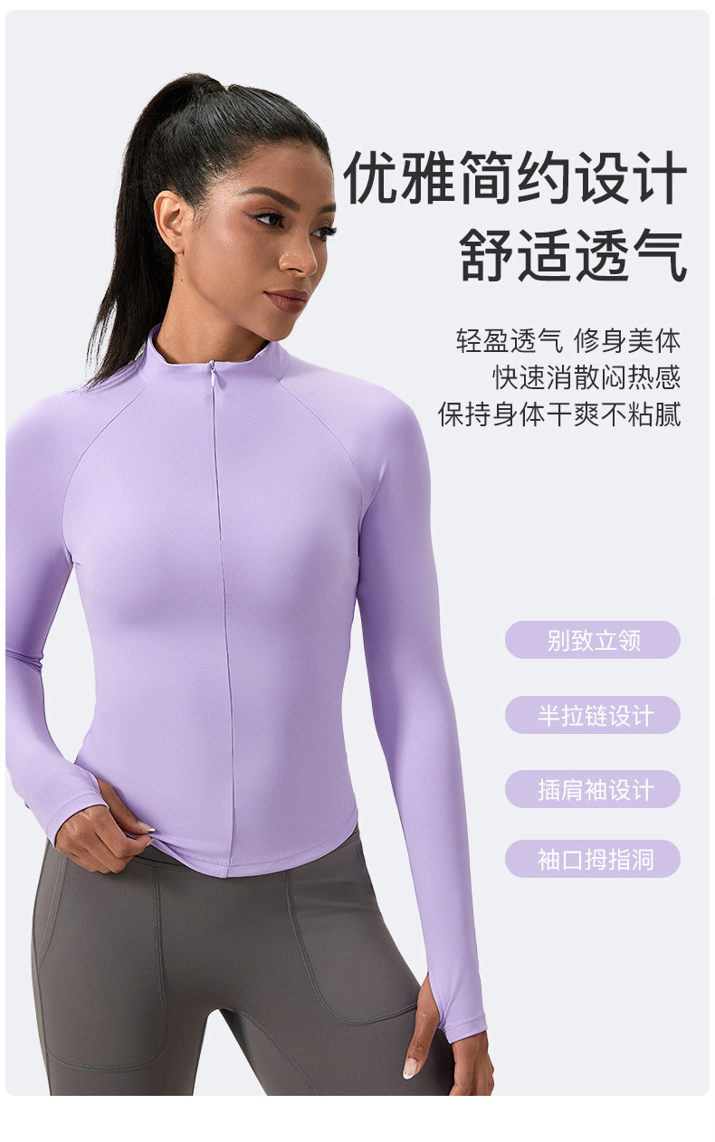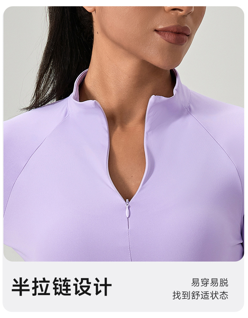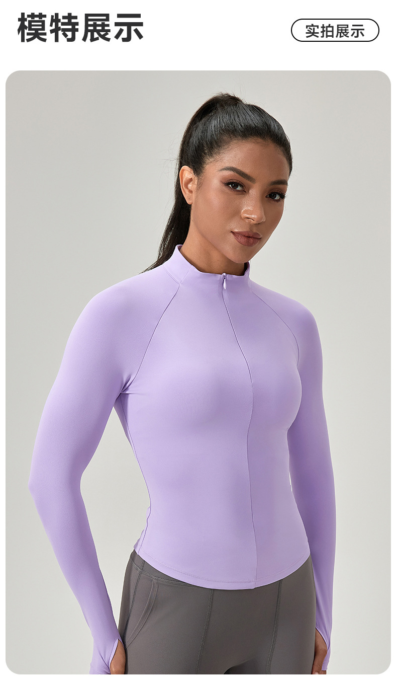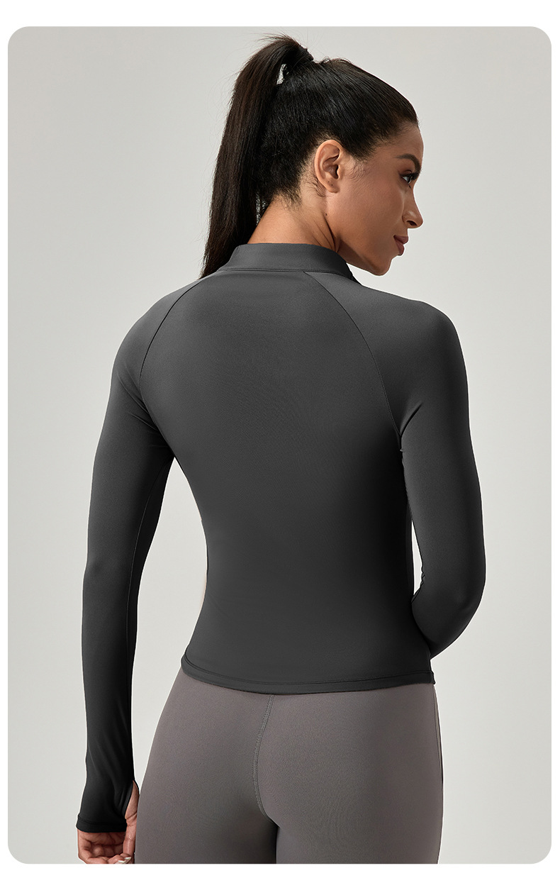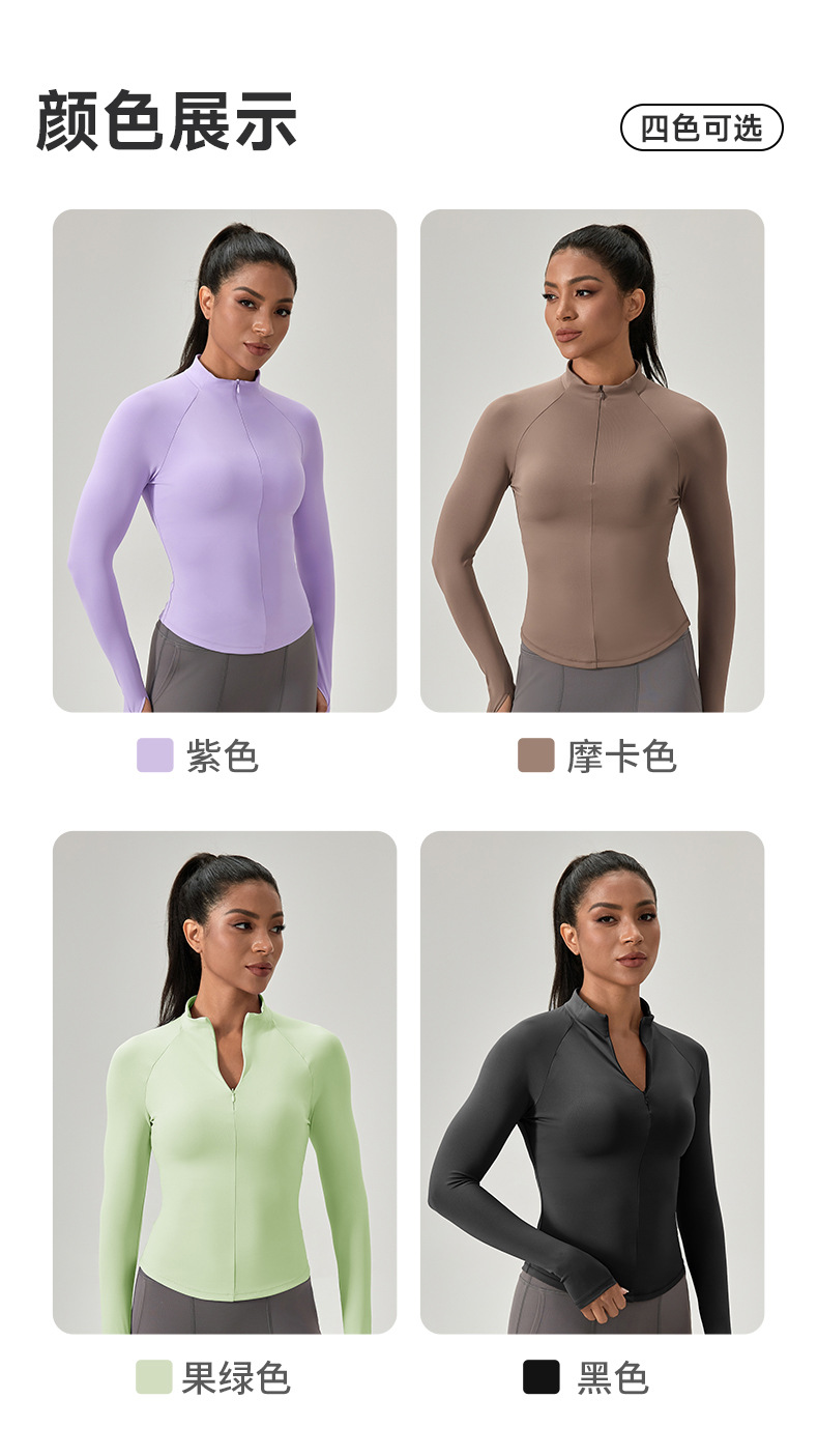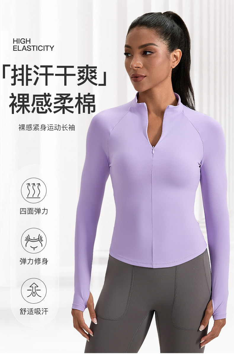 여성용 하프 Zip 요가 세트 긴팔 수직 칼라 스포츠 피트니스 탑 퀵 드라이 알몸 센스 러닝 타이트 52559