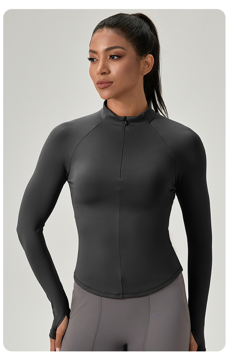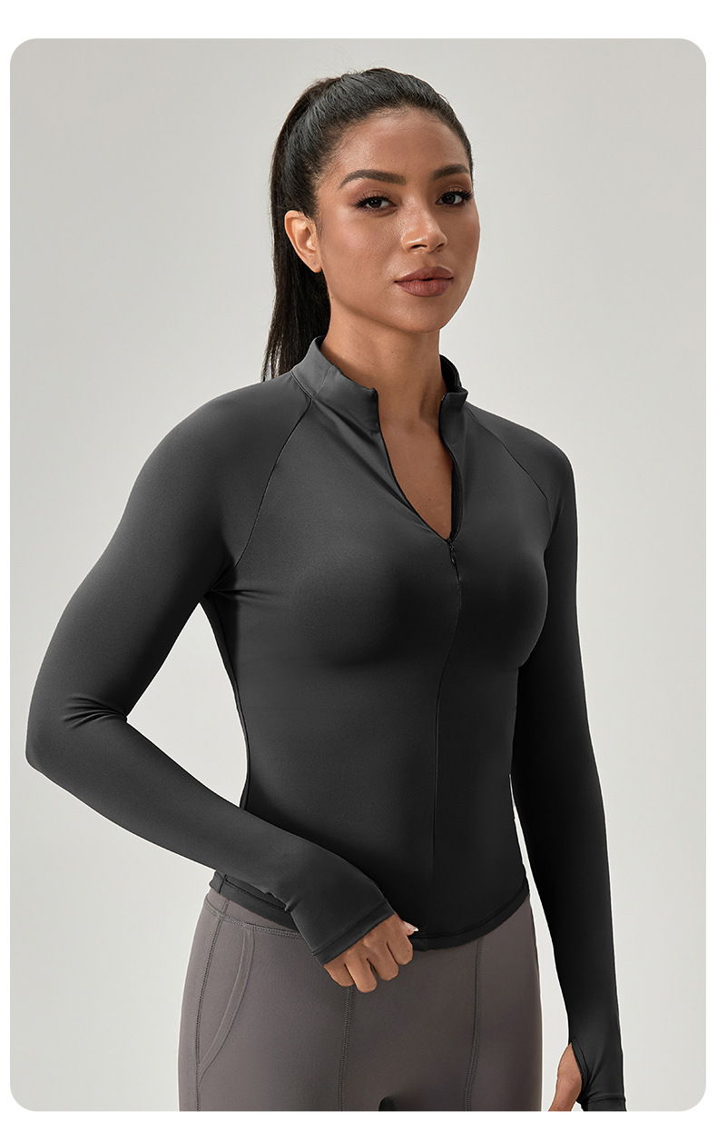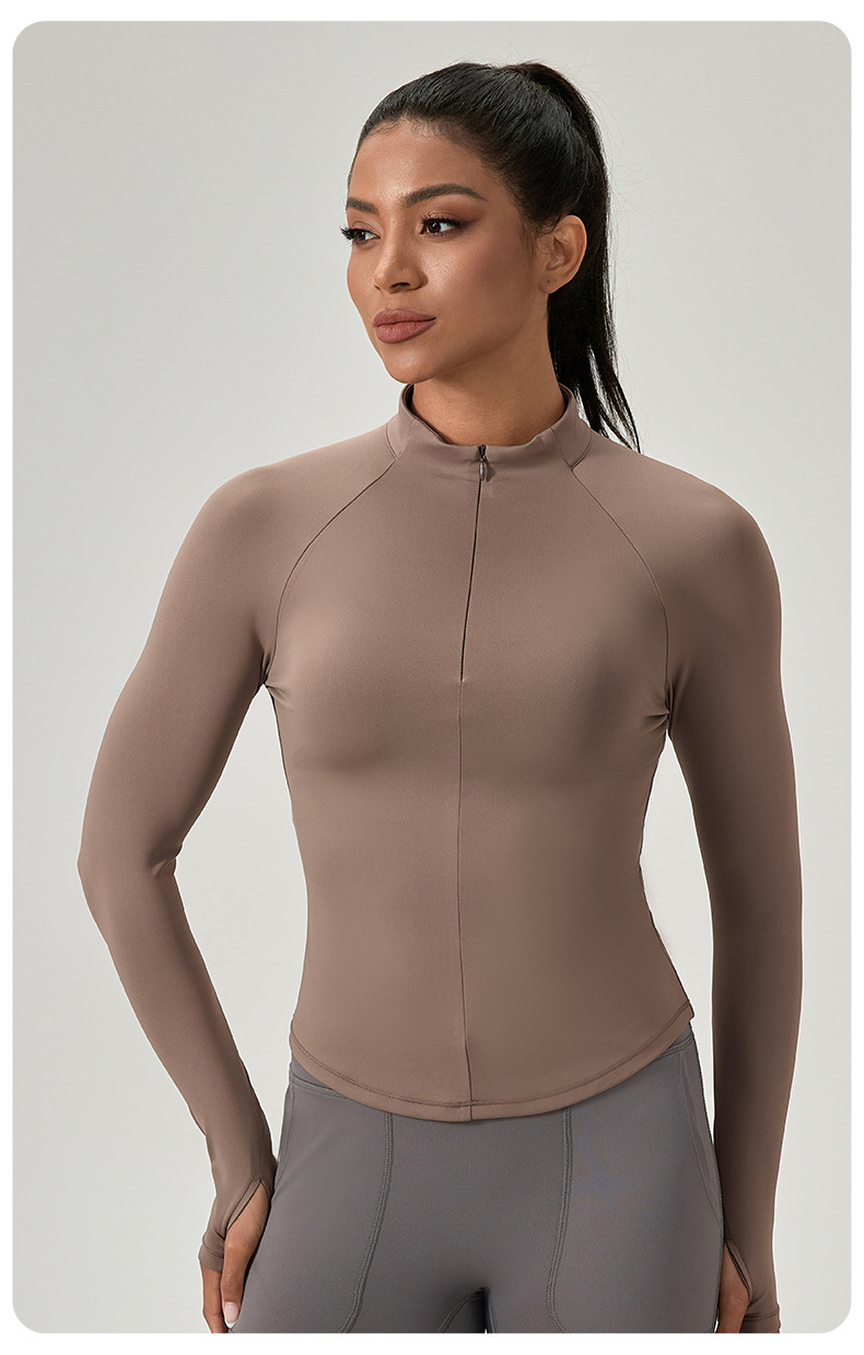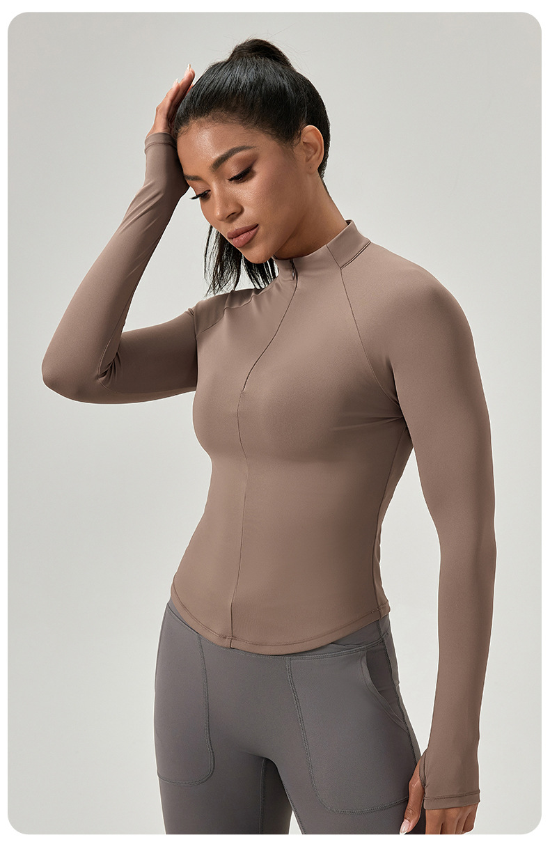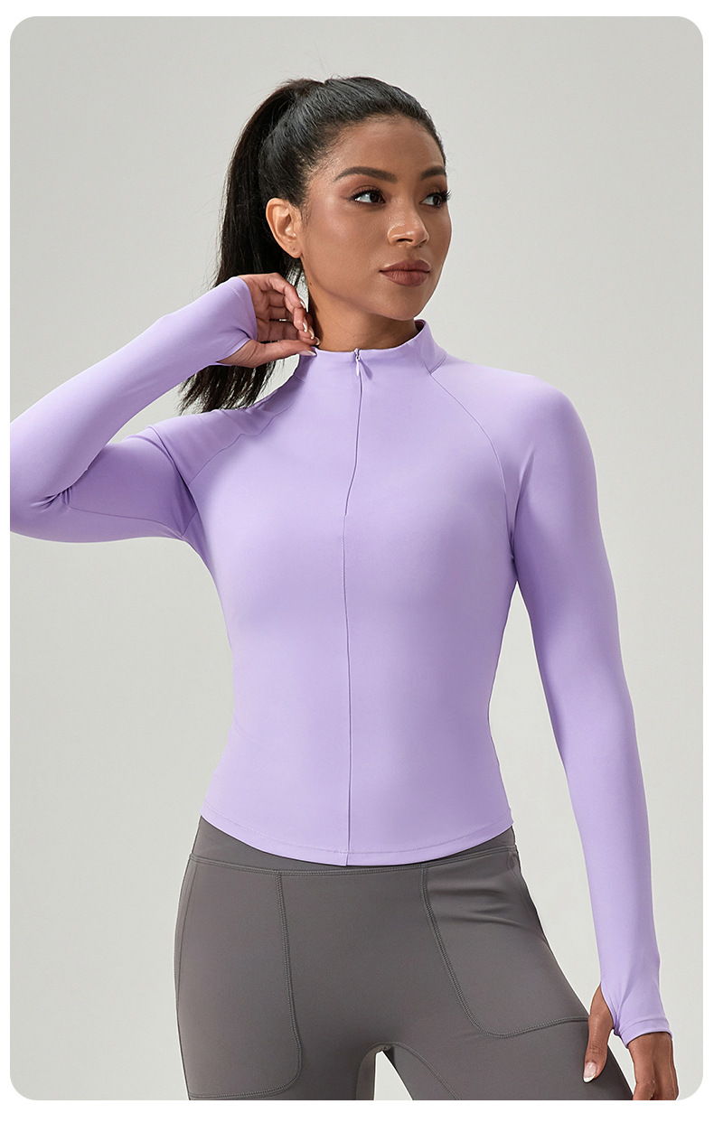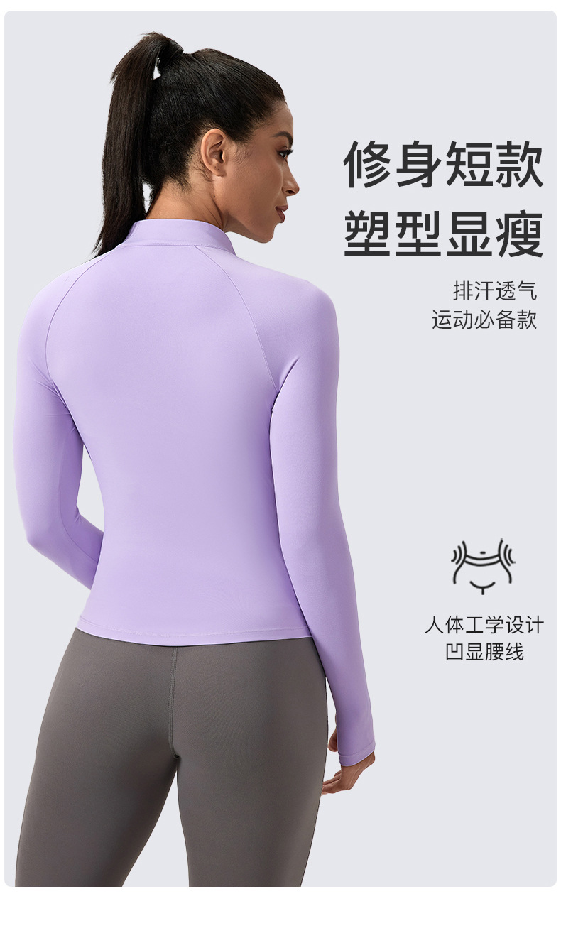 여성용 하프 Zip 요가 세트 긴팔 수직 칼라 스포츠 피트니스 탑 퀵 드라이 알몸 센스 러닝 타이트 52559