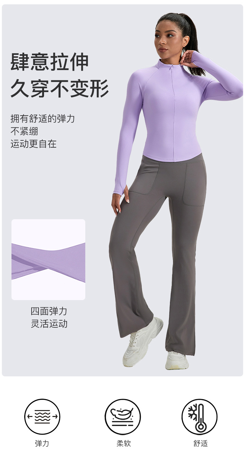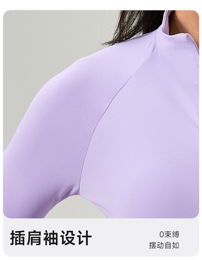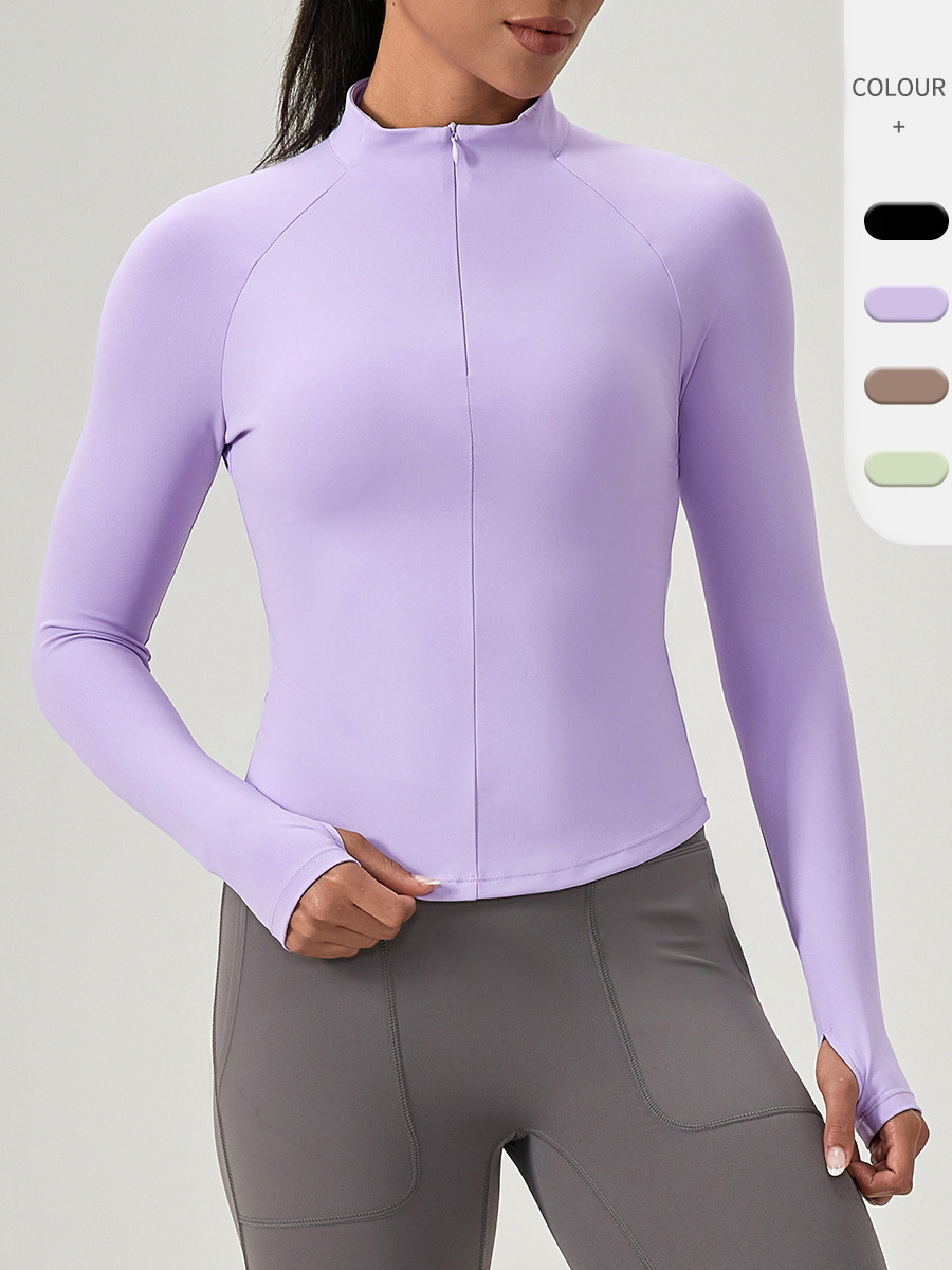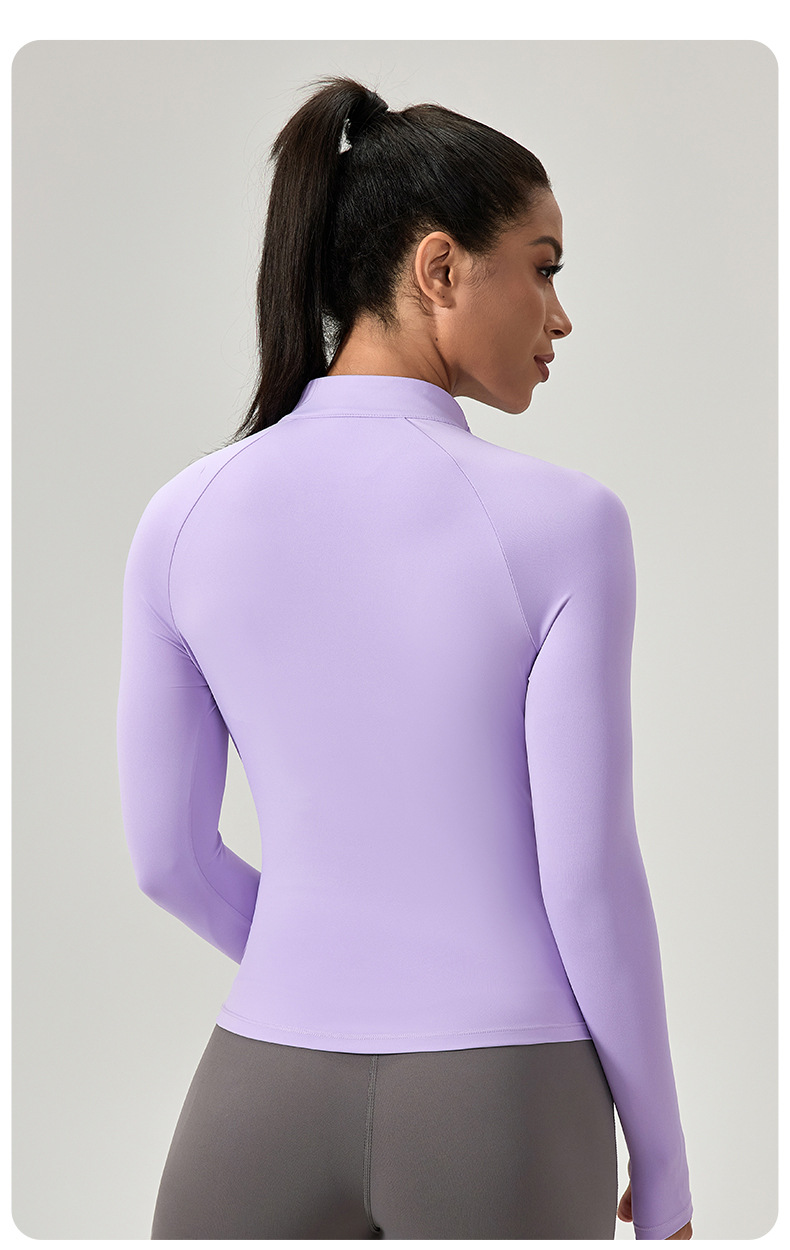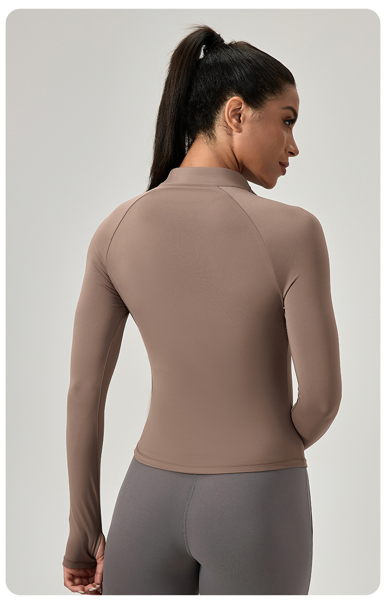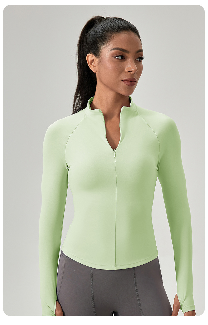 여성용 하프 Zip 요가 세트 긴팔 수직 칼라 스포츠 피트니스 탑 퀵 드라이 알몸 센스 러닝 타이트 52559
