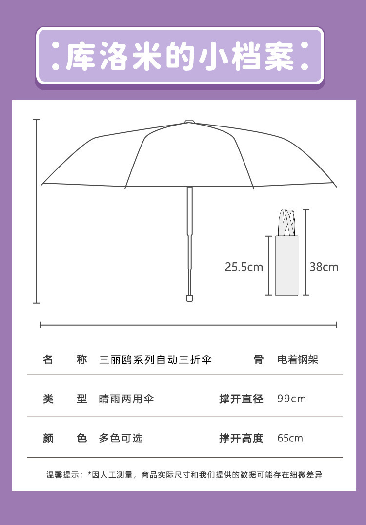 산리오 정품 우산, 비가 오나 눈이 오나 사용 가능, 70% off 자외선 차단, 휴대용 양산, 가볍고 편리함
