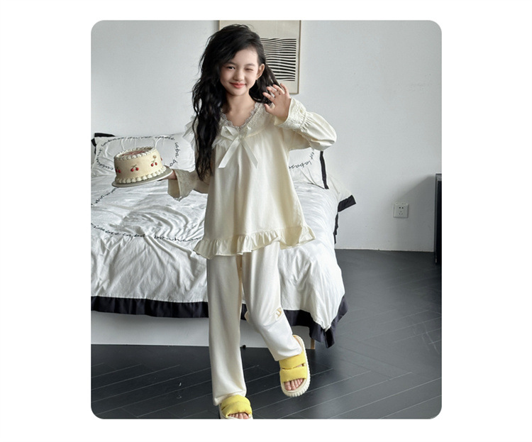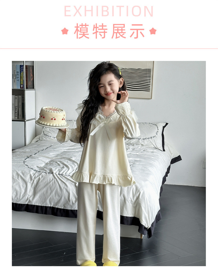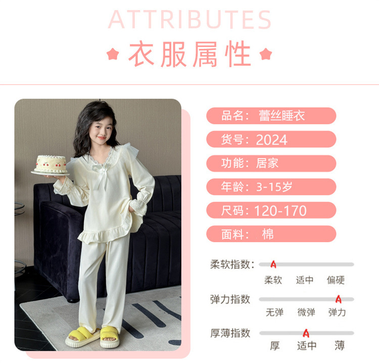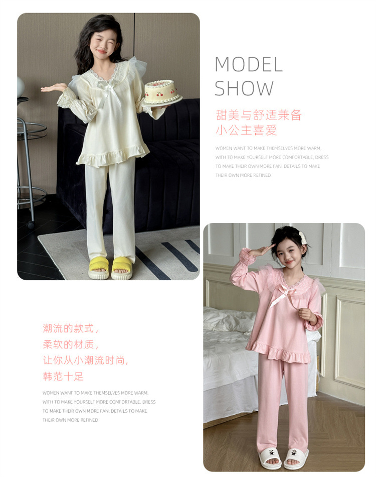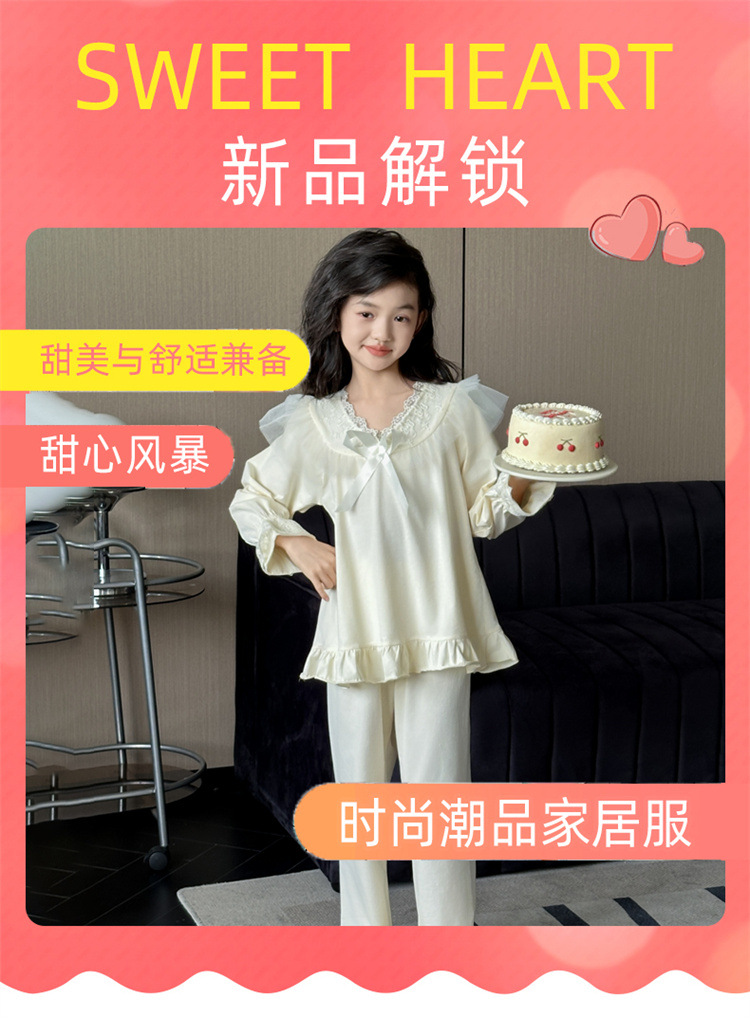 소녀 잠옷 봄과 가을 새로운 어린이 공주 레이스 스타일러스 캐주얼 소녀 홈 옷 세트 후 저우 질리스토어 가기
