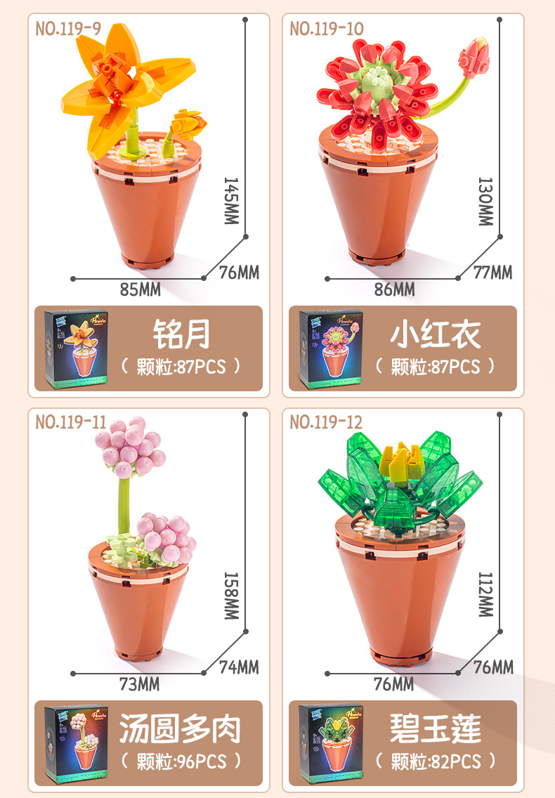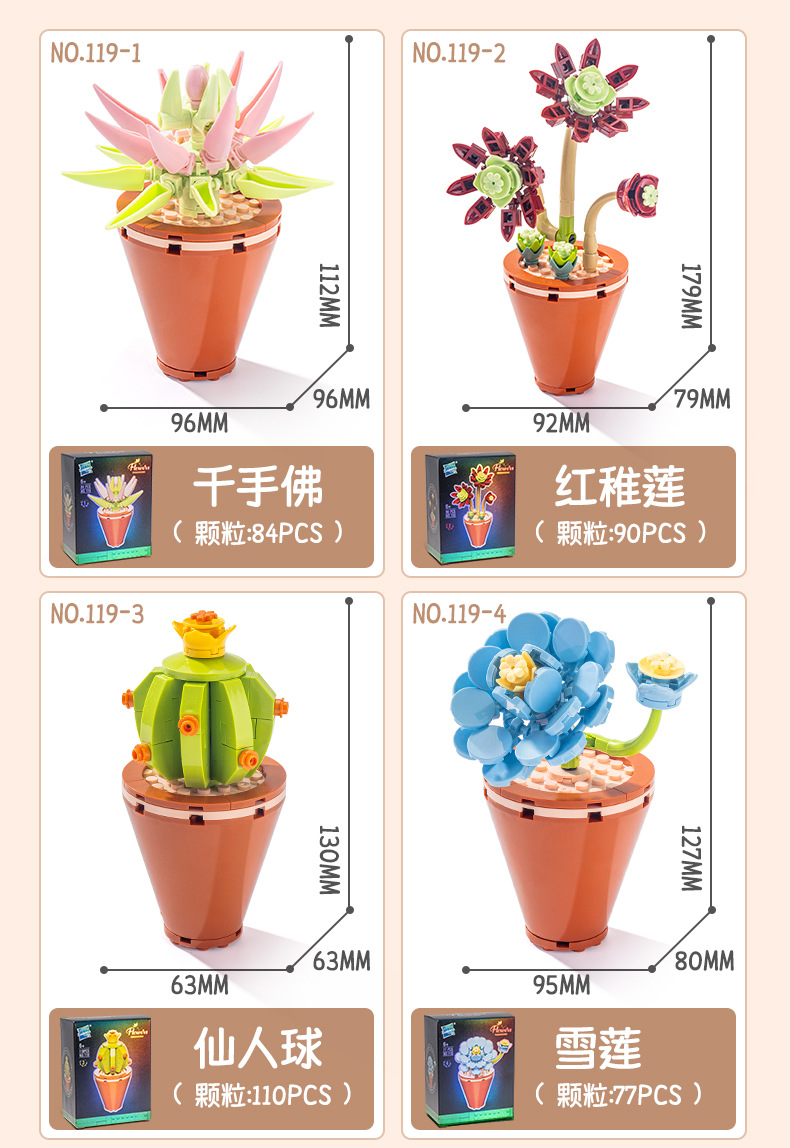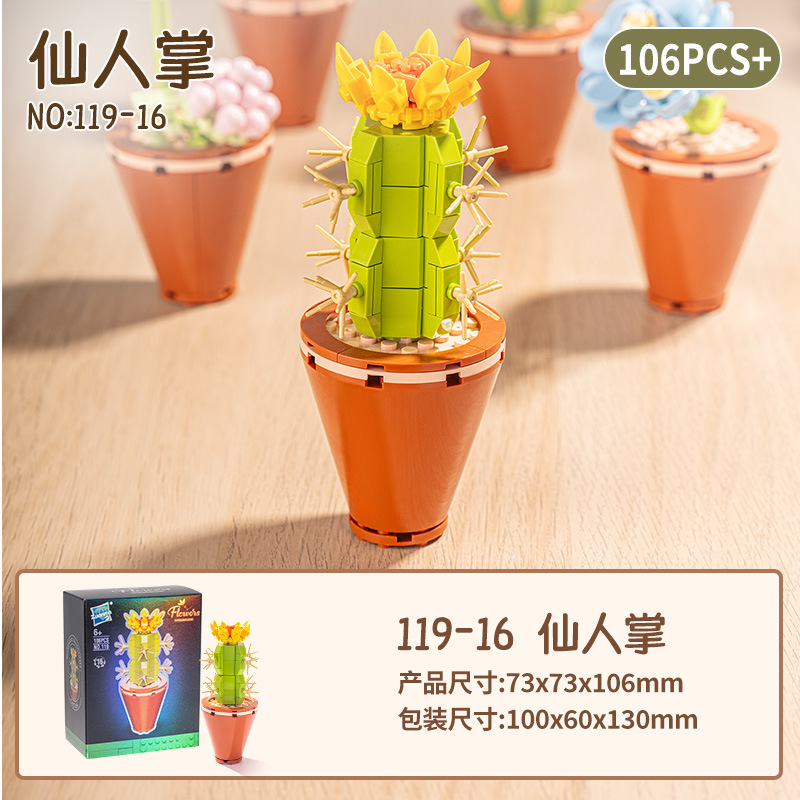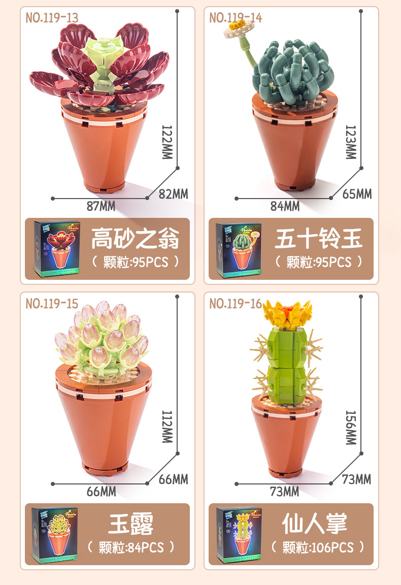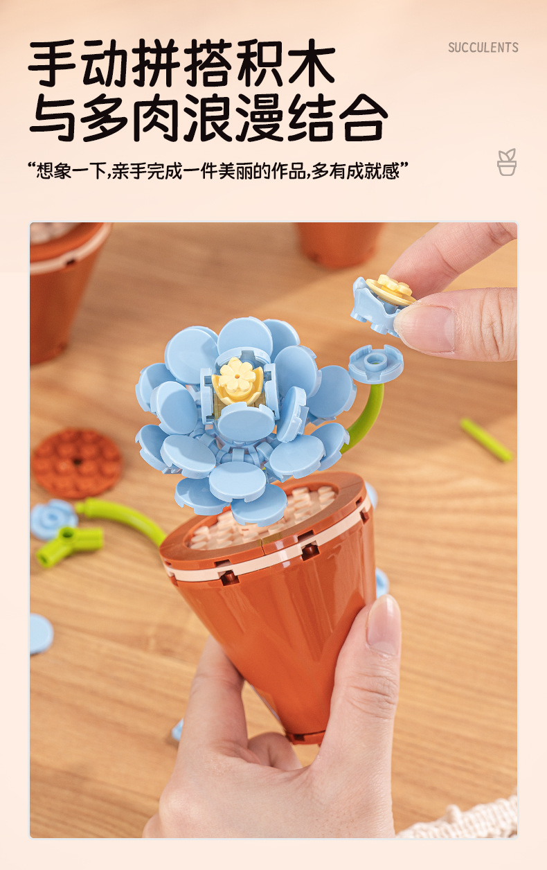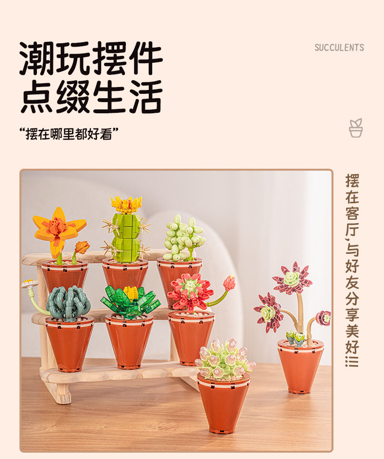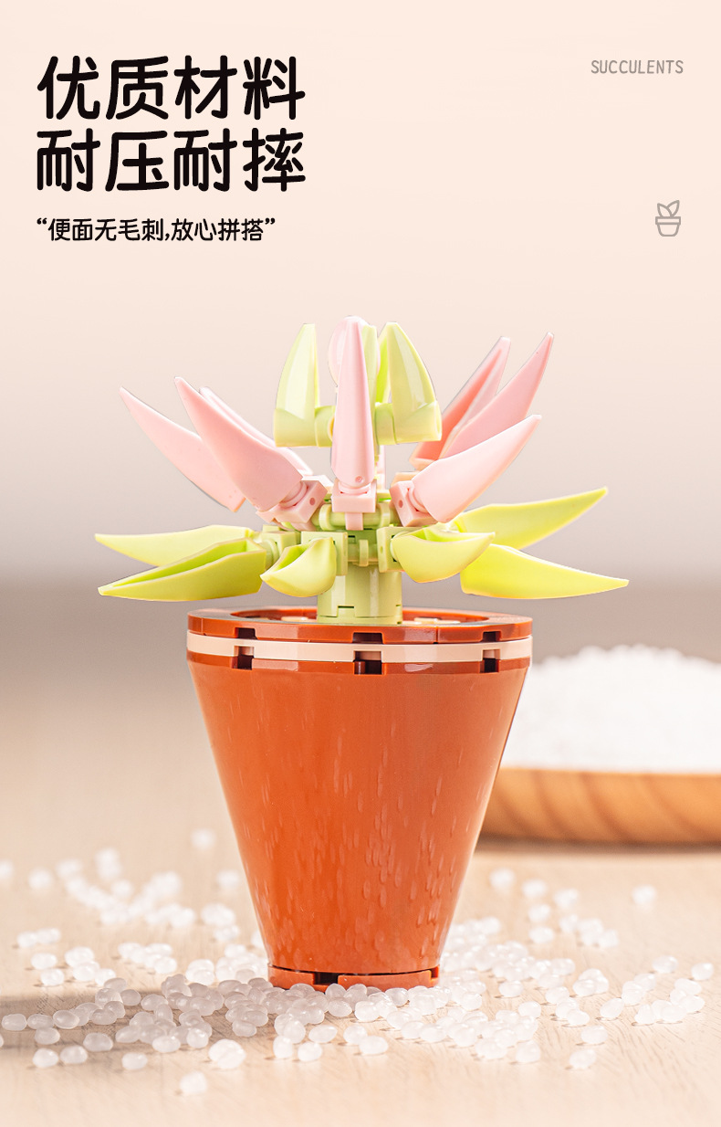 다이아몬드 말 미니 시뮬레이션 식물 화분에 심은 다육 식물 모델 빌딩 블록 장식품 어린이 수제 조립 장난감 교육용 빌딩 블록스토어 가기