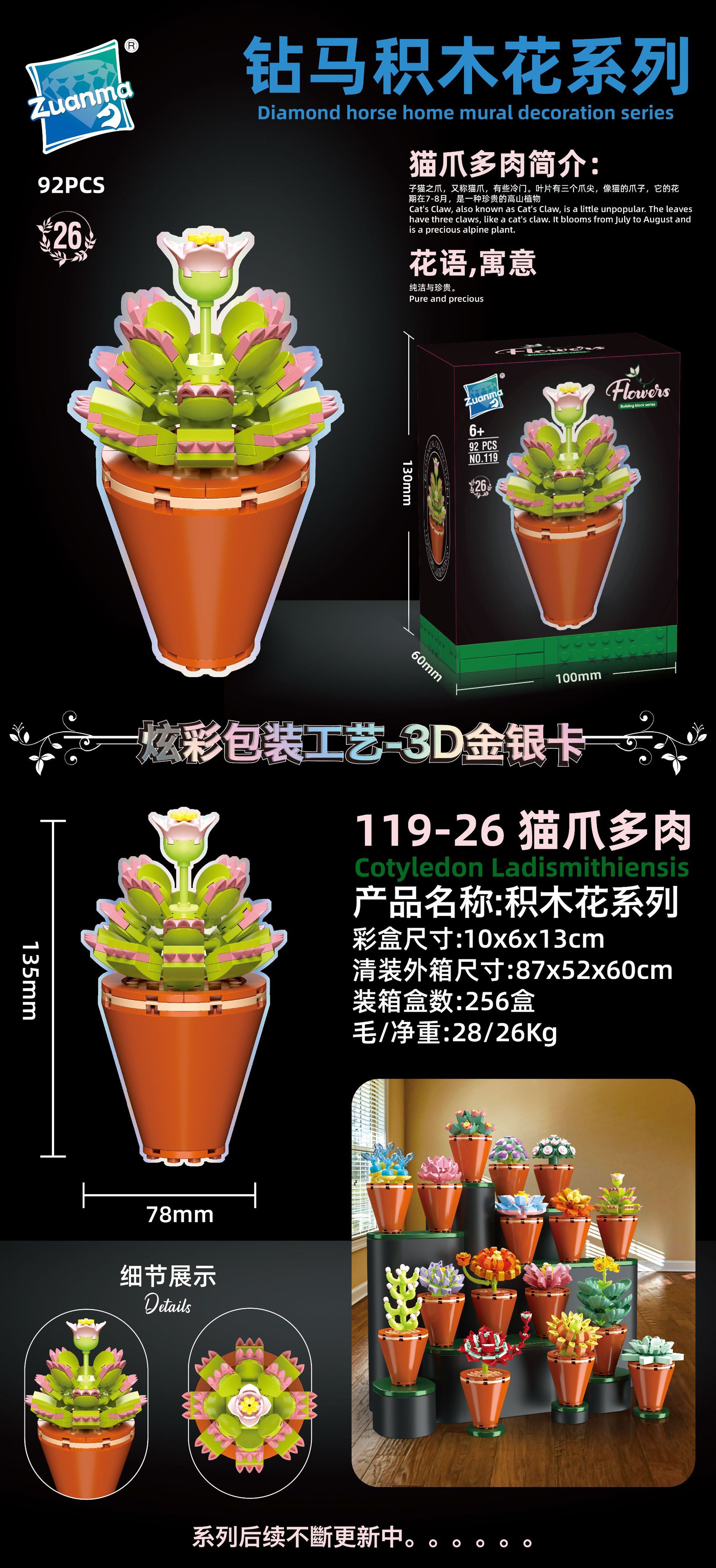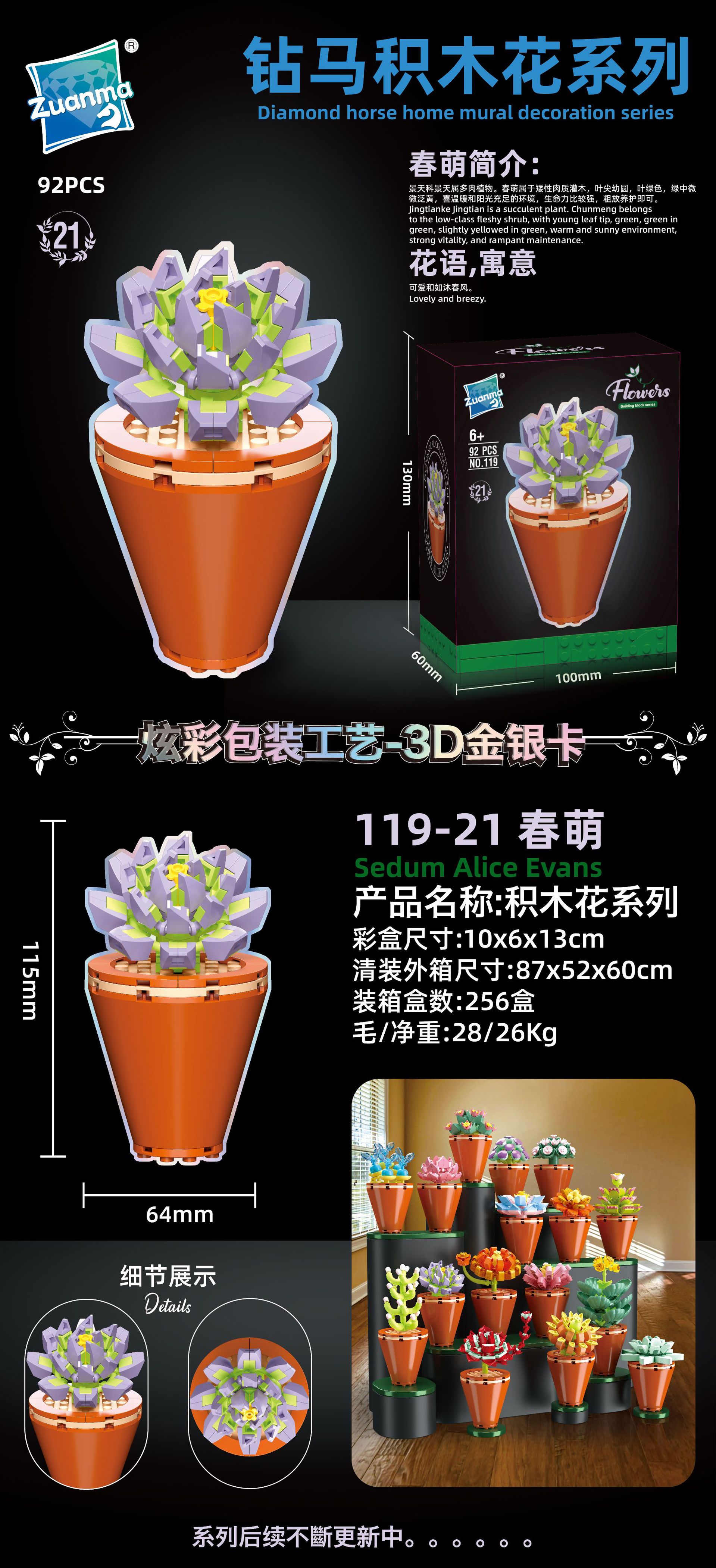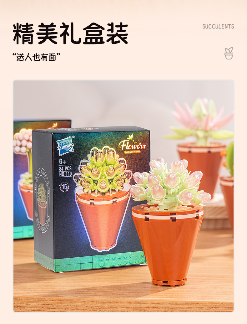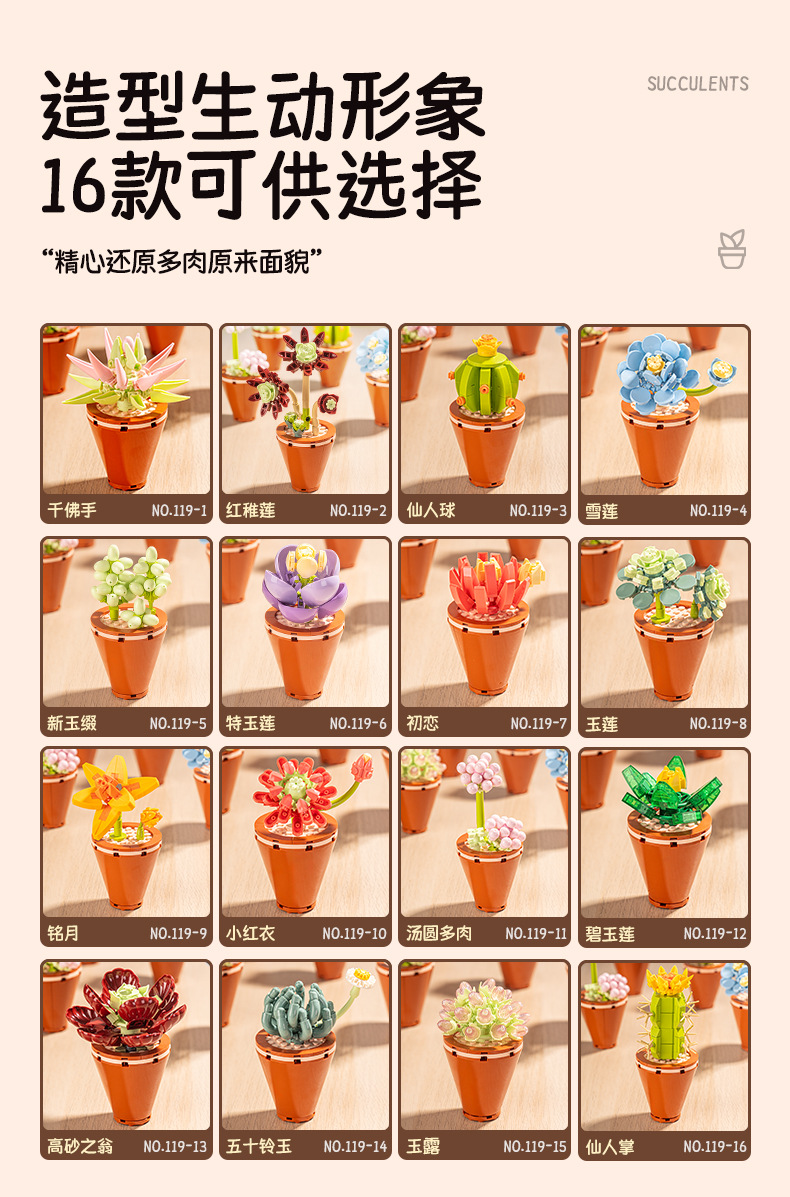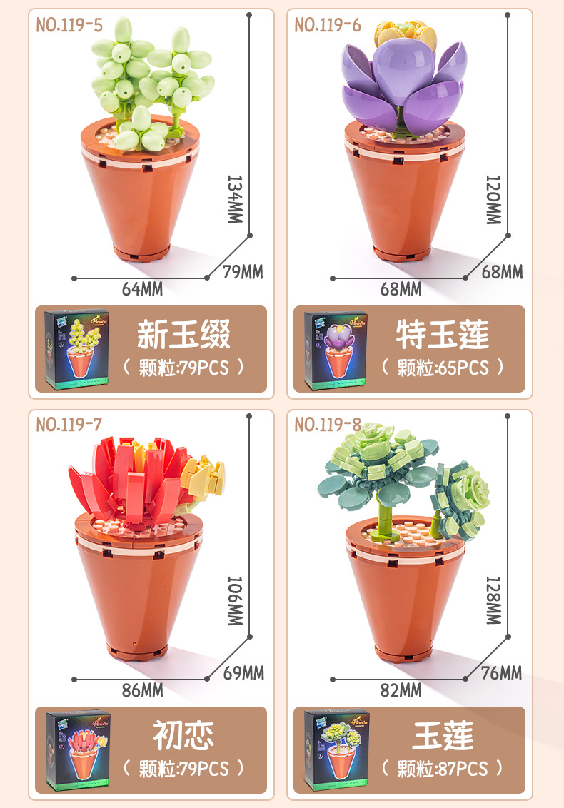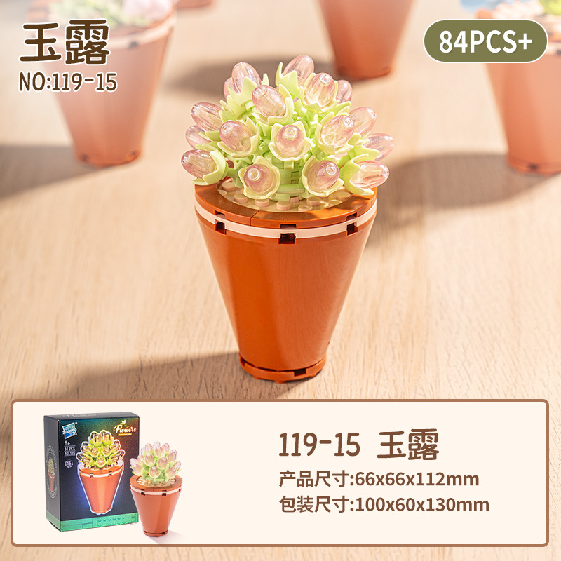 다이아몬드 말 미니 시뮬레이션 식물 화분에 심은 다육 식물 모델 빌딩 블록 장식품 어린이 수제 조립 장난감 교육용 빌딩 블록스토어 가기