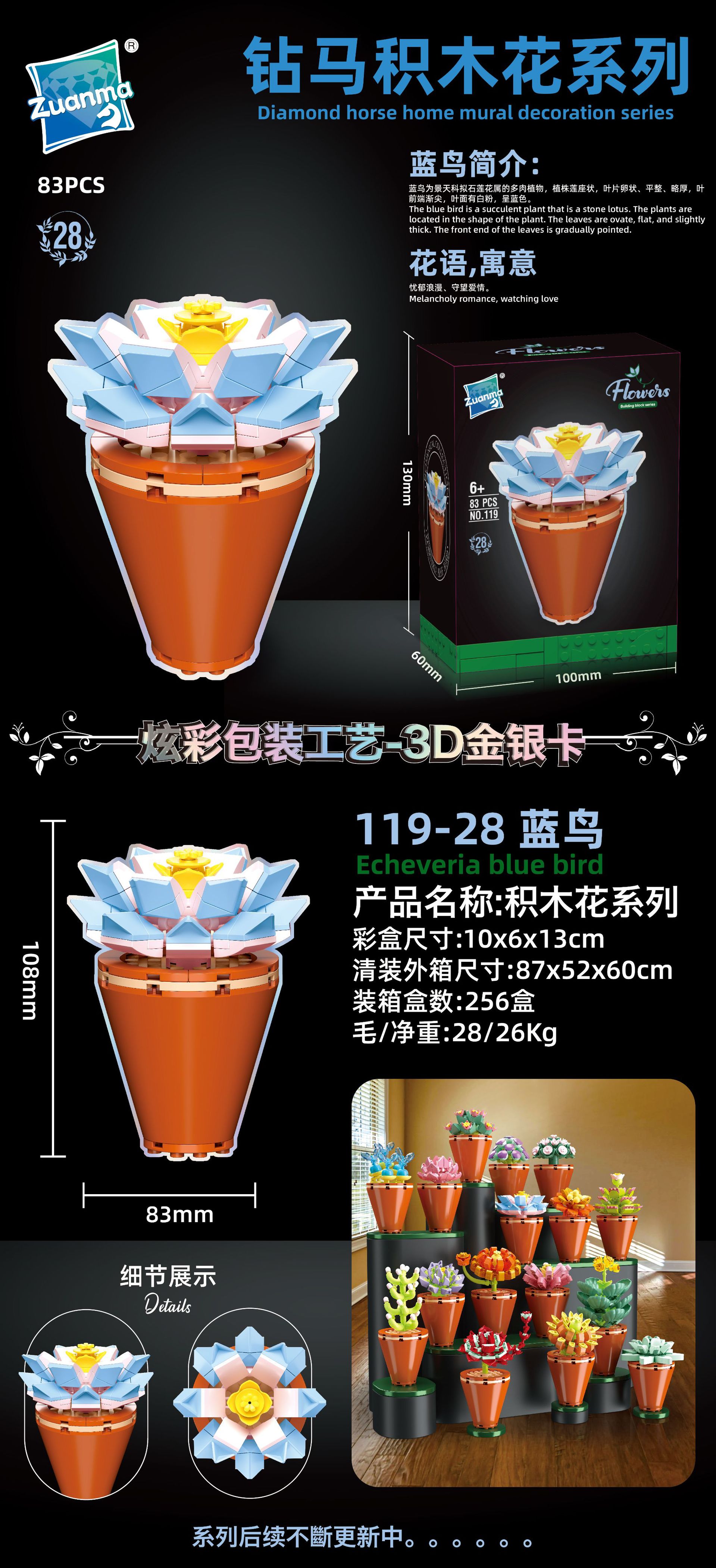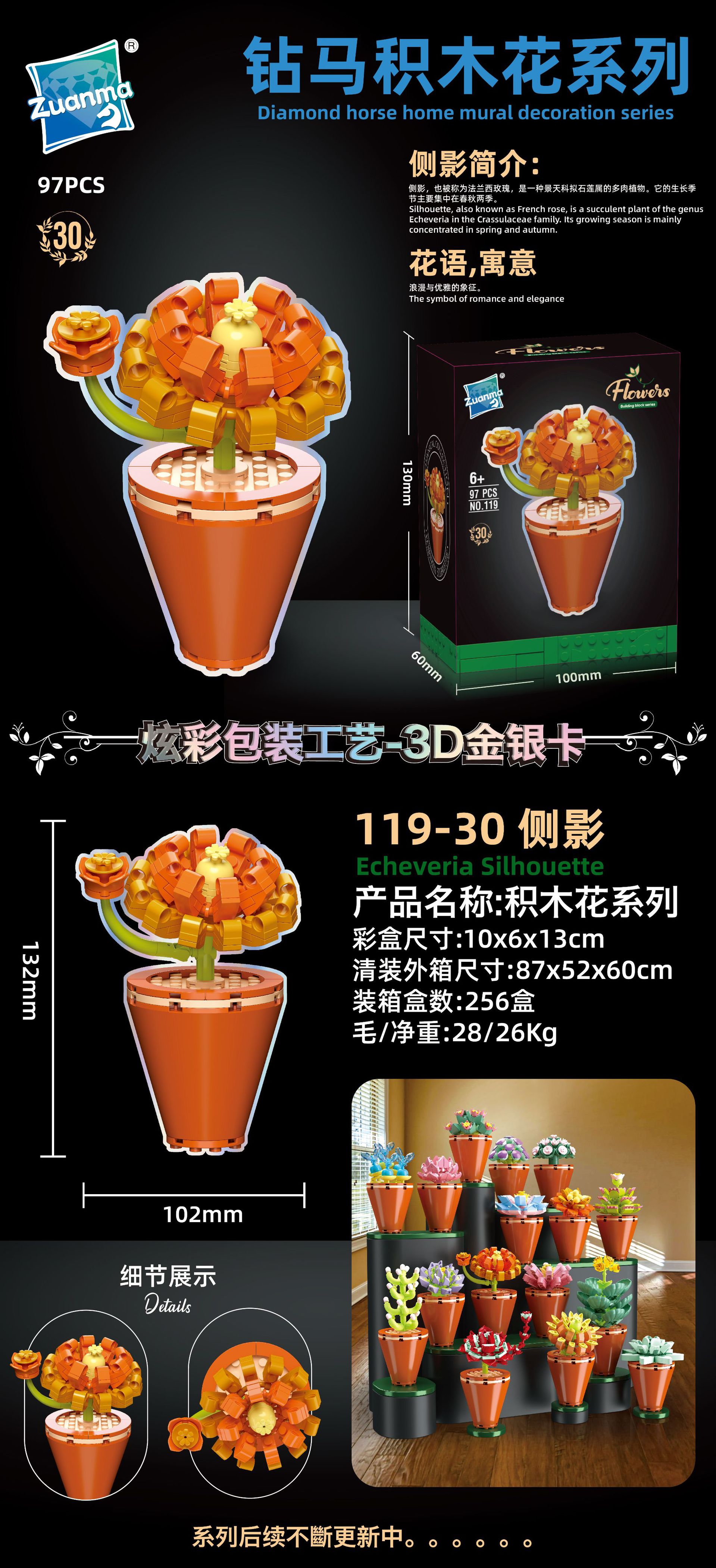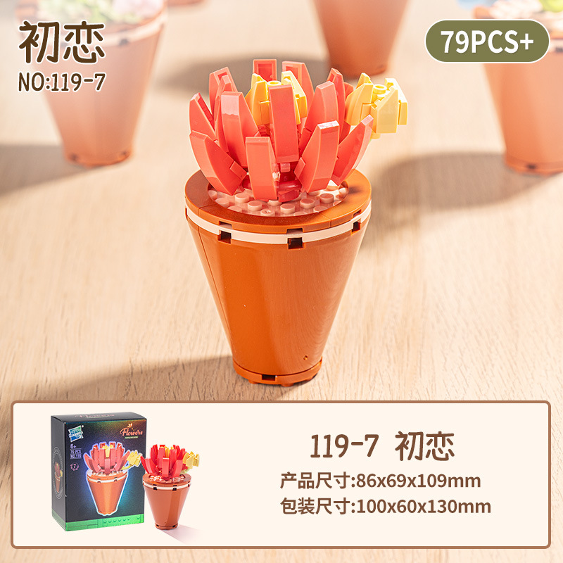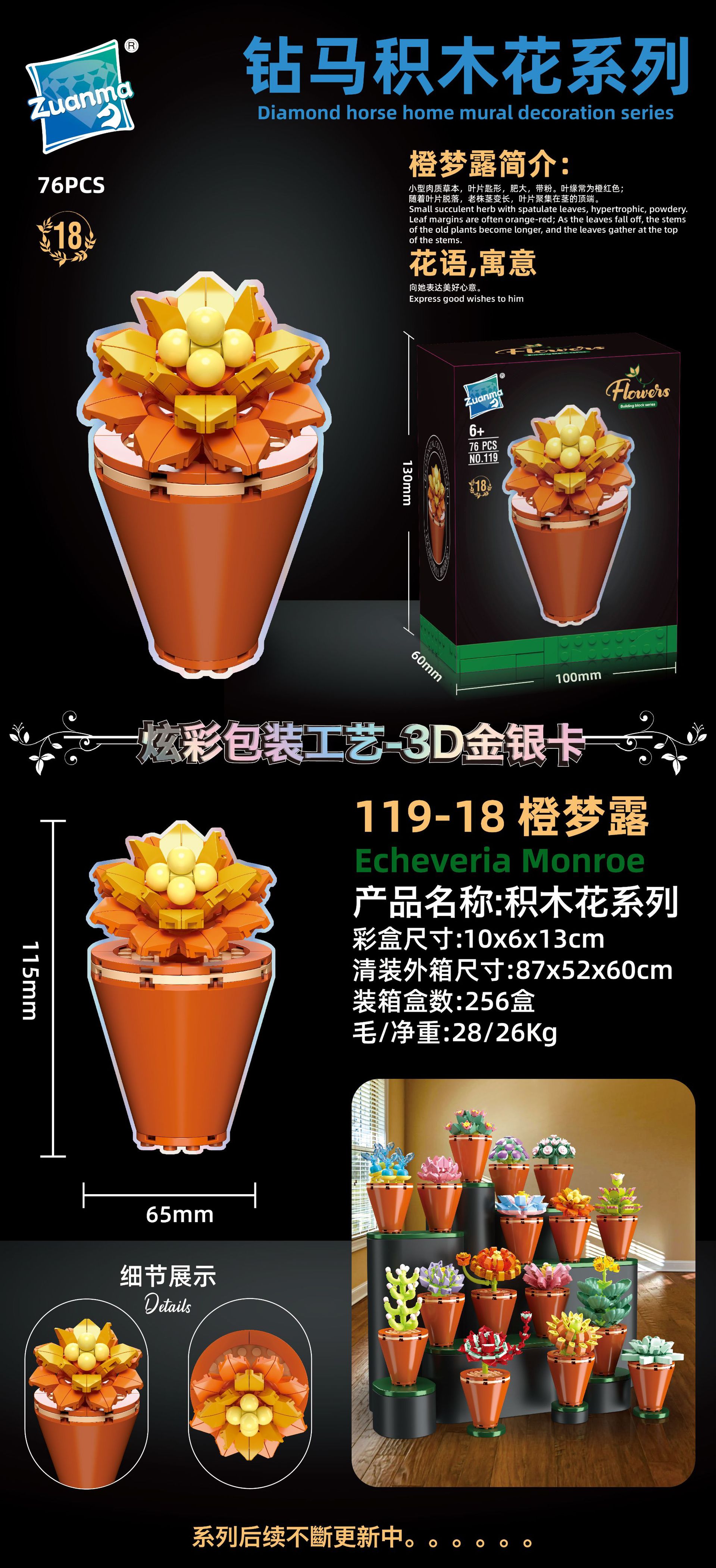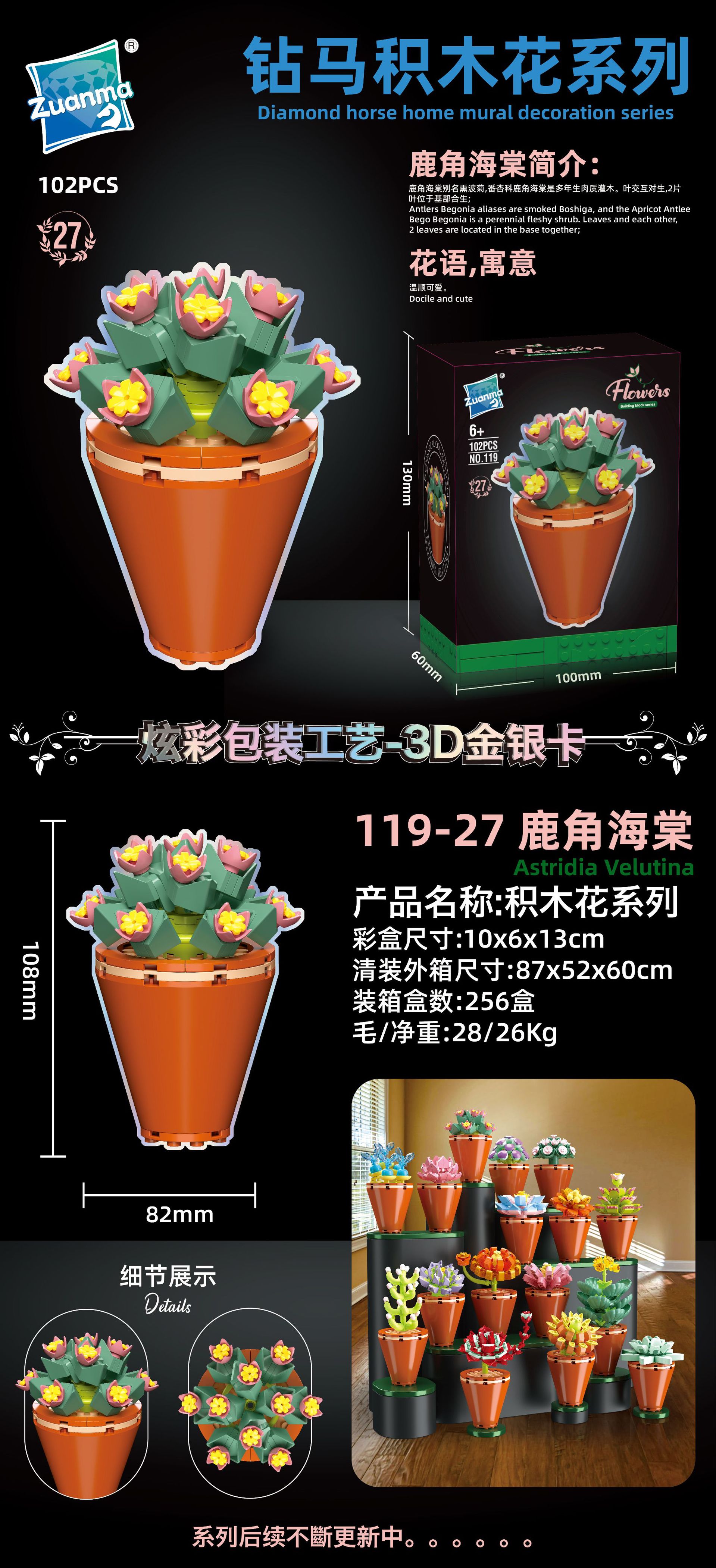 다이아몬드 말 미니 시뮬레이션 식물 화분에 심은 다육 식물 모델 빌딩 블록 장식품 어린이 수제 조립 장난감 교육용 빌딩 블록스토어 가기