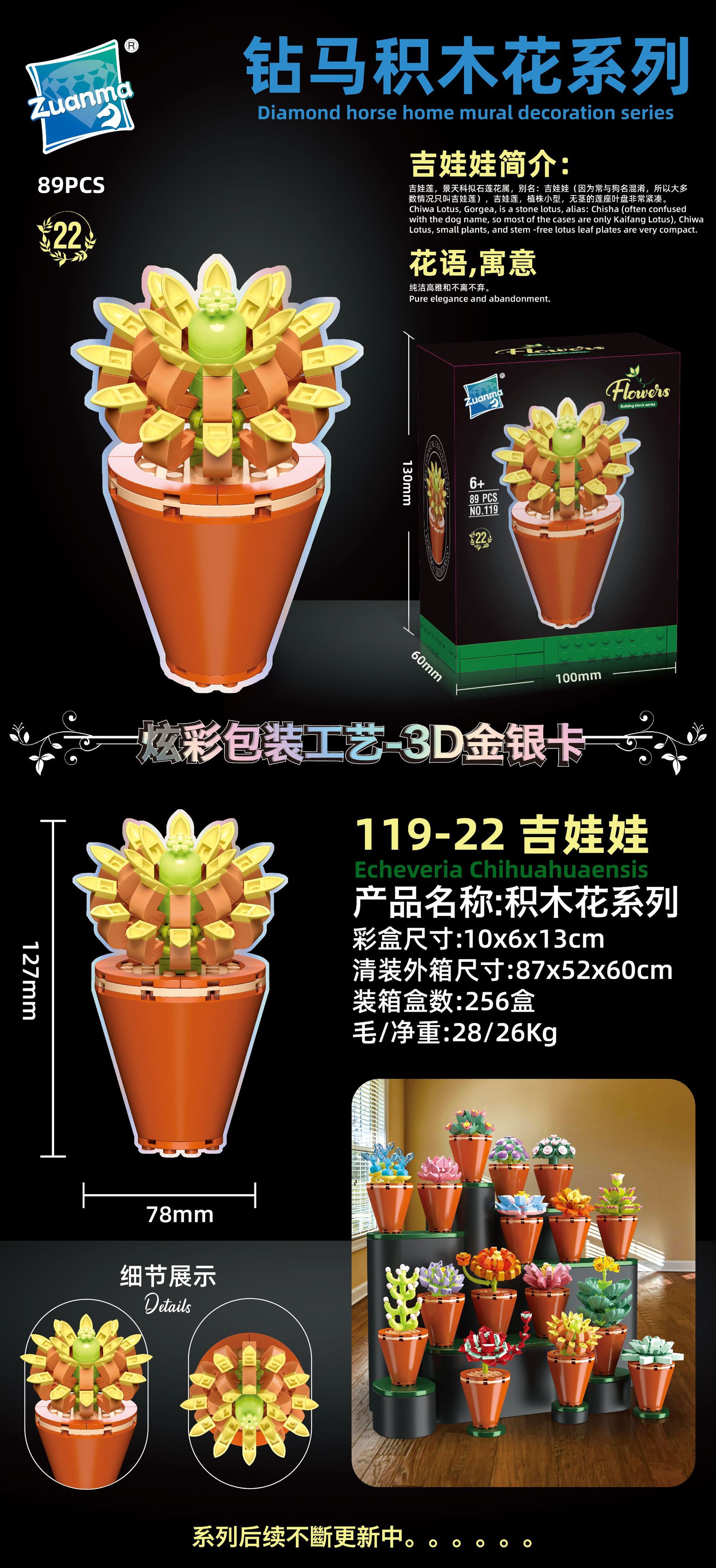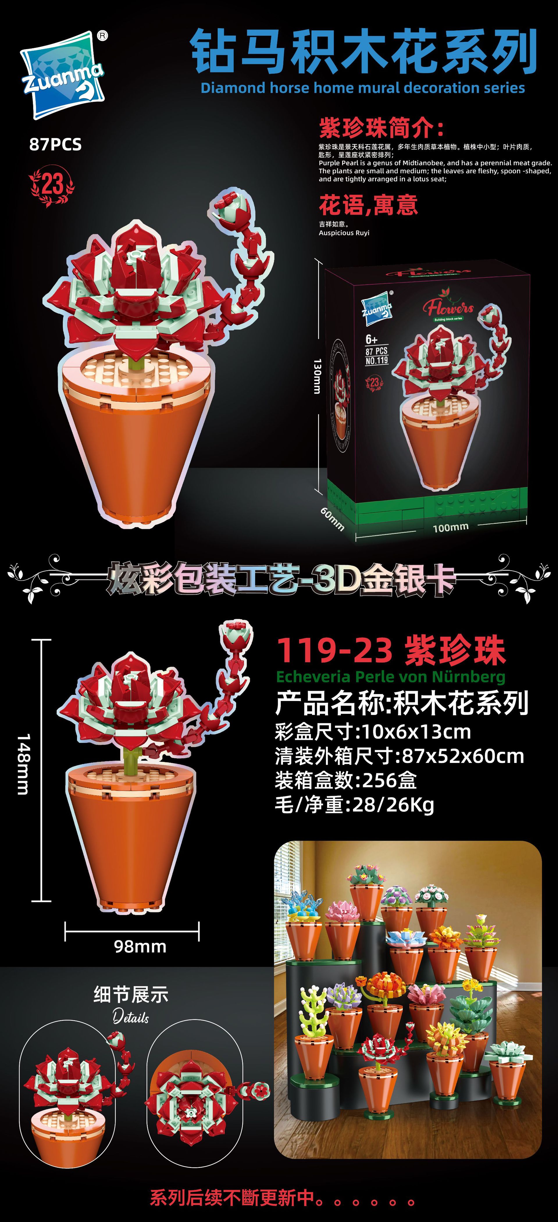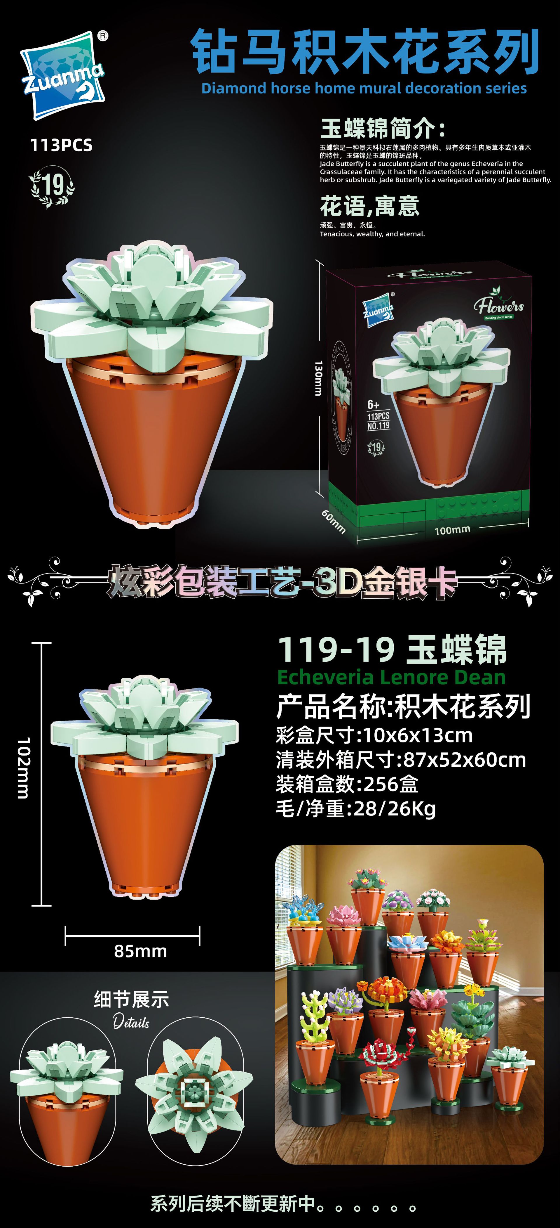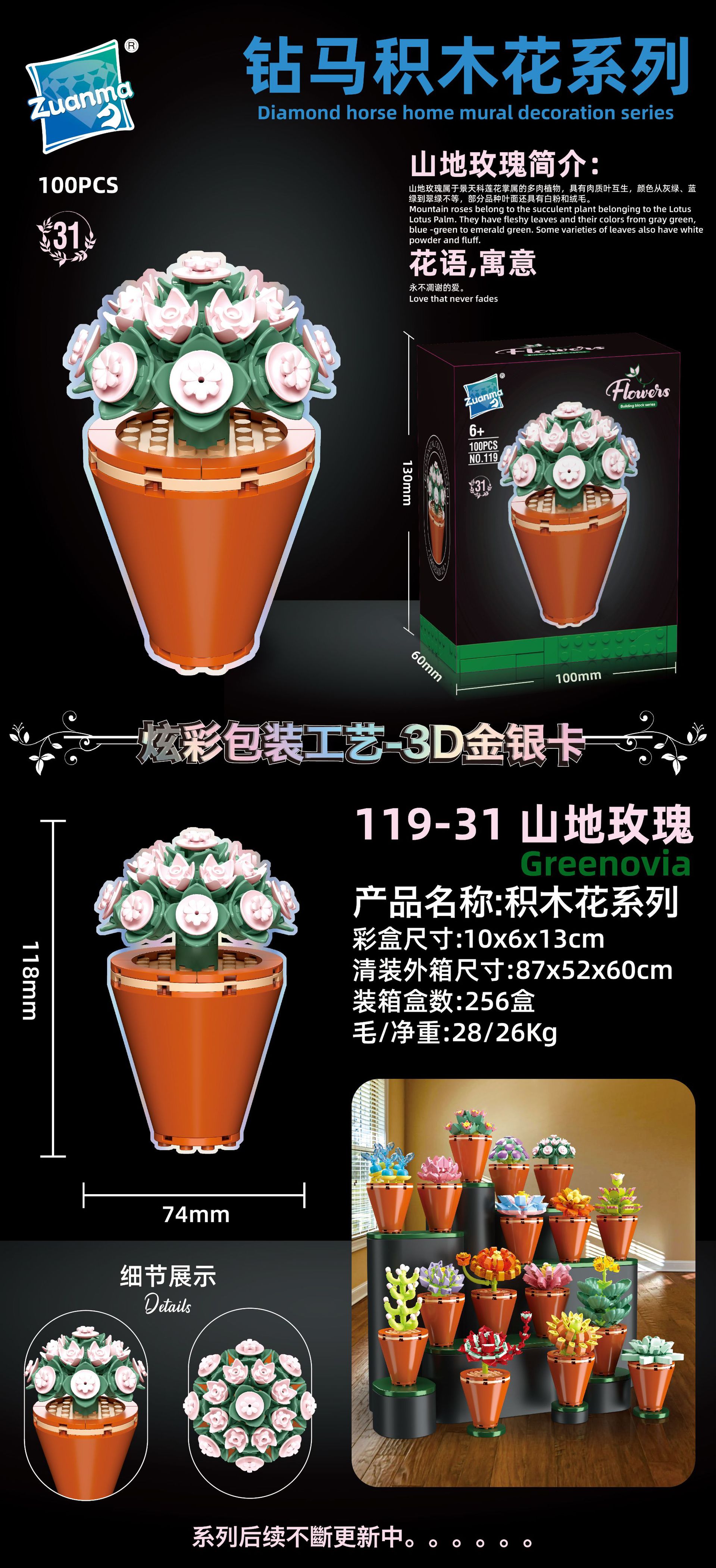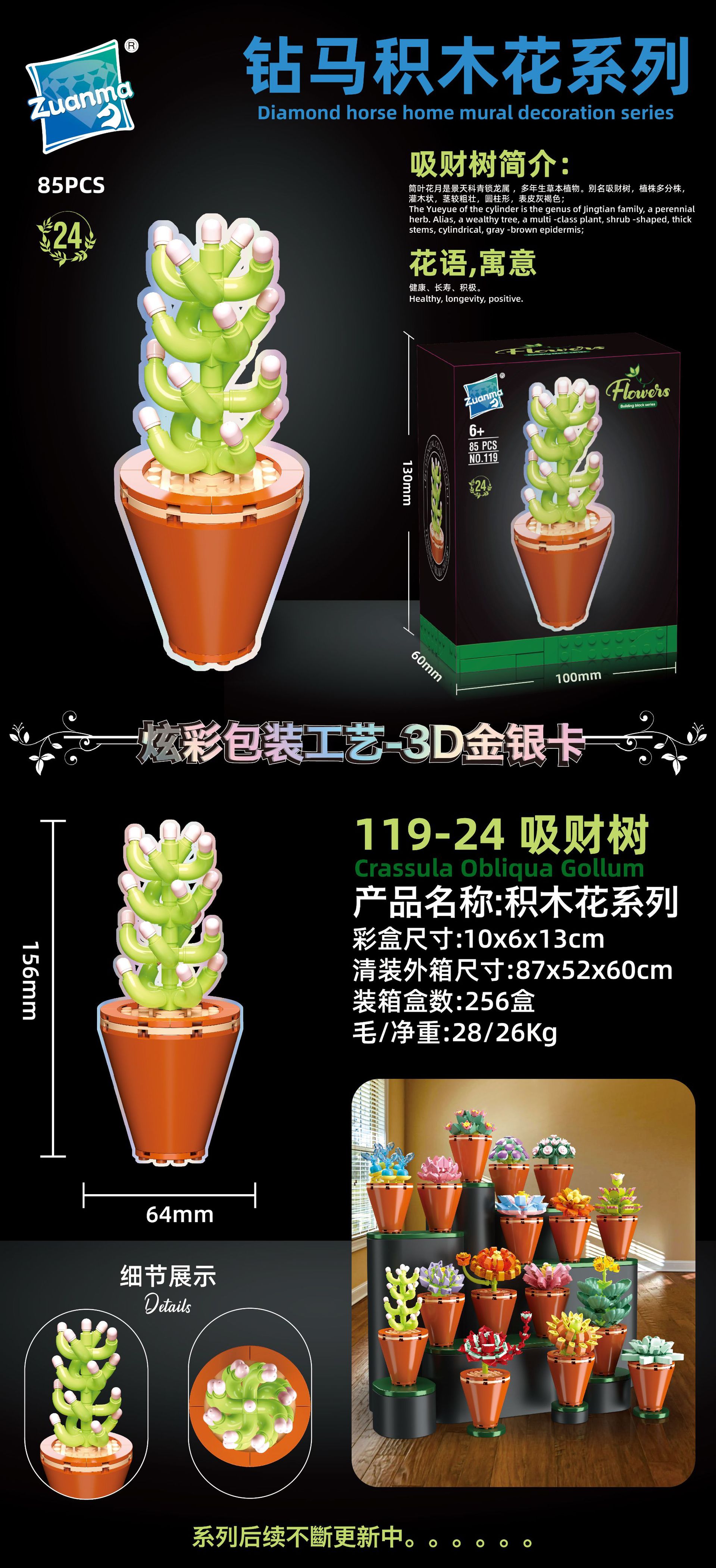 다이아몬드 말 미니 시뮬레이션 식물 화분에 심은 다육 식물 모델 빌딩 블록 장식품 어린이 수제 조립 장난감 교육용 빌딩 블록스토어 가기