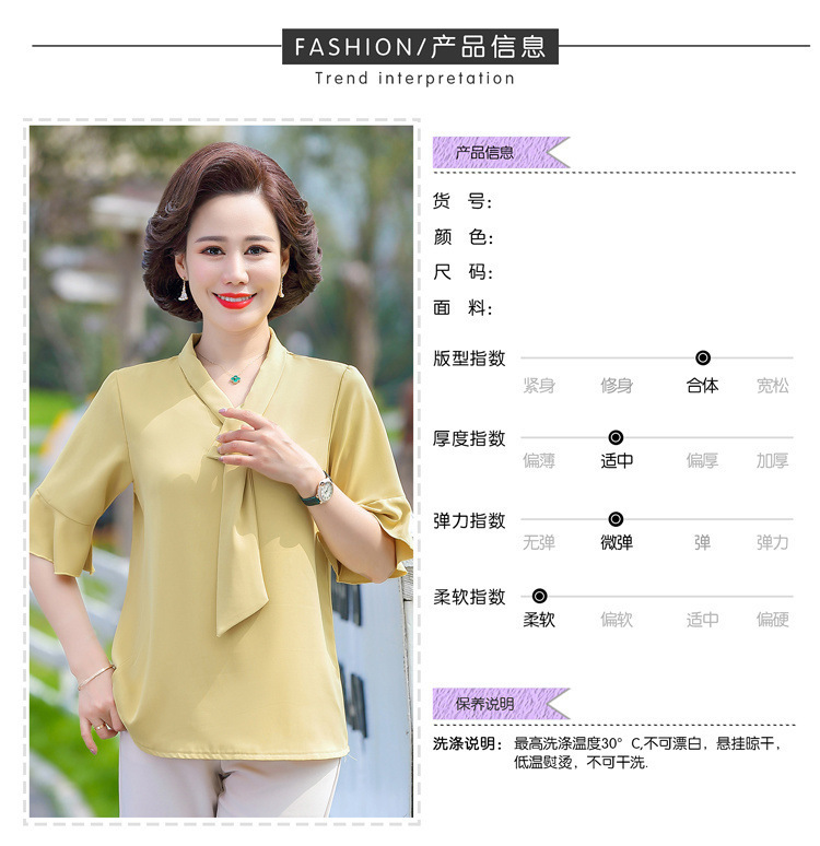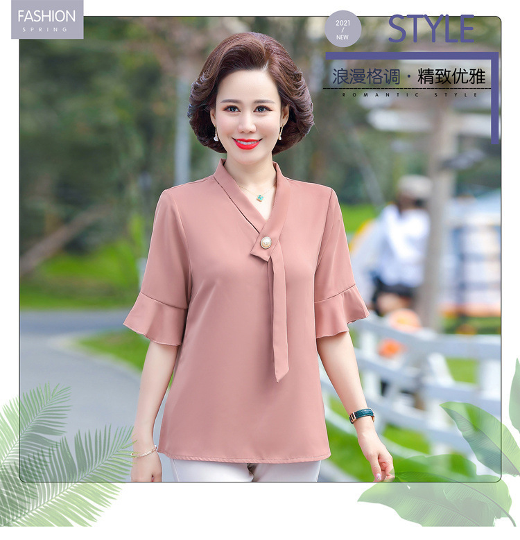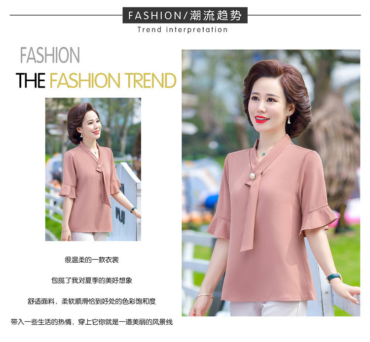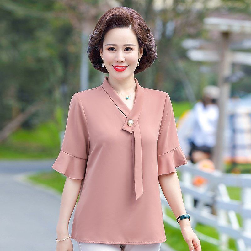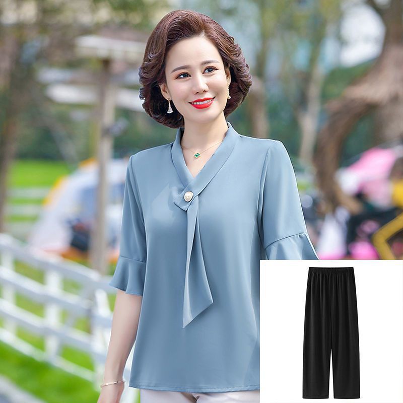 여름 시폰 셔츠 여성 상위 40 세 중년 및 노인 어머니의 투피스 세트 유행 서양식 여성 세트