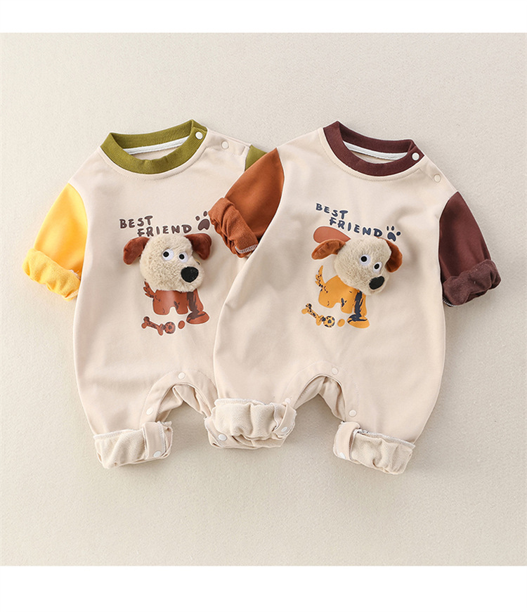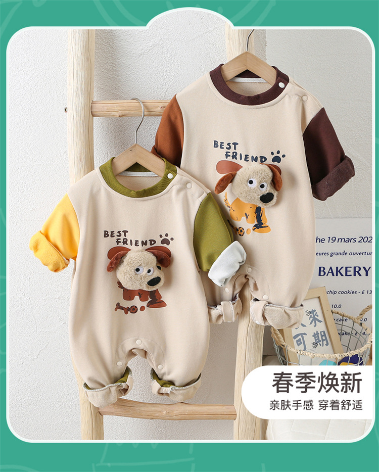 2025 새로운 소년 만화 강아지 원피스 코트 컬러 매칭 긴팔 하퍼 아기의 봄과 가을 등반 세트 싱글 레이어 의상
