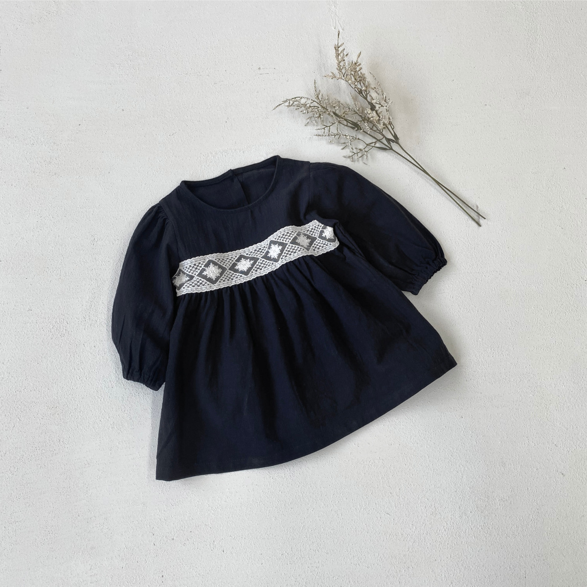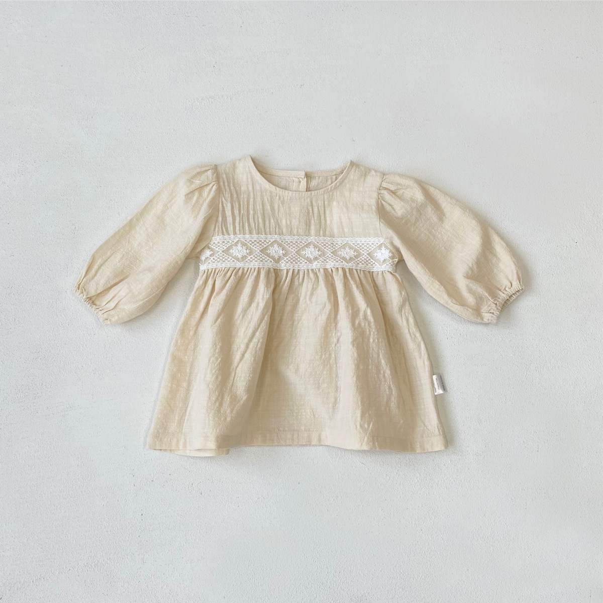 2025 년 봄 한국 아동복 소녀 기질 레이스 스티칭 공주 원피스 아동면 긴팔 원피스