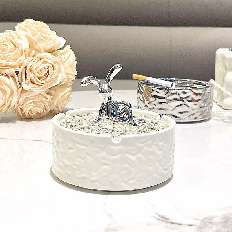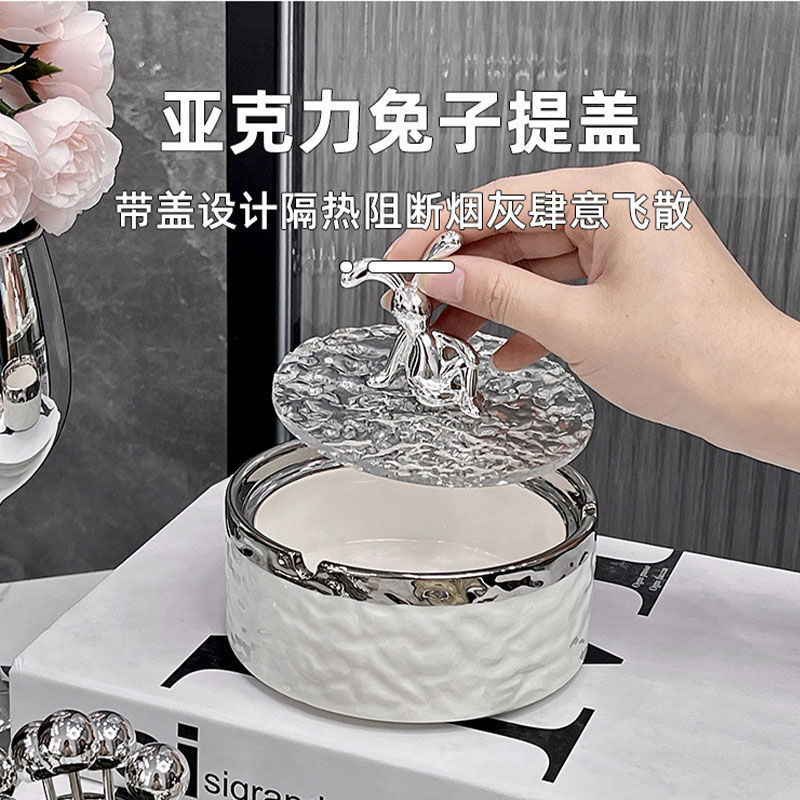 • [재떨이] + 은색 줄무늬가 있는 흰색 - 토끼 아크릴 뚜껑