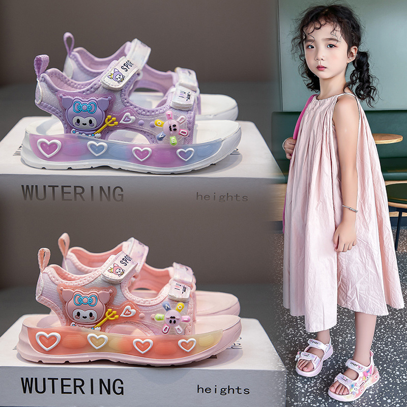 여자 샌들 2025 새로운 여름 소프트 솔 어린이 스포츠 비치 신발 세련된 여성 보물 작은 소녀 공주 신발스토어 가기
