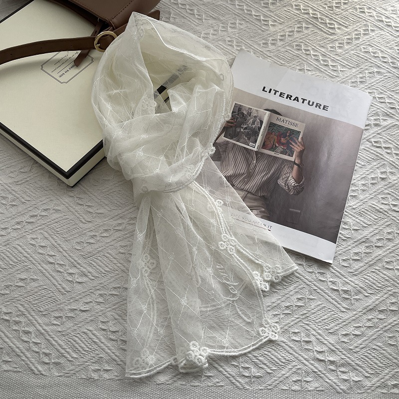 궁전 스타일 수 놓은 꽃 레이스 스카프 긴 스카프 여성의 봄과 여름 해변 휴가 스카프 목도리 머리 스카프