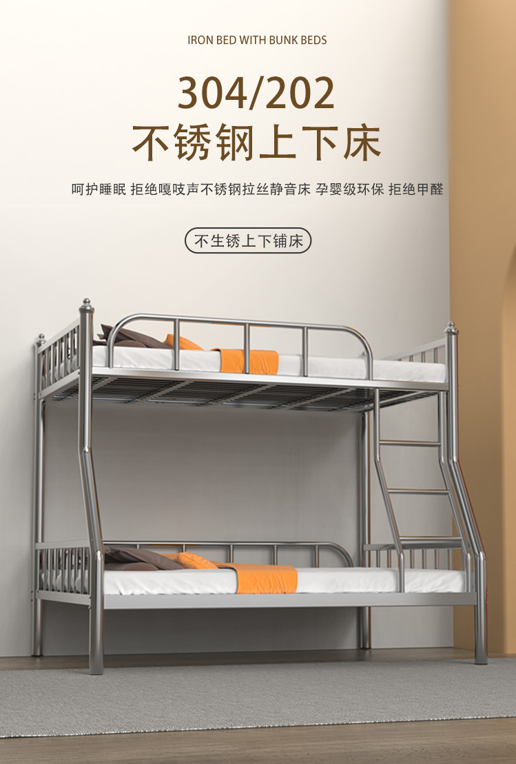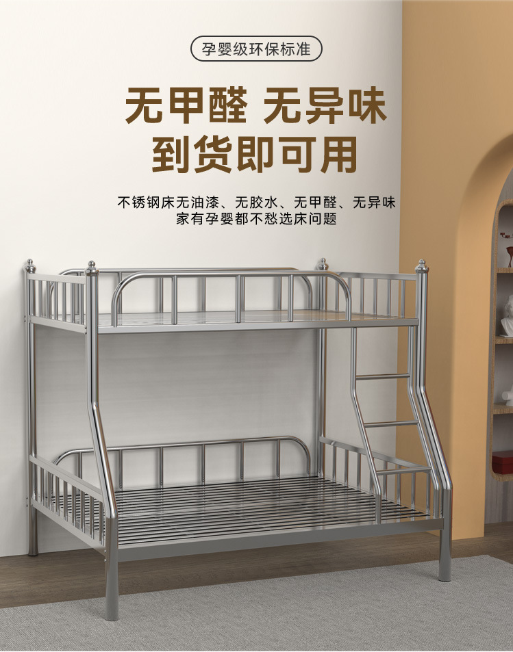 304 재질의 스테인레스 스틸, 녹 방지, 포름알데히드 프리 모자이크 침대, 내구성이 뛰어나고 강하며 부식 방지 이층 침대, 성인 기숙사 침대