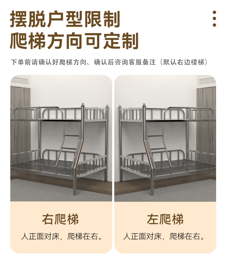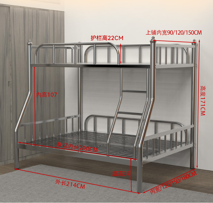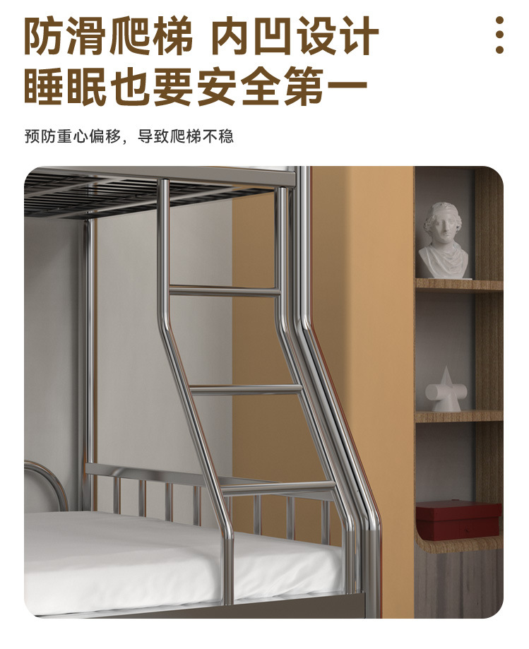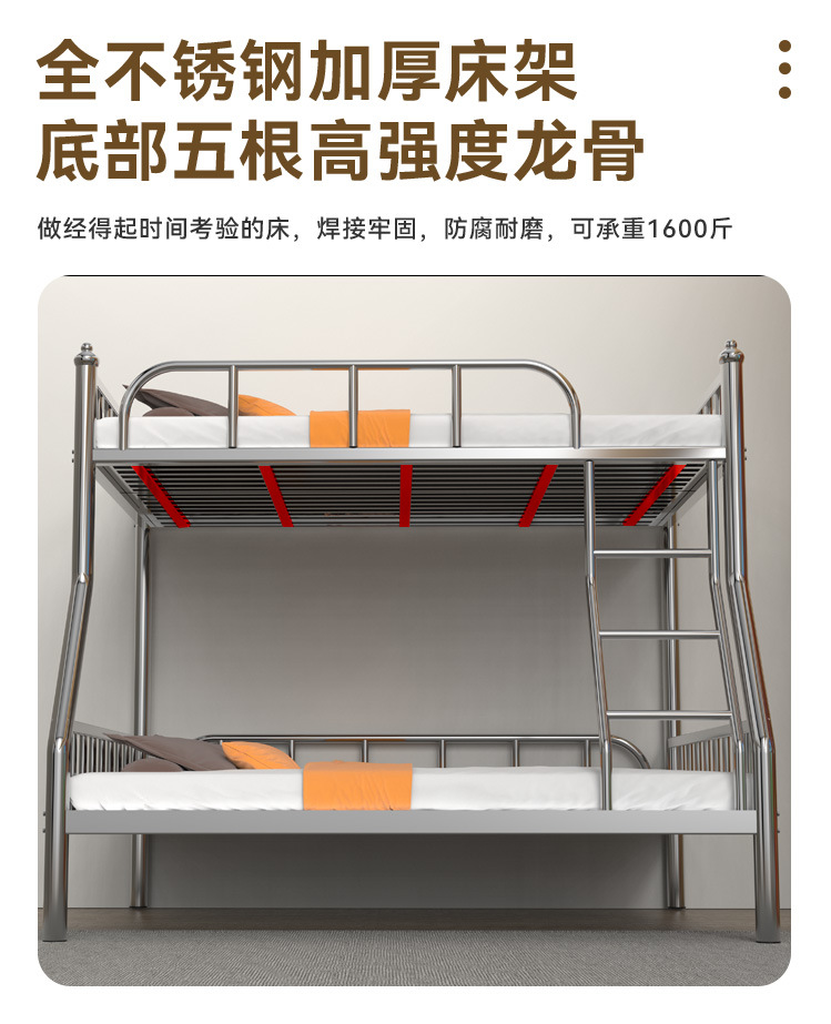 304 재질의 스테인레스 스틸, 녹 방지, 포름알데히드 프리 모자이크 침대, 내구성이 뛰어나고 강하며 부식 방지 이층 침대, 성인 기숙사 침대스토어 가기
