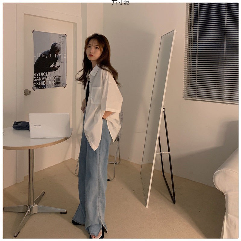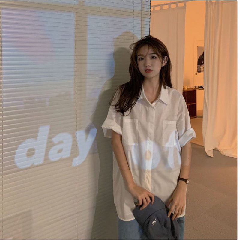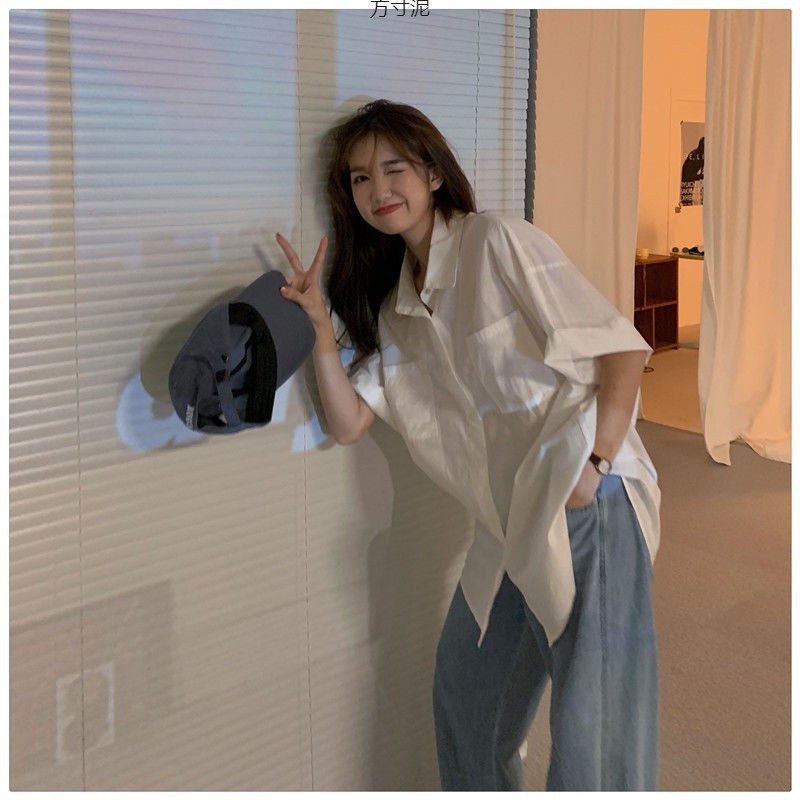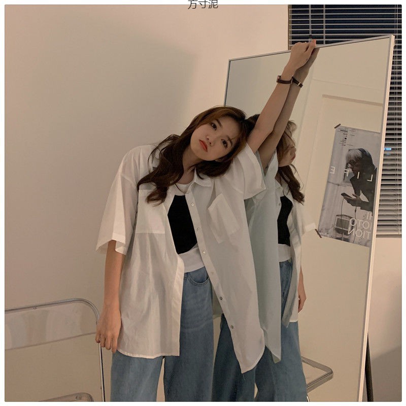 여름 흰색 셔츠 최고 여성 반팔 한국 학생 느슨한 조커 내부 및 외부 착용 틈새 셔츠 여성 도매스토어 가기