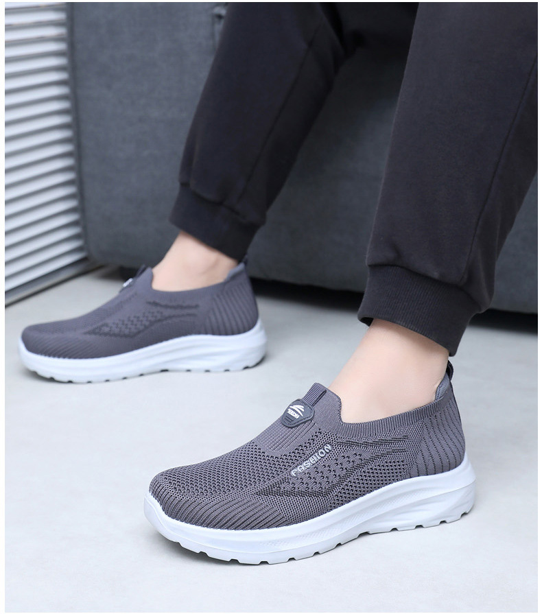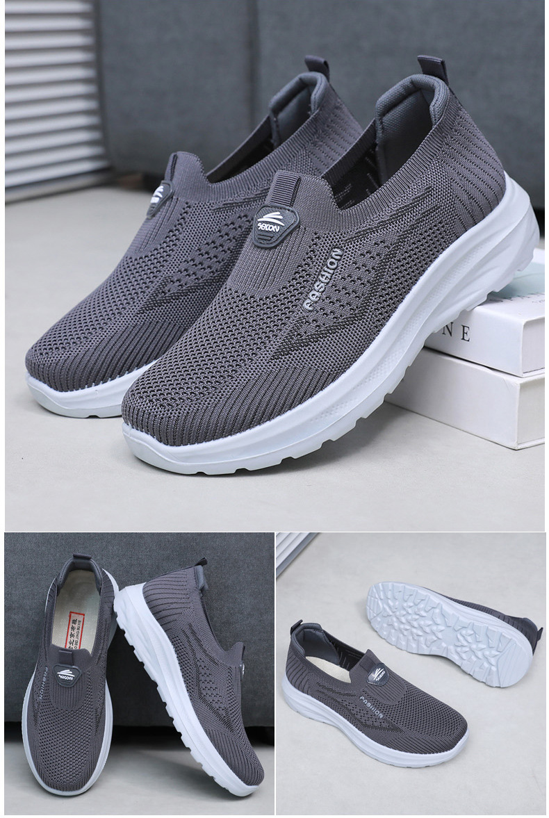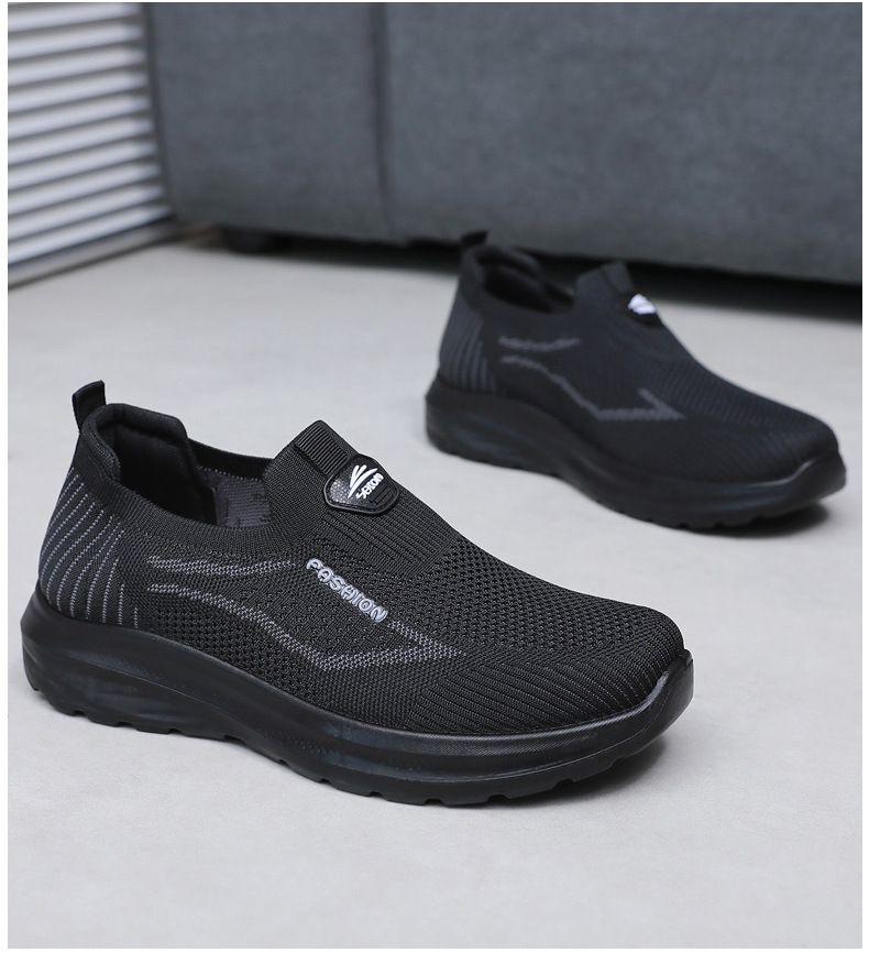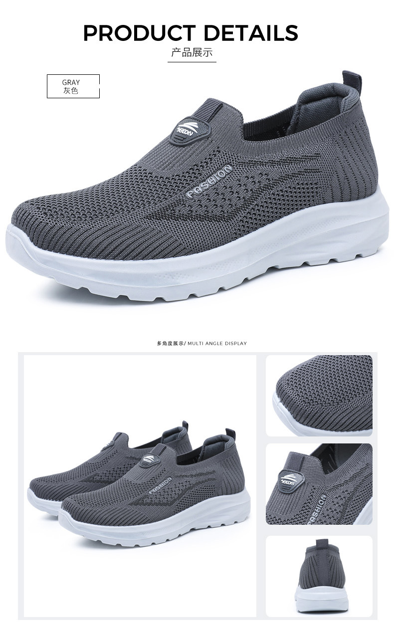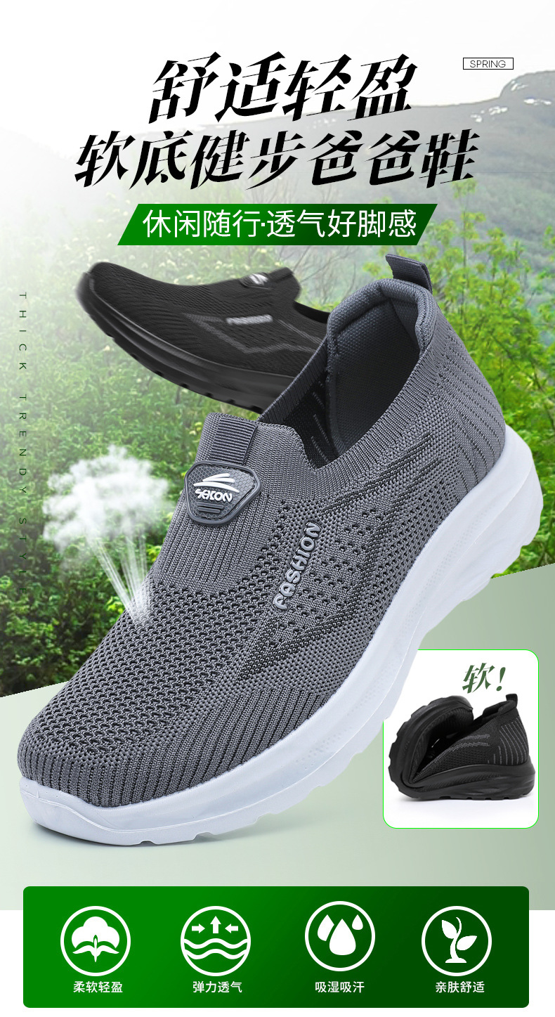 올드 베이징 천 신발 남성 중년 및 노인 슬립 온 아빠 신발 부드러운 밑창 캐주얼 운동화 플라이 짠 통기성 남성 신발