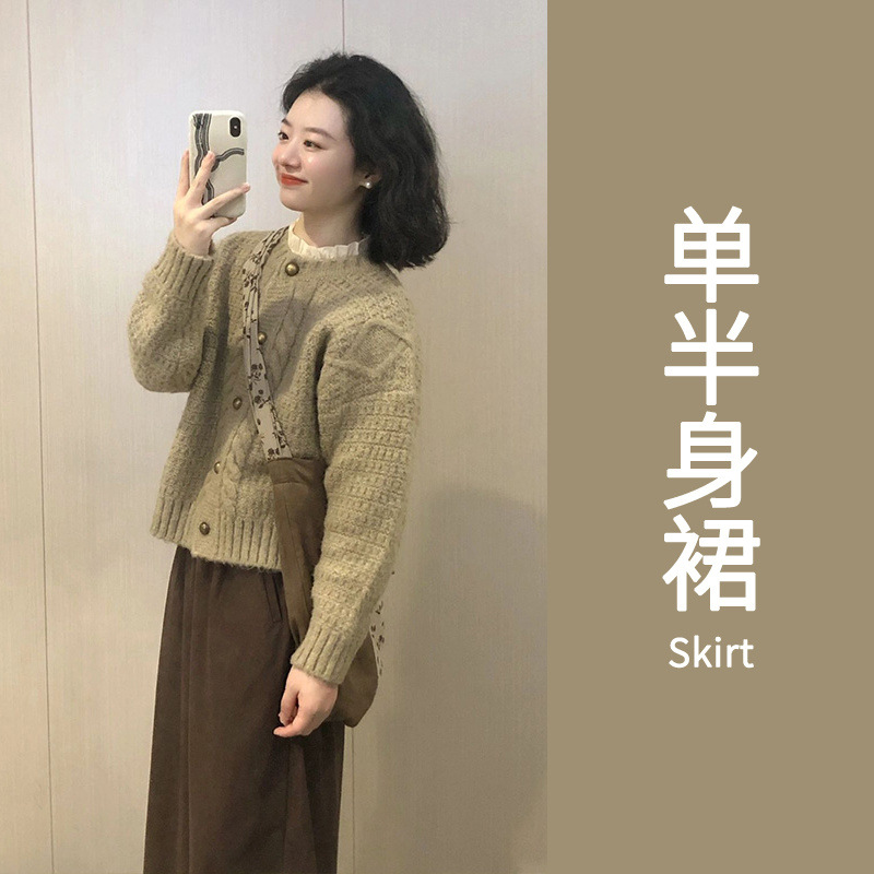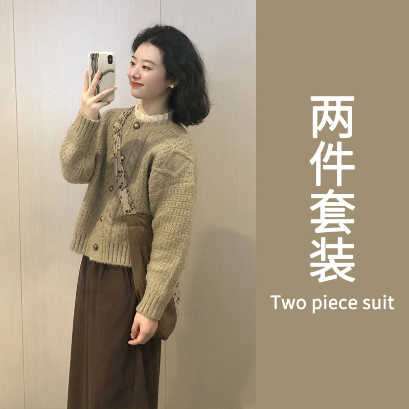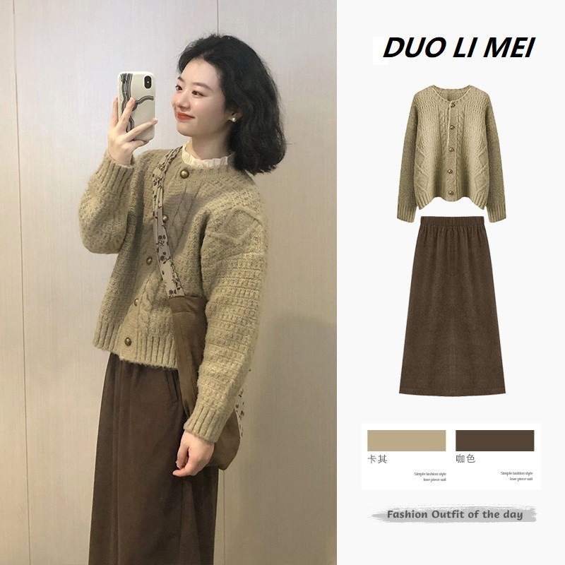 봄과 가을 부드러운 차착용 성숙한 왕실 자매 한국 드라마 연예인 샤오샹 스타일 니트 스웨터 스커트 투피스 세트스토어 가기