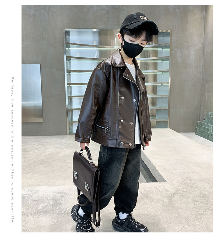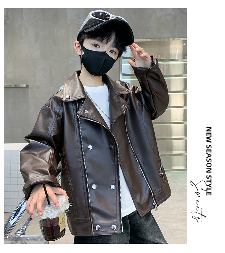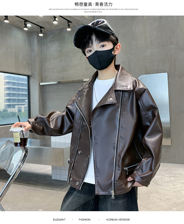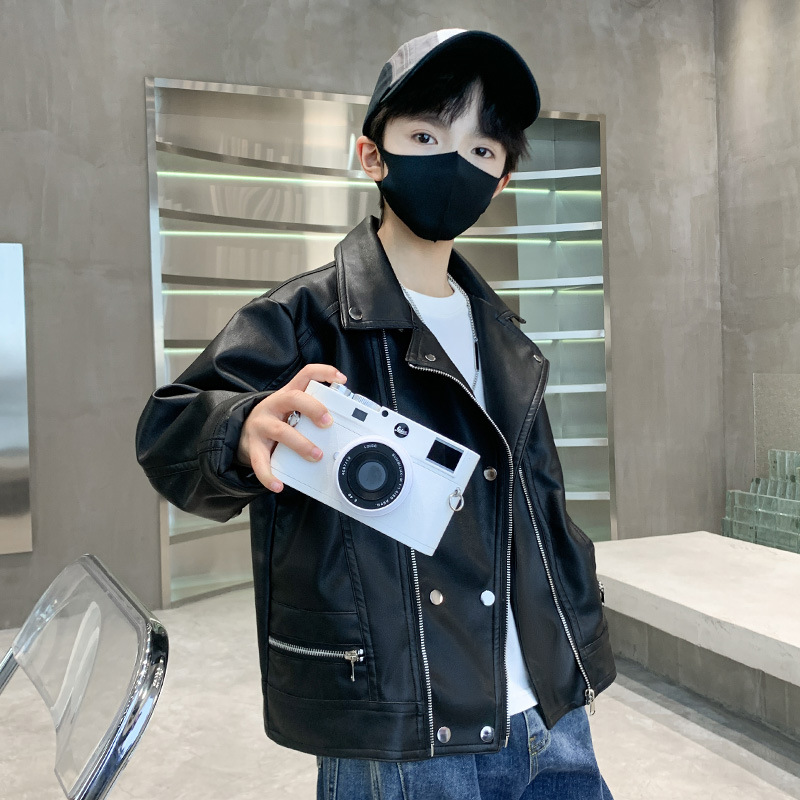 소년 가죽 봄 자켓 봄과 가을 패션 세련된 PU 재킷 2025 중 큰 아이들 패션 리틀 보이 탑스토어 가기