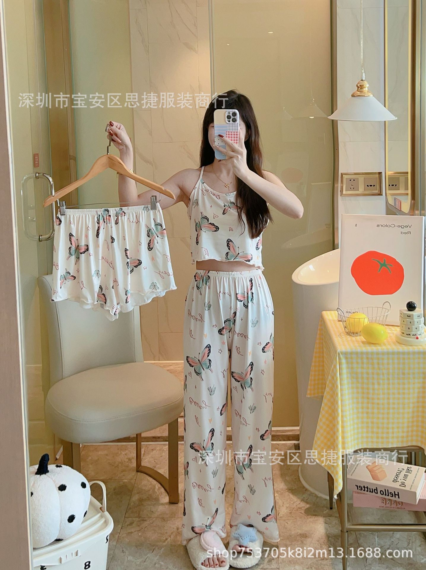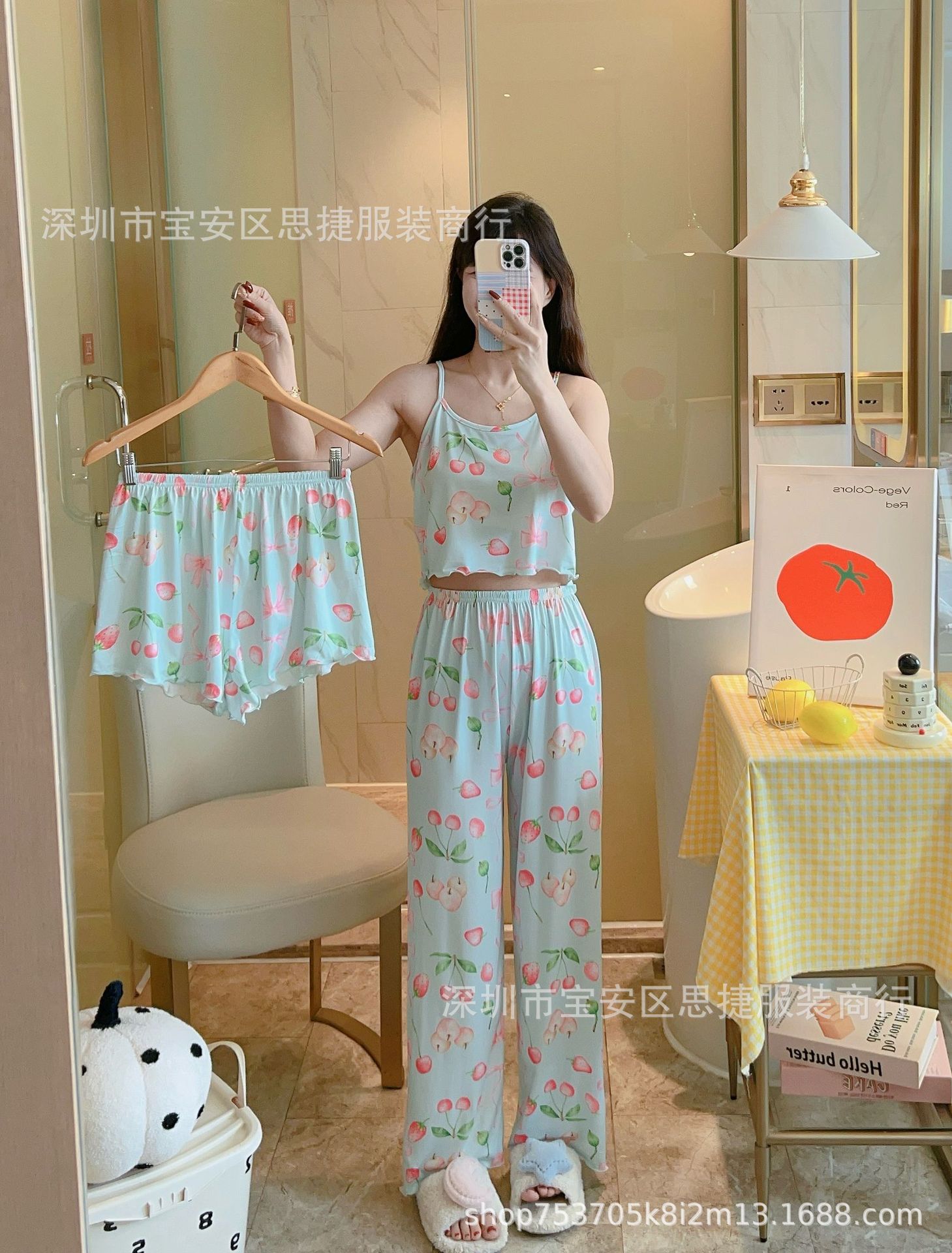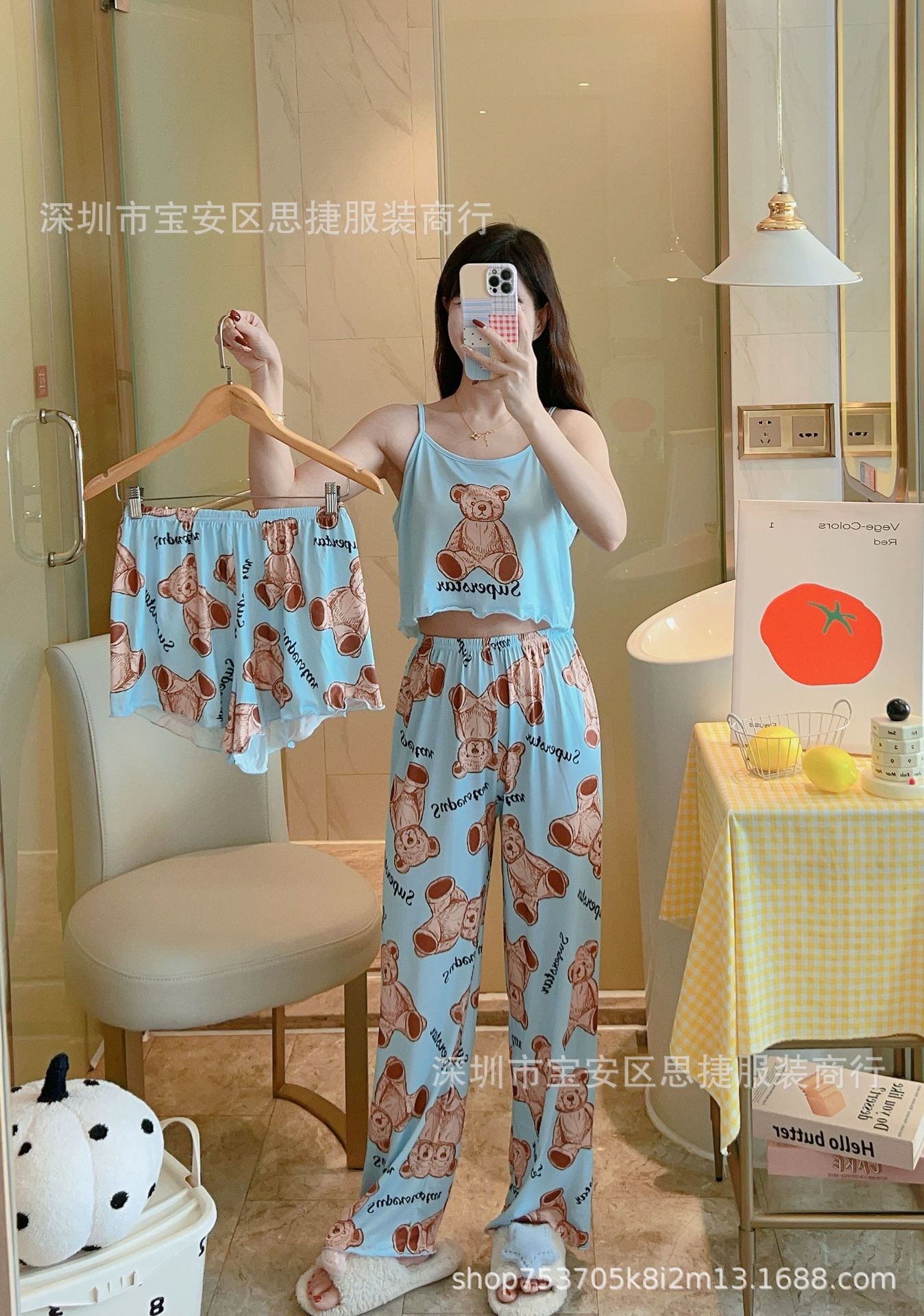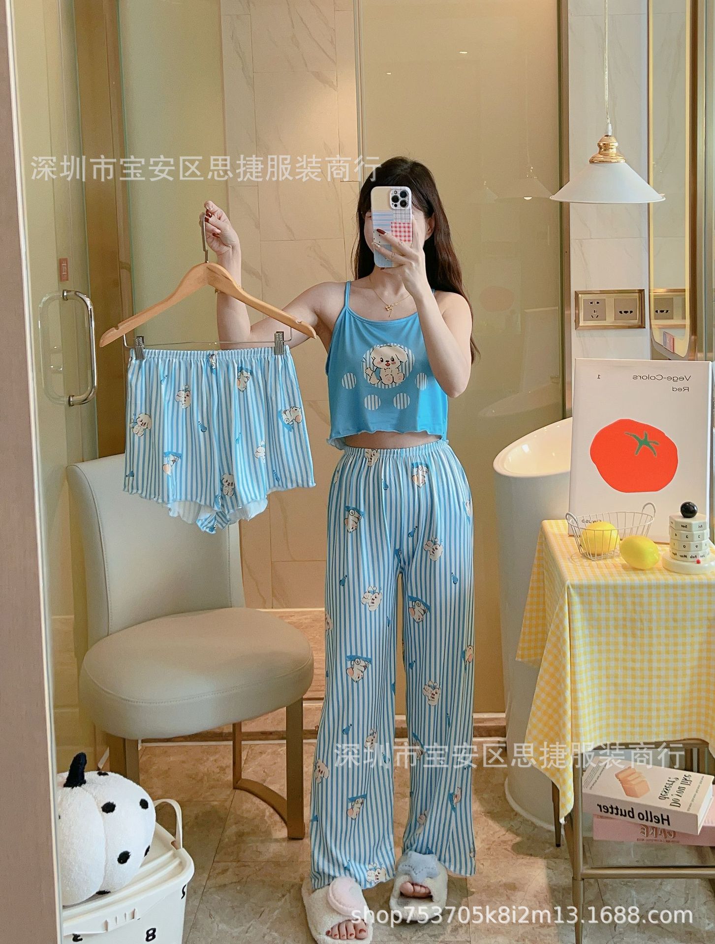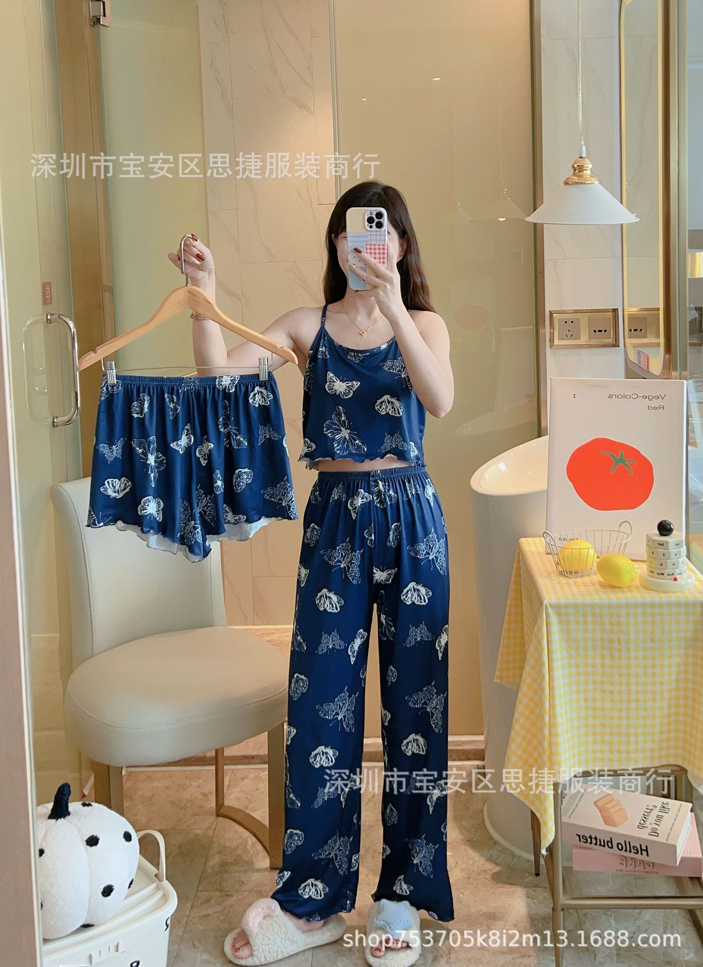 Пижама2025 랄부 서스펜더 3피스 잠옷 여성 Xia Xiyin 잠옷 공장 직접 판매