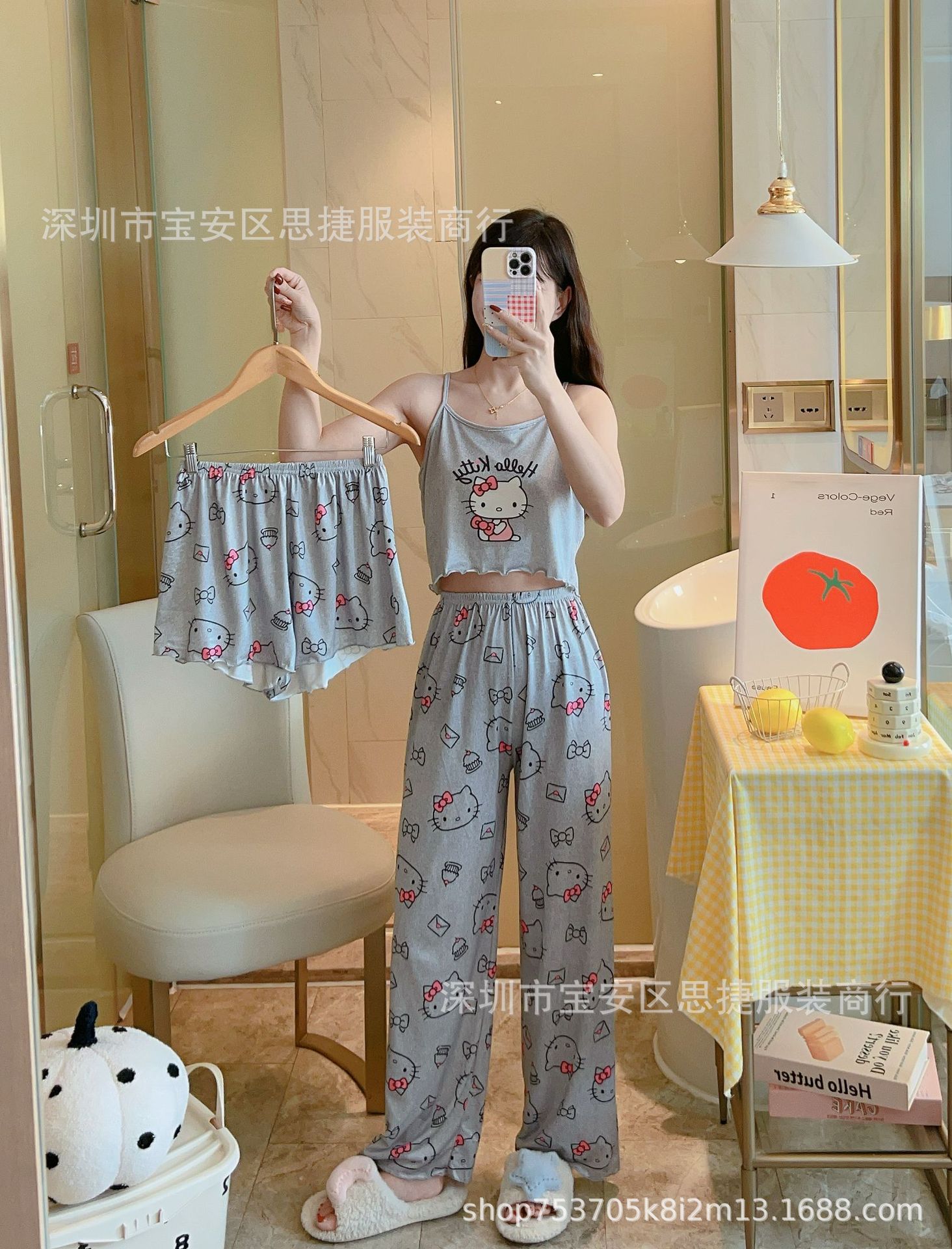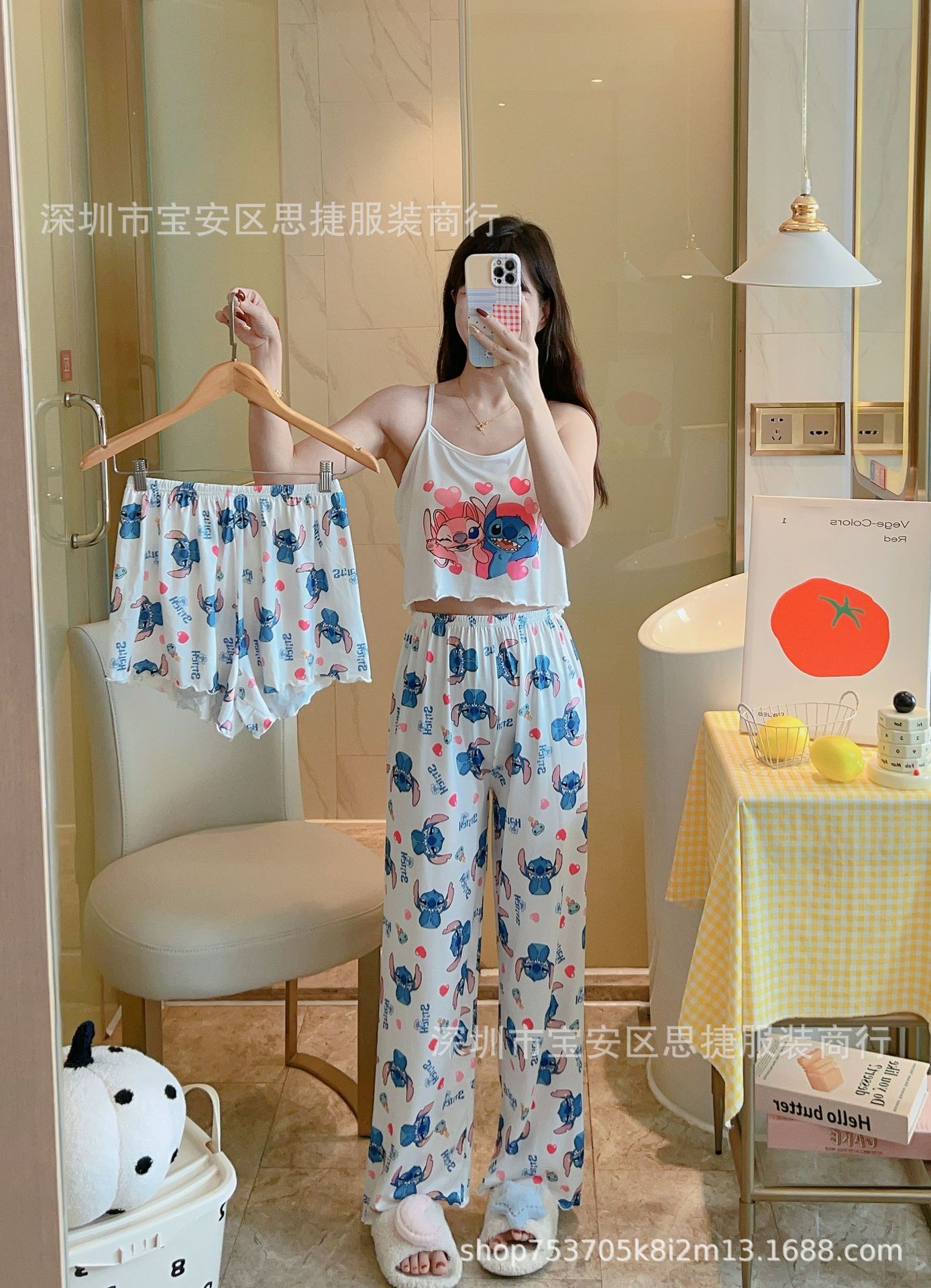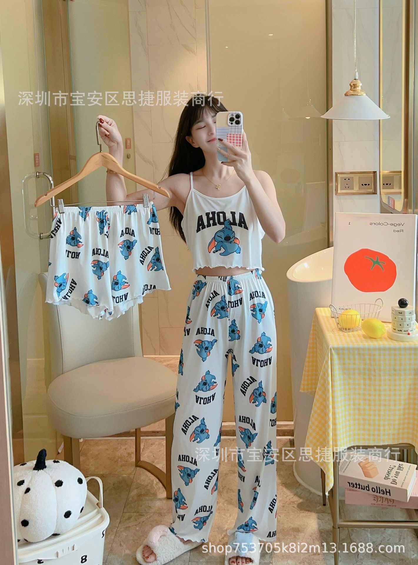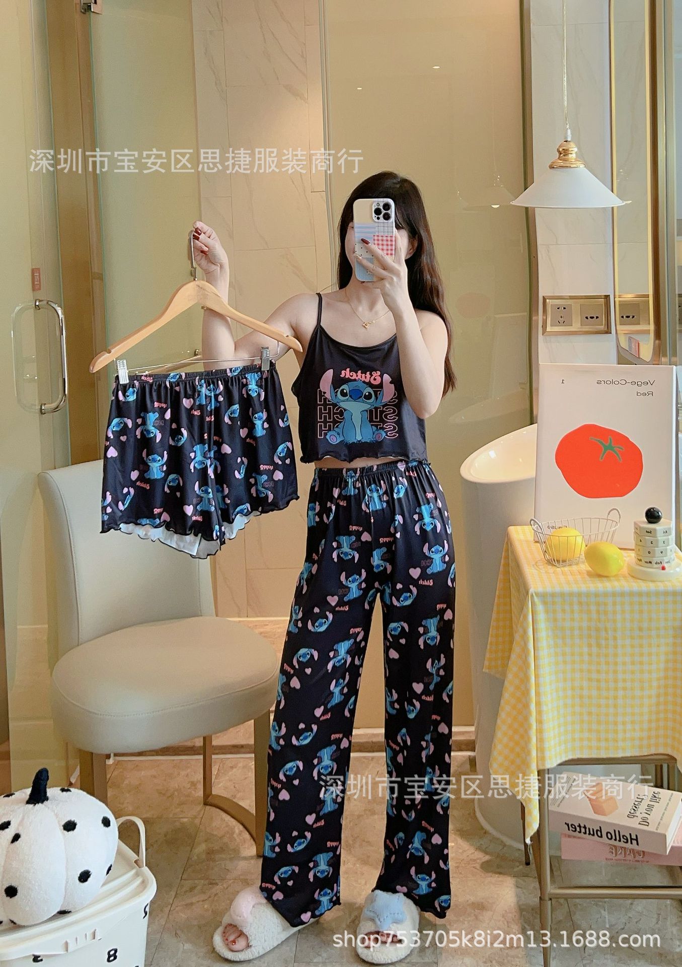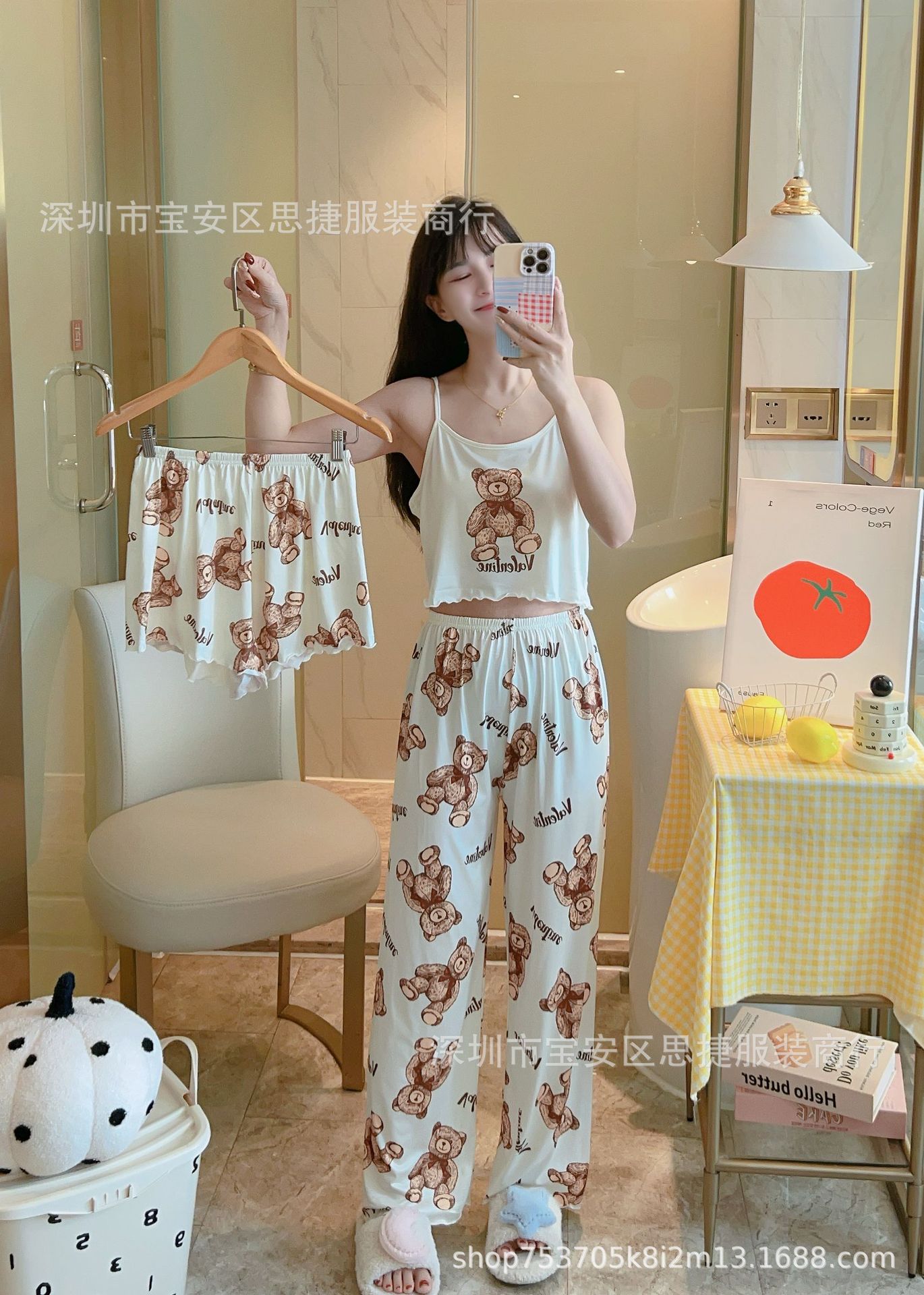 Пижама2025 랄부 서스펜더 3피스 잠옷 여성 Xia Xiyin 잠옷 공장 직접 판매