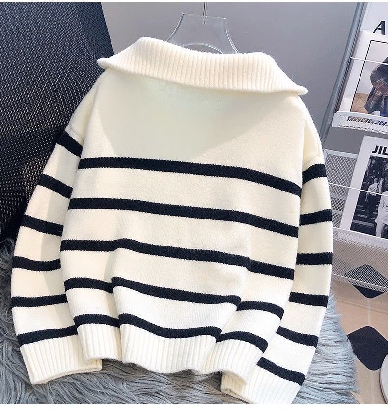 여성 스웨터 여성의 가을 겨울 옷 두꺼운 새 지퍼 스트라이프 베이스 셔츠 짧은 폭발 하이 엔드스토어 가기