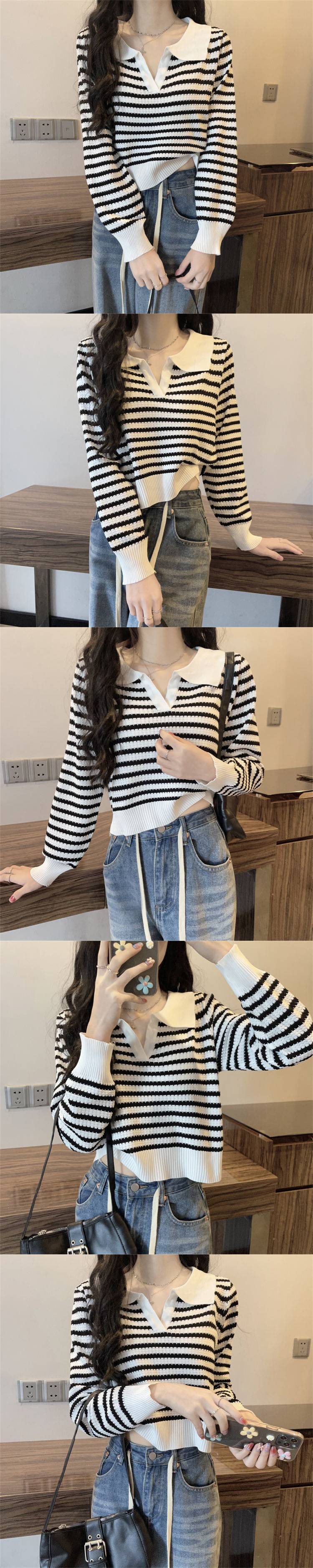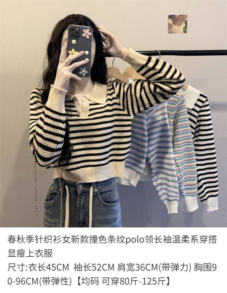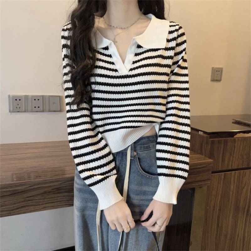 봄 봄 스웨터 여성의 2025 새로운 컬러 스트라이프 칼라 긴 소매 부드러운 착용 슬리밍 탑스토어 가기