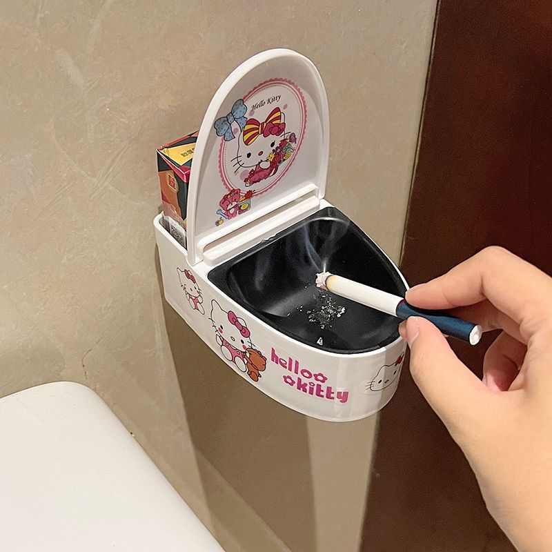창조적 인 벽걸이 형 화장실 재떨이 가정용 독특한 귀여운 화장실 욕실 거실 뚜껑이 달린 비행 방지 재떨이