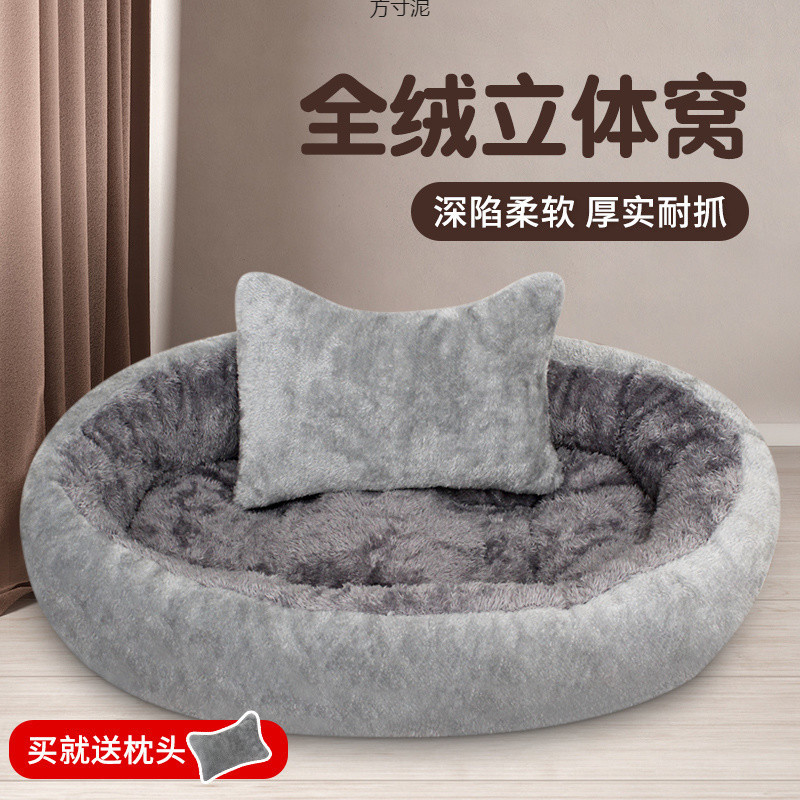 고양이 둥지 사계절 보편적 인 귀여운 타원형 베개 두꺼운 따뜻한 겨울 깊이 둥지 고양이 둥지 대외 무역 도매스토어 가기