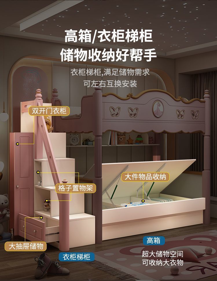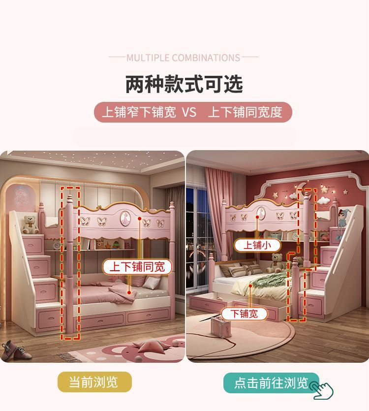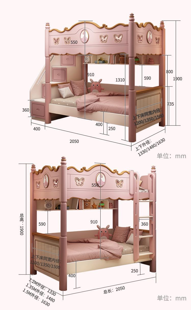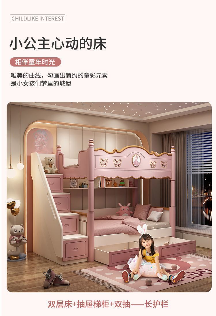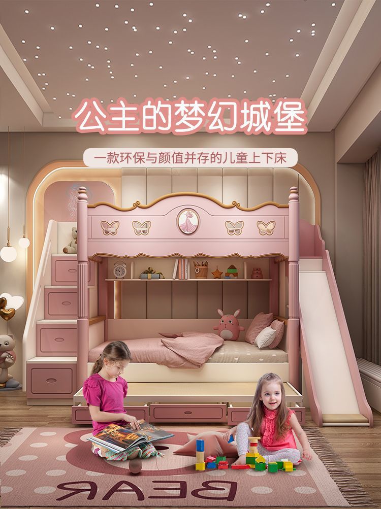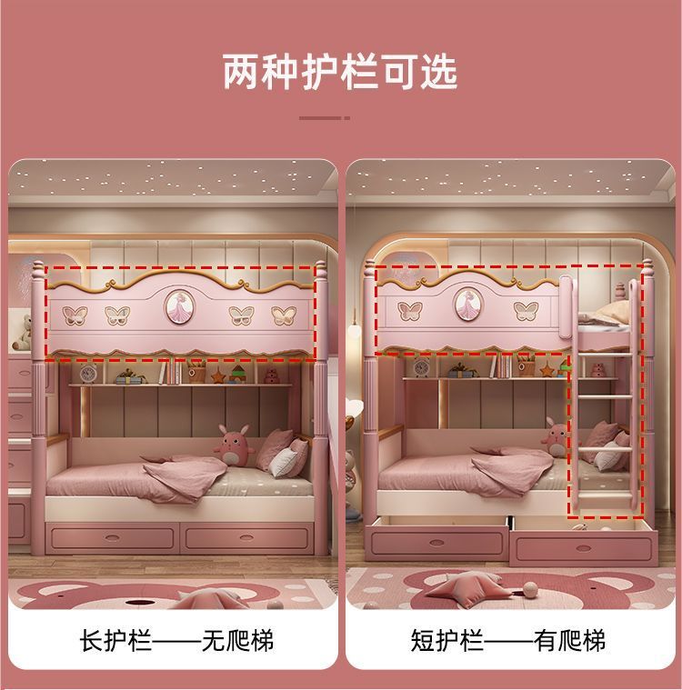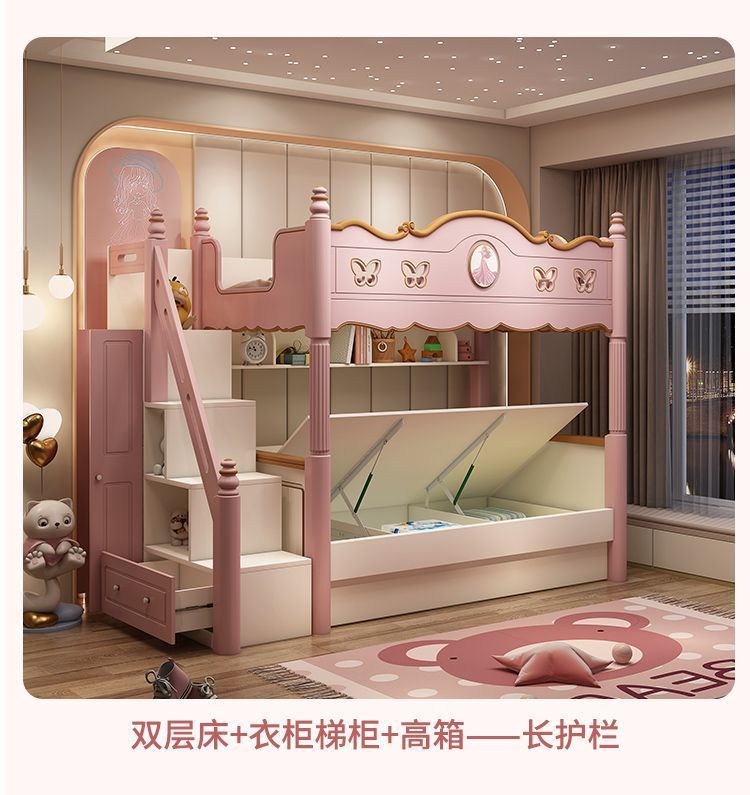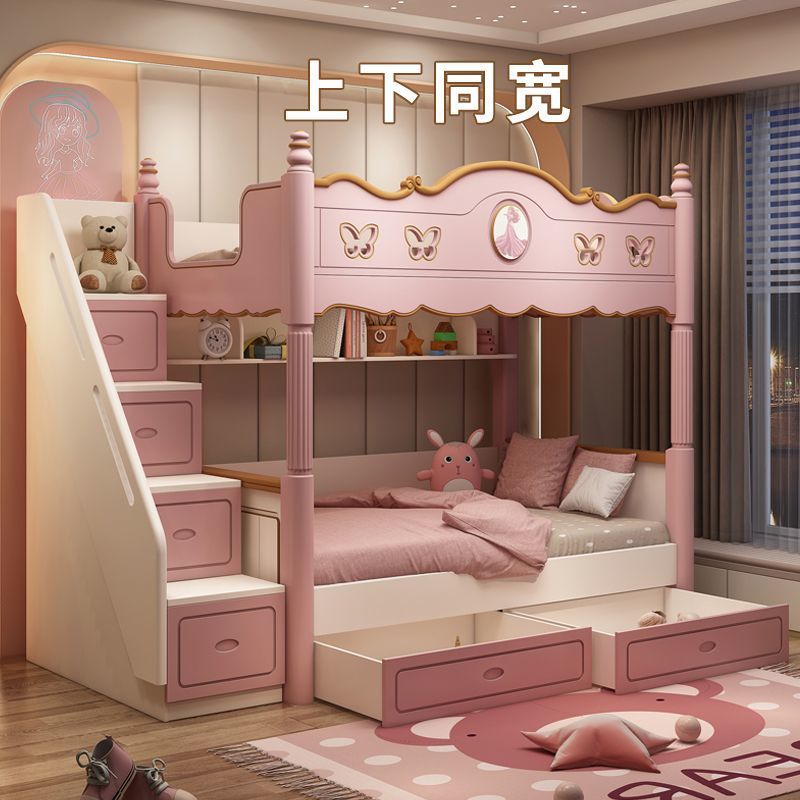 침대 침대 침대 침대 같은 폭 높고 낮은 침대 침대 침대 침대 소녀 어머니 침대 공주 침대 침대 벙크 핑크 슬라이드 다기능스토어 가기