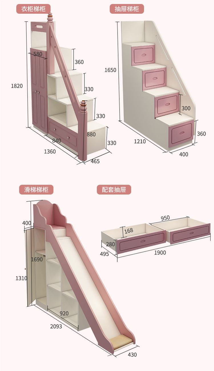 • 조합 18 장 난간 침대 + 서랍 사다리 캐비닛 + 이중 서랍 + 슬라이드
