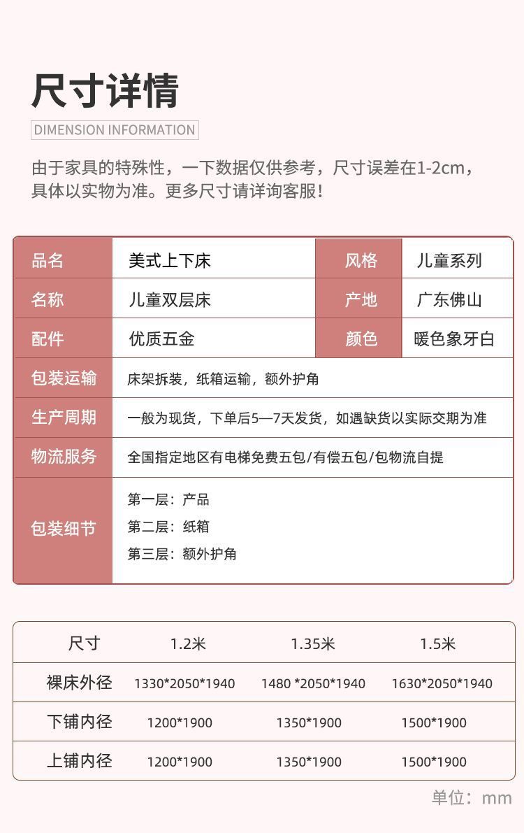 • 10개의 짧은 난간 침대 + 이중 서랍 조합